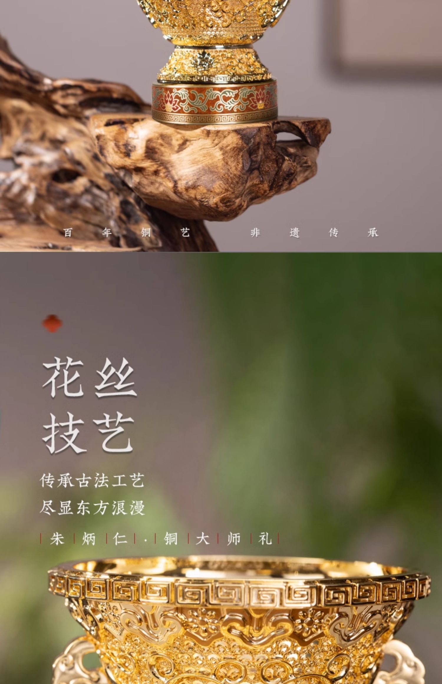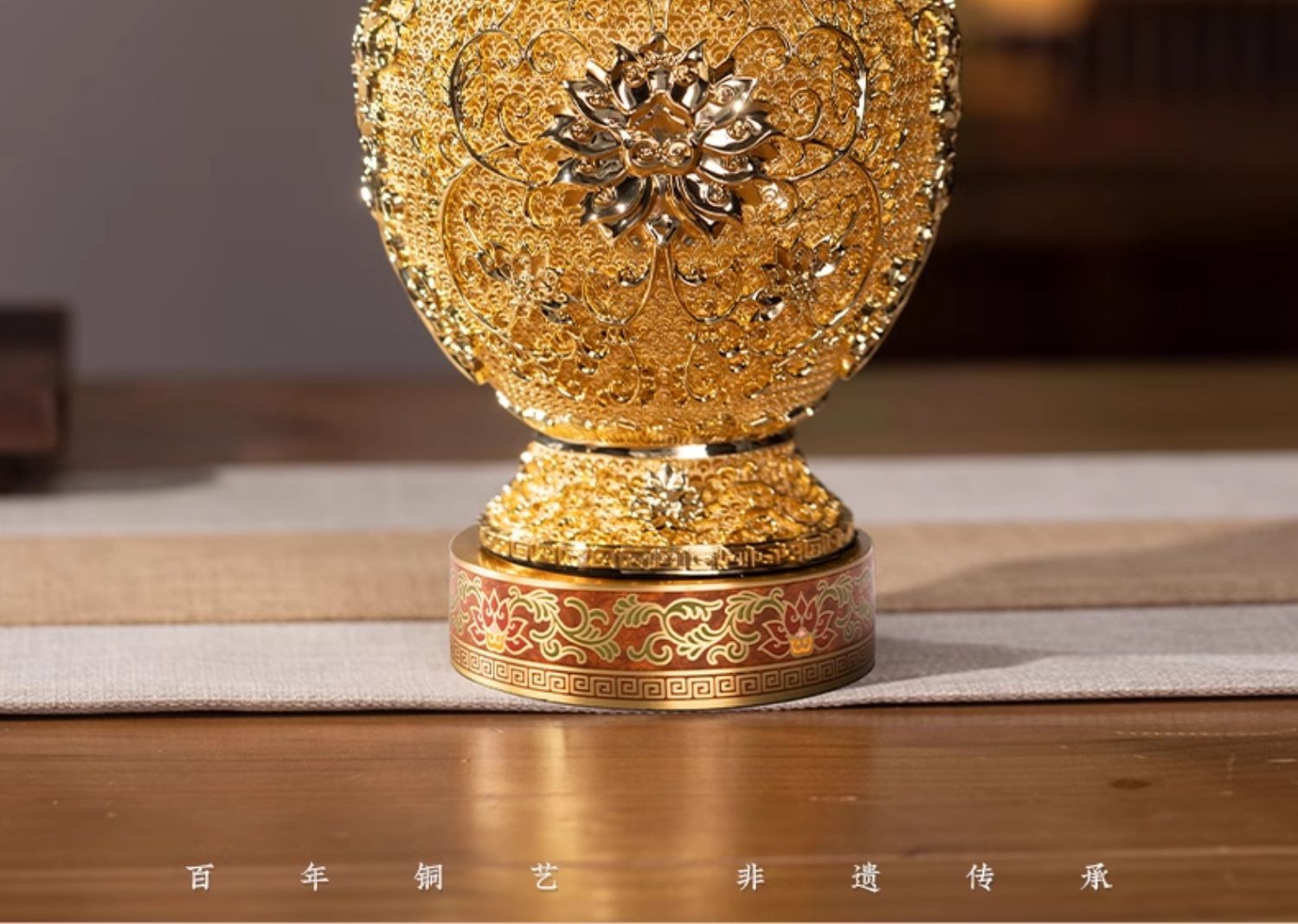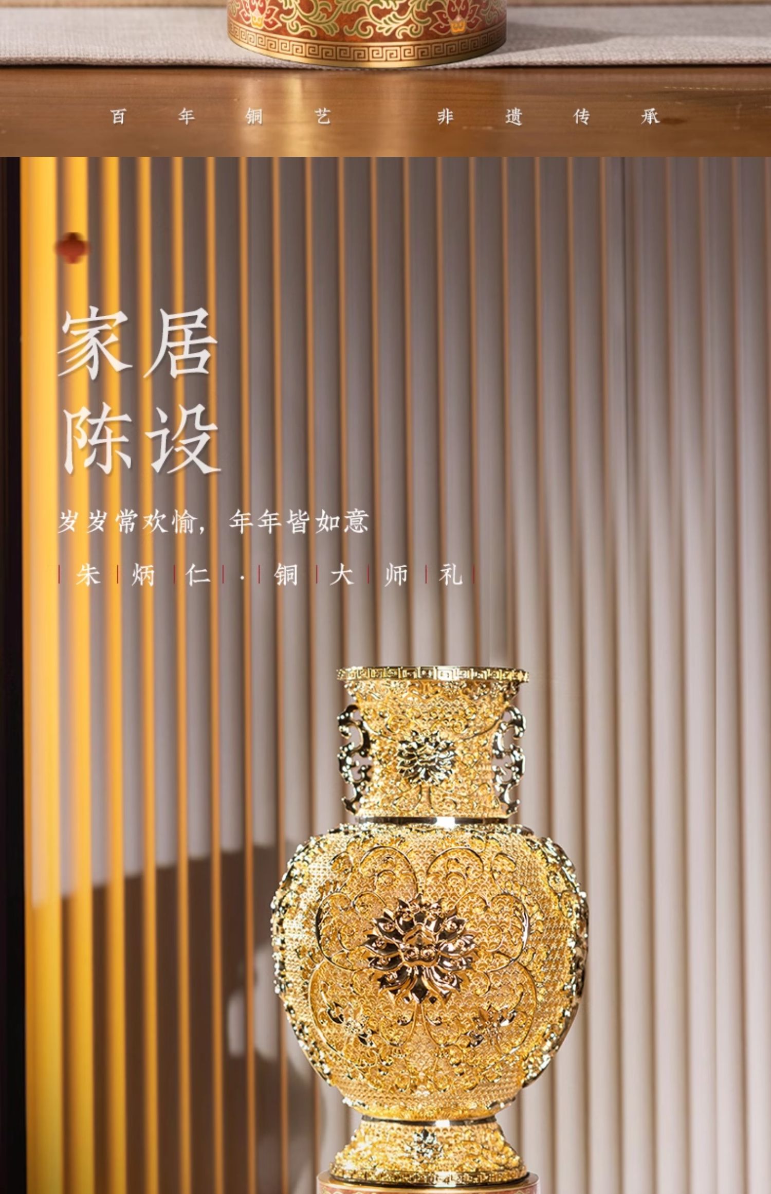 朱炳仁铜 莲年如意 花丝花瓶客厅玄关装饰摆件中式礼物乔迁开业