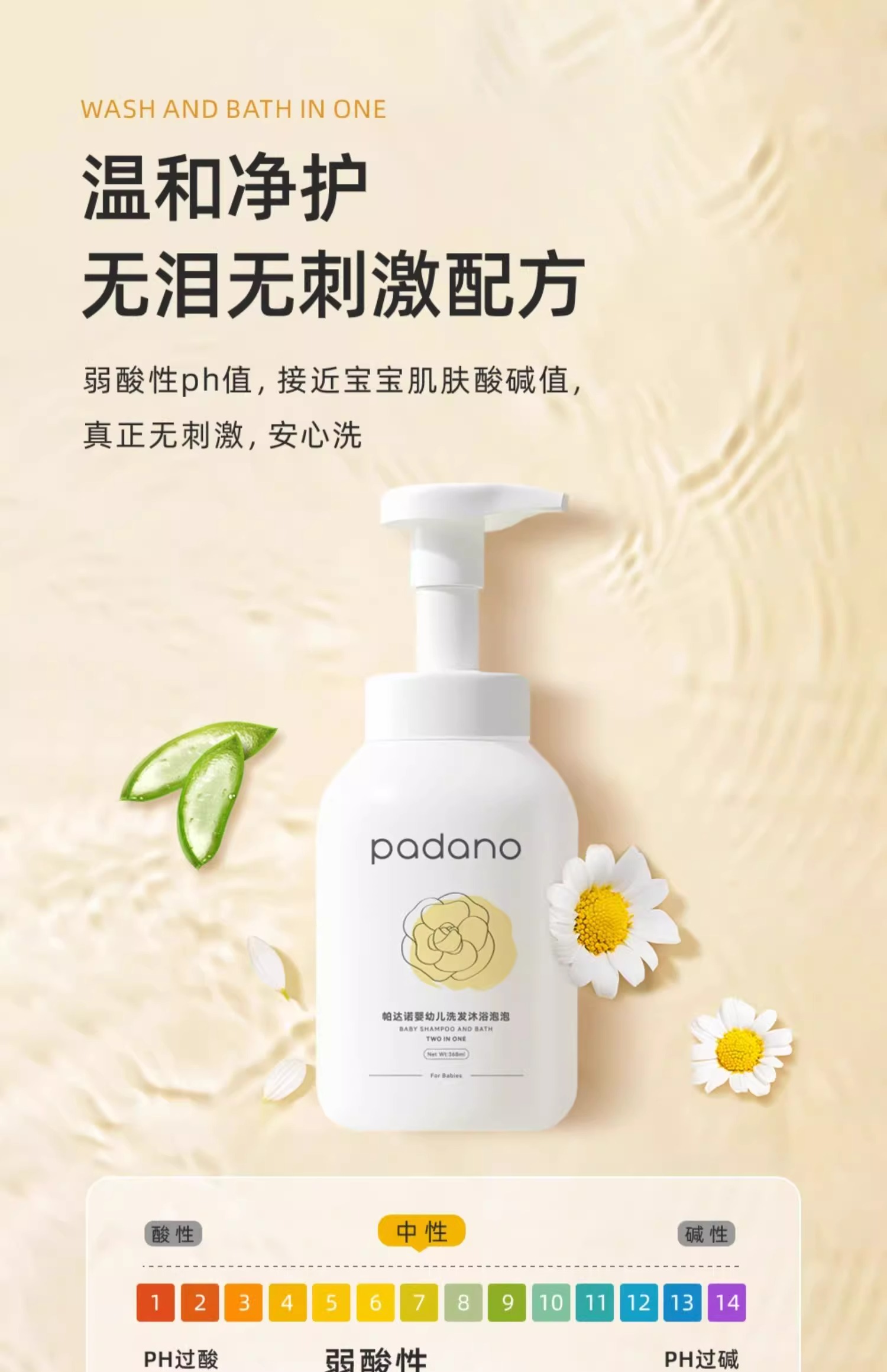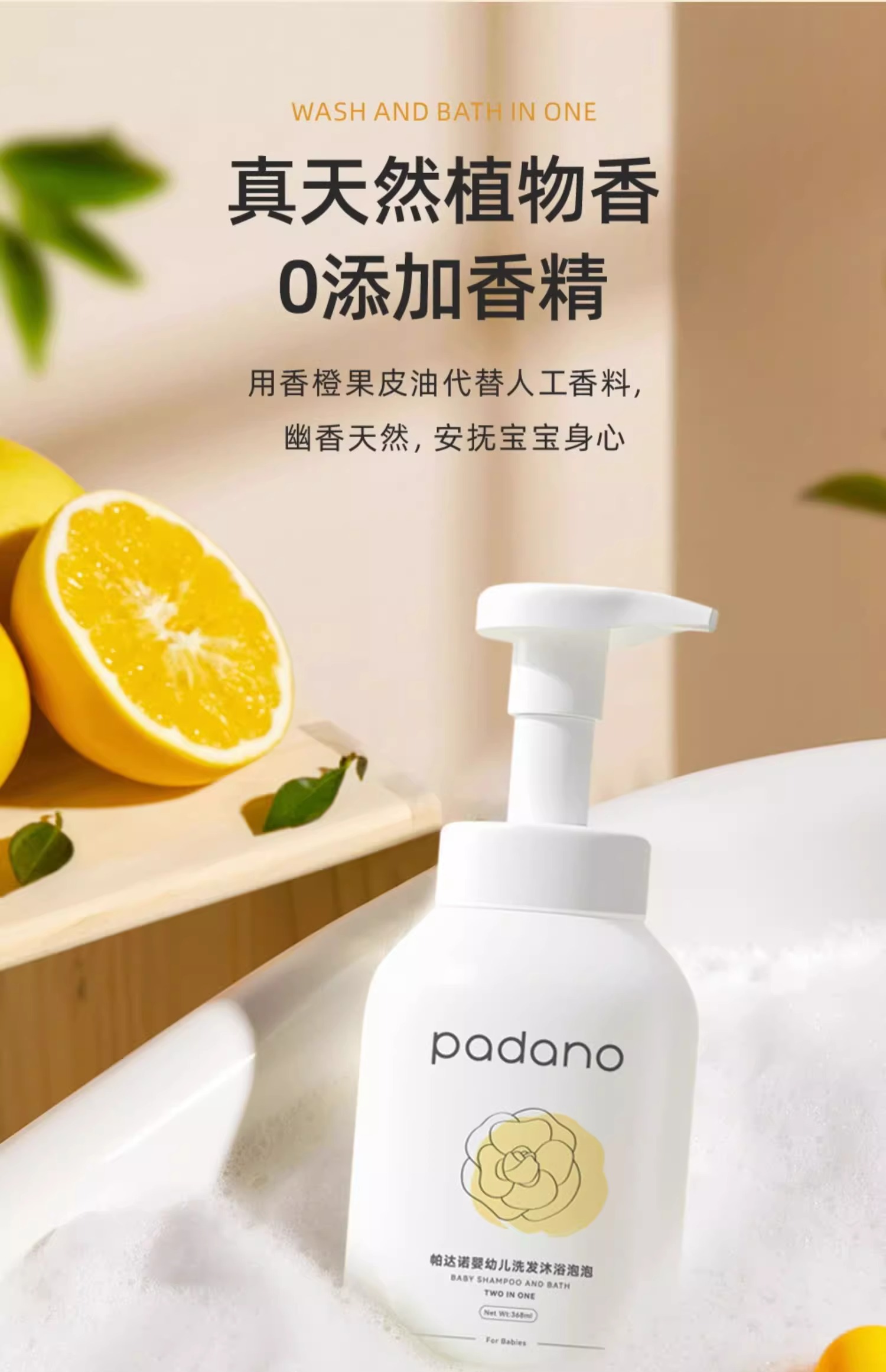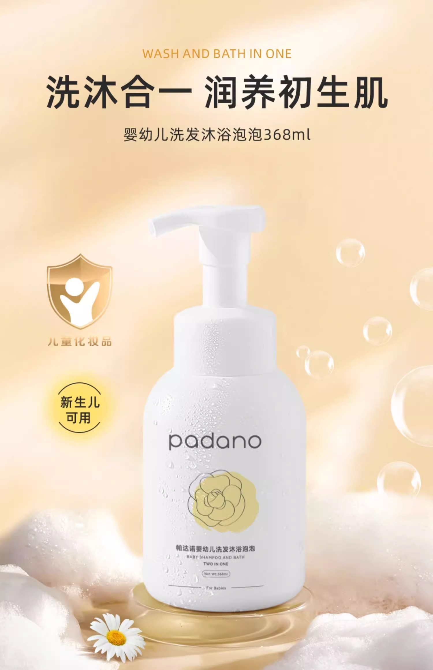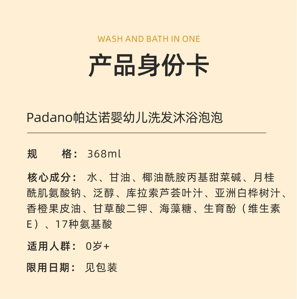 帕达诺婴幼儿洗发沐浴泡368ml