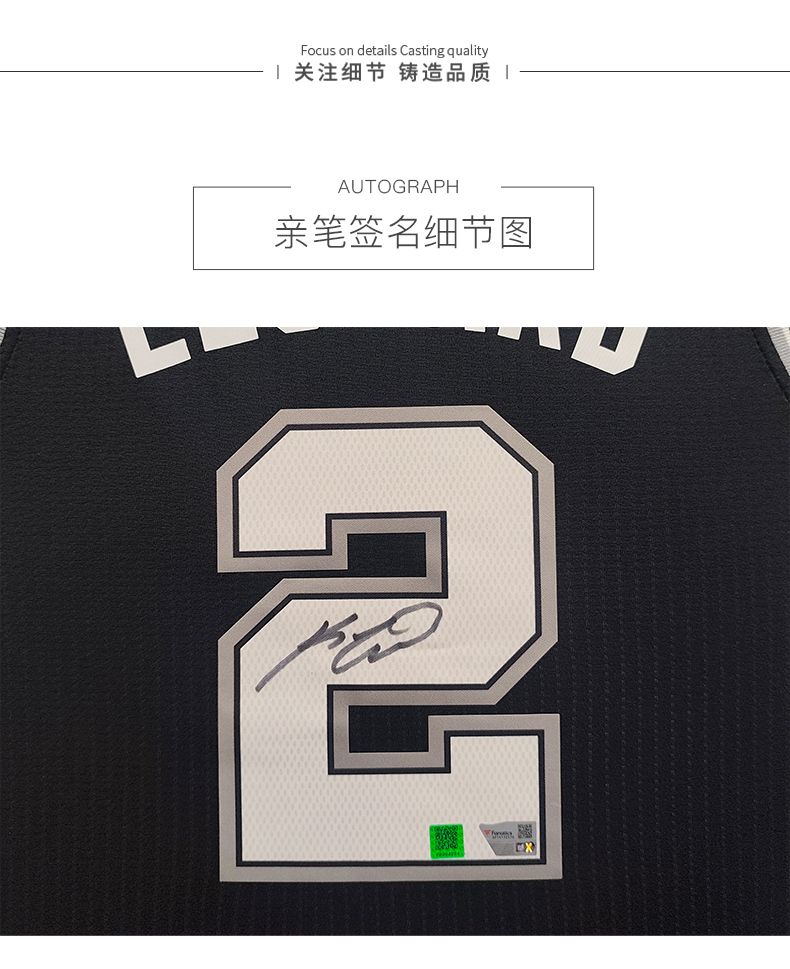 收藏系列 伦纳德 马刺队2号 黑色球迷版 亲笔签名球衣