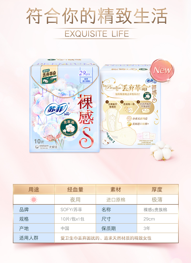 尤妮佳苏菲 290mm裸感S夜用卫生巾 10片/包