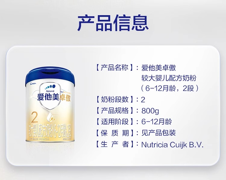 爱他美卓傲较大婴儿配方奶粉(6-12月龄,2段)800克