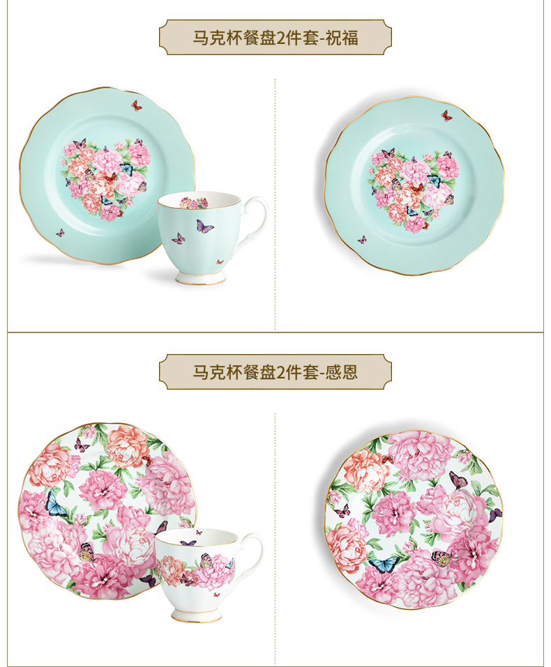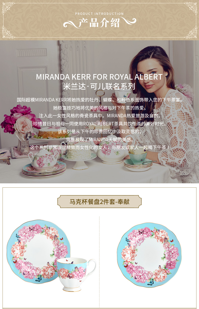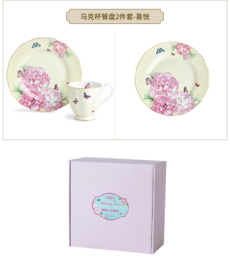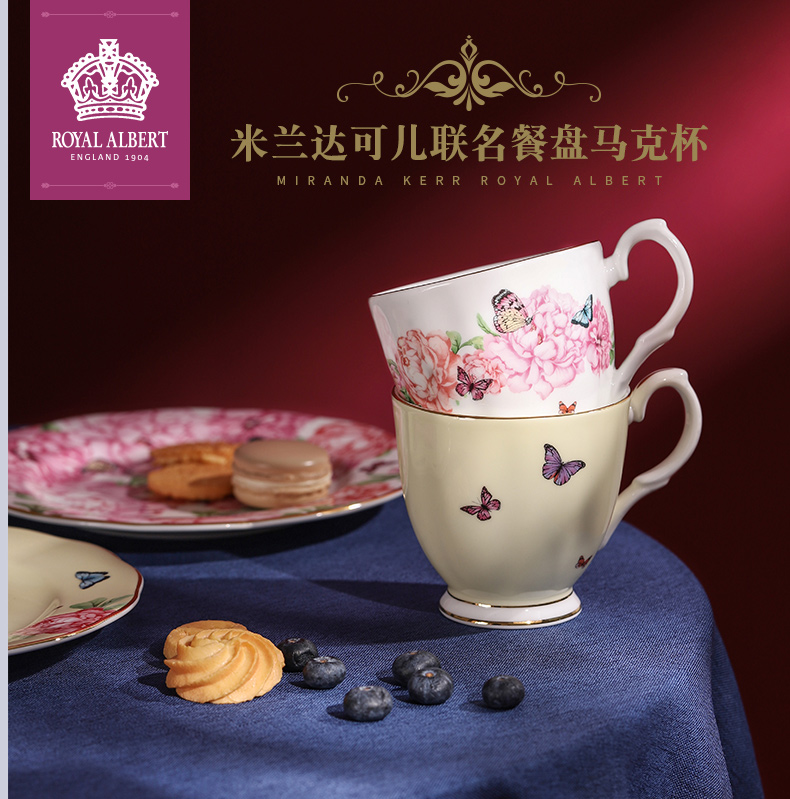 Royal Albert 米兰达可儿 马克杯2件套装 骨瓷茶杯三件套欧式咖啡杯碟