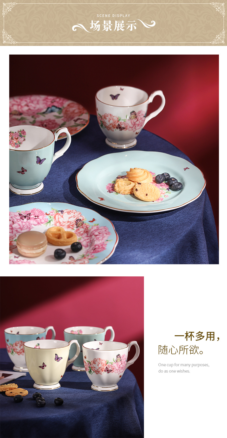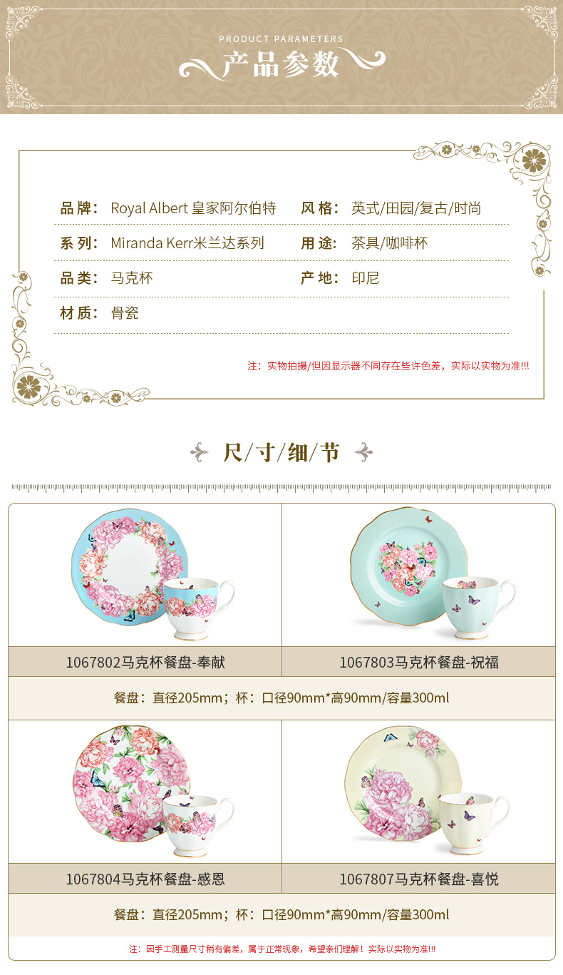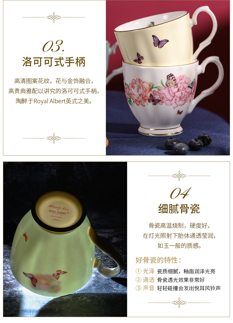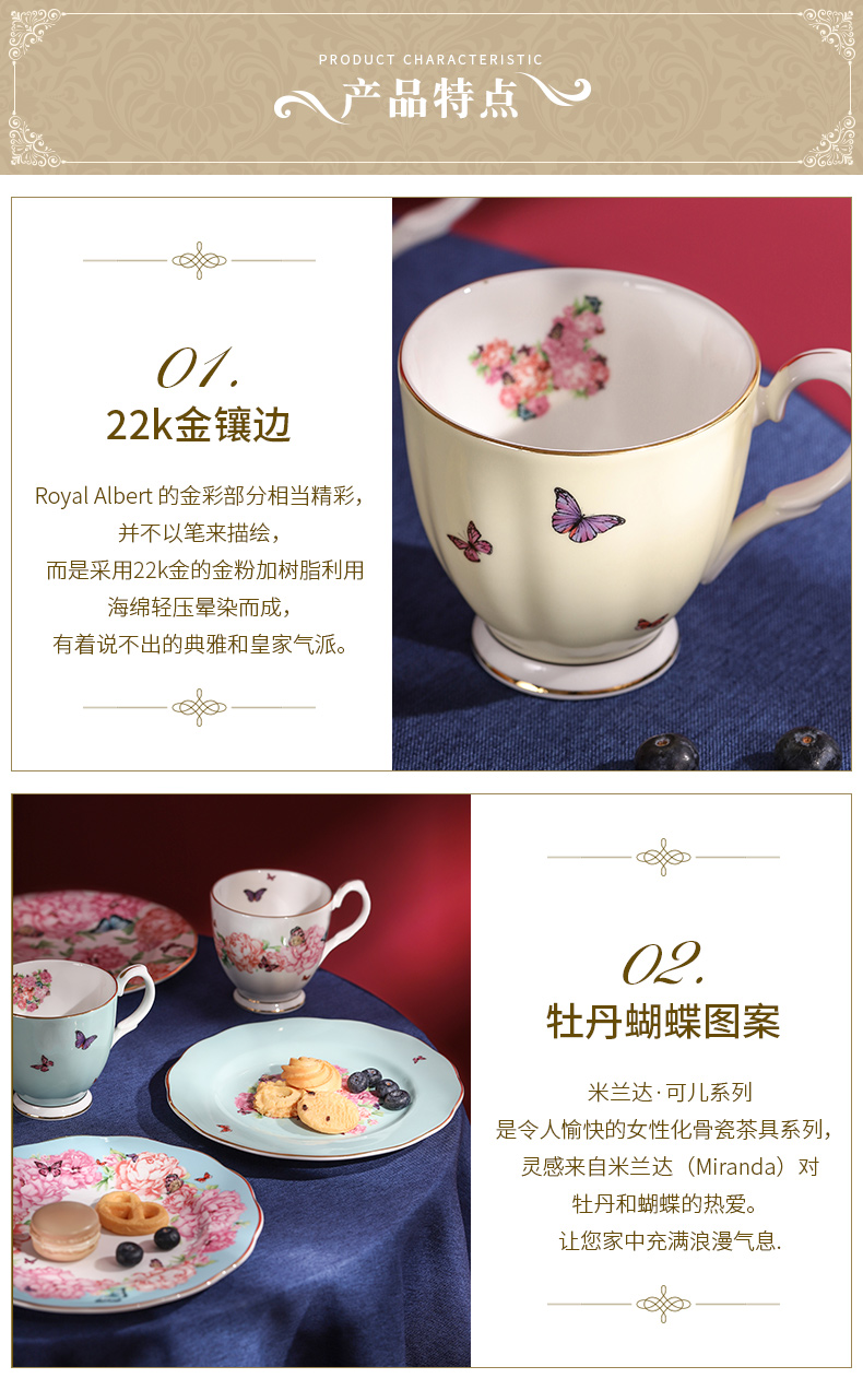 Royal Albert 米兰达可儿 马克杯2件套装 骨瓷茶杯三件套欧式咖啡杯碟