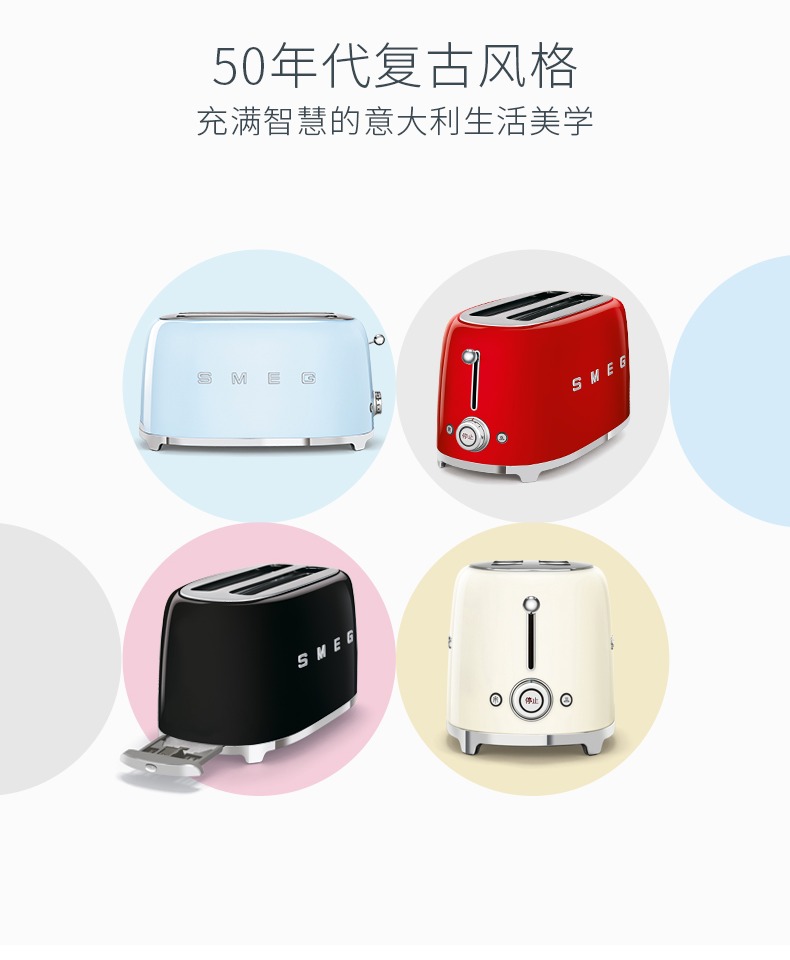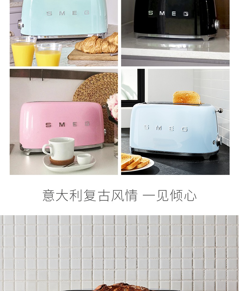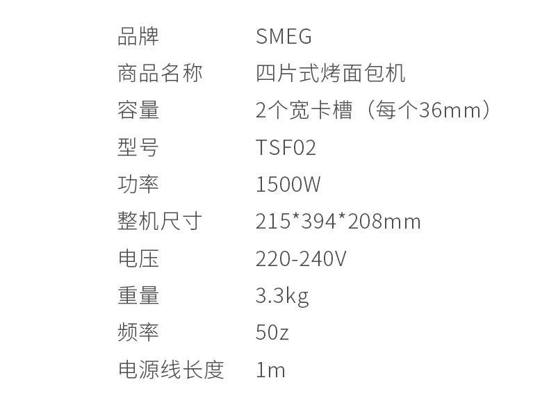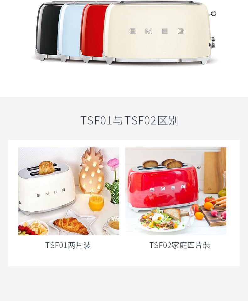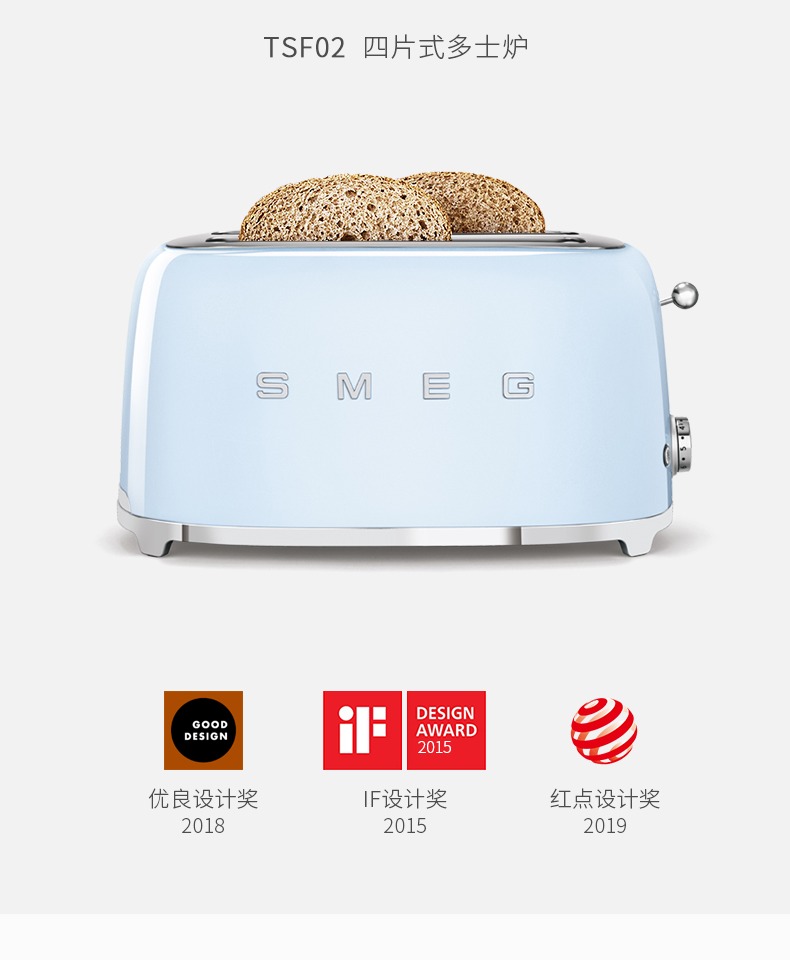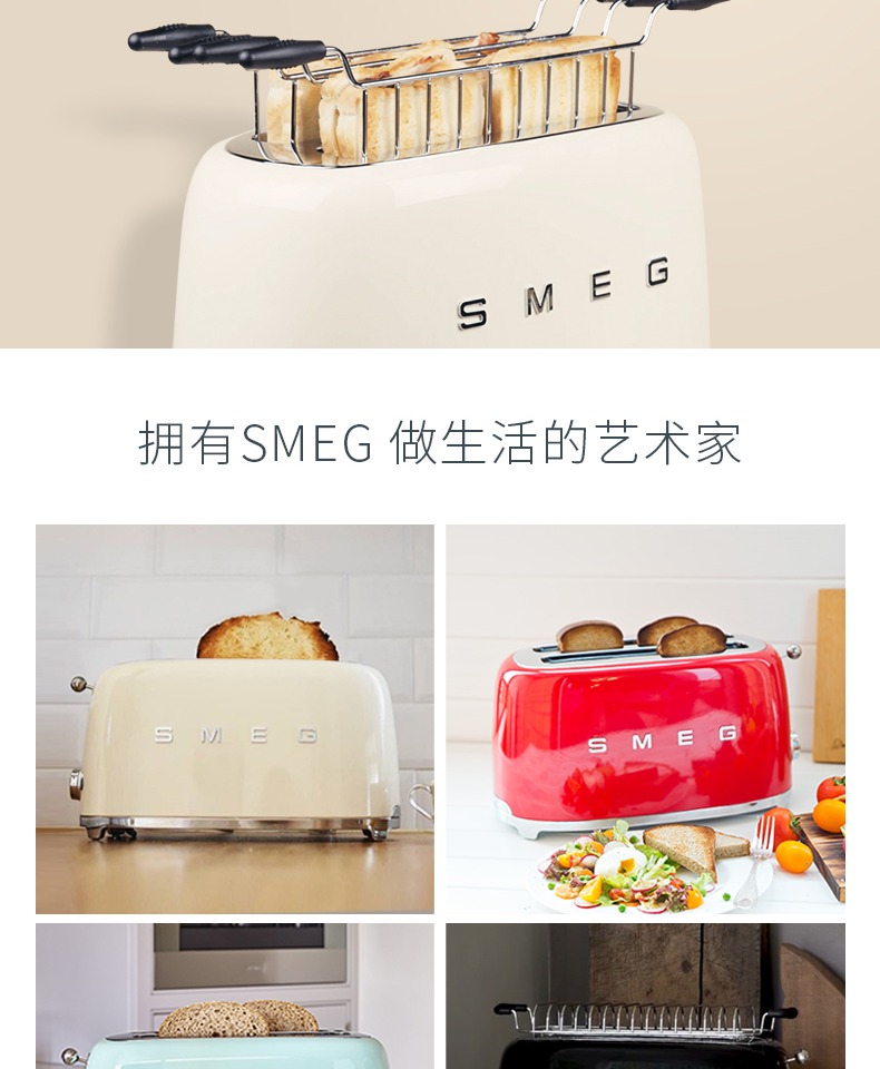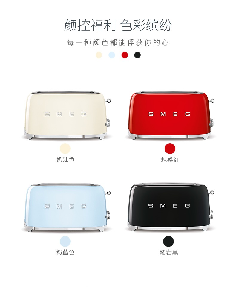 SMEG/斯麦格 TSF02四片式多士炉 家用双烘烤面包机(不支持七天无理由退换)[福利品]