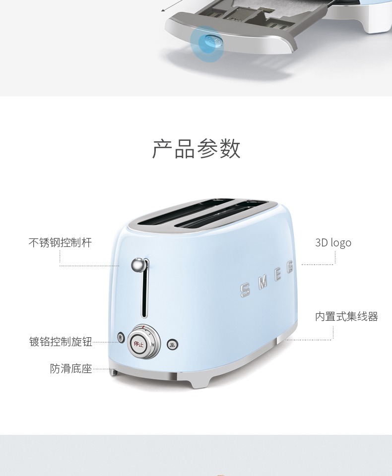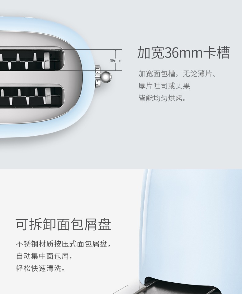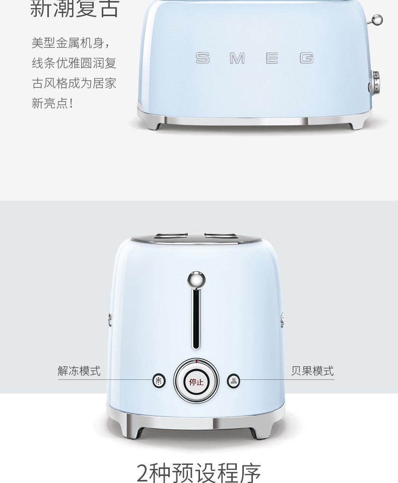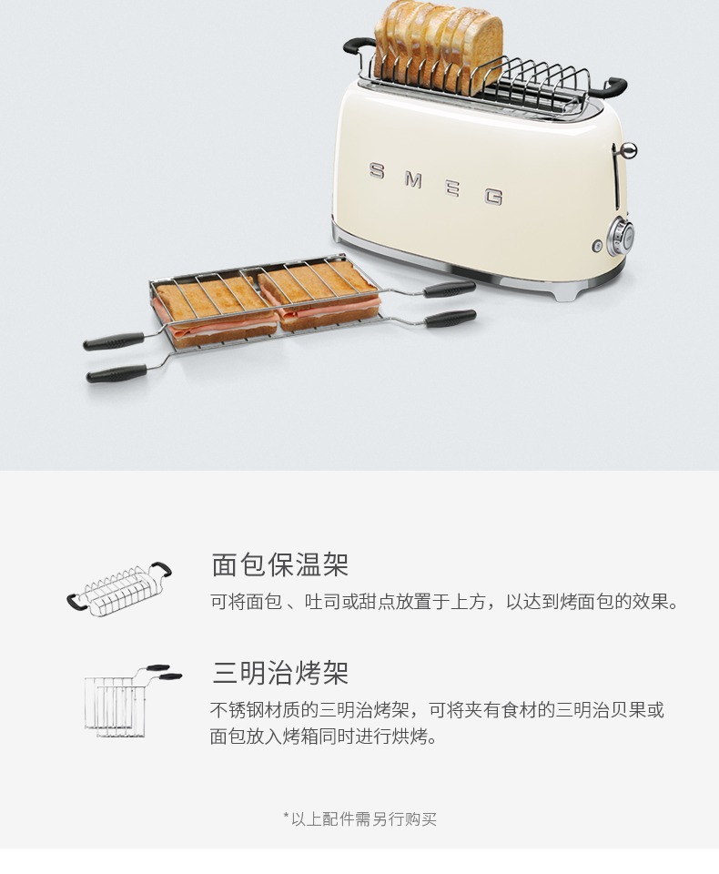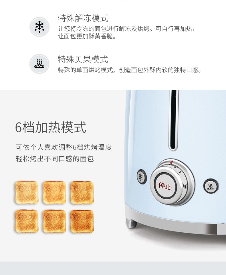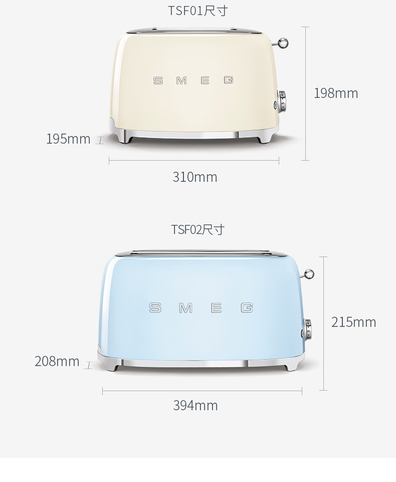 SMEG/斯麦格 TSF02四片式多士炉 家用双烘烤面包机(不支持七天无理由退换)[福利品]