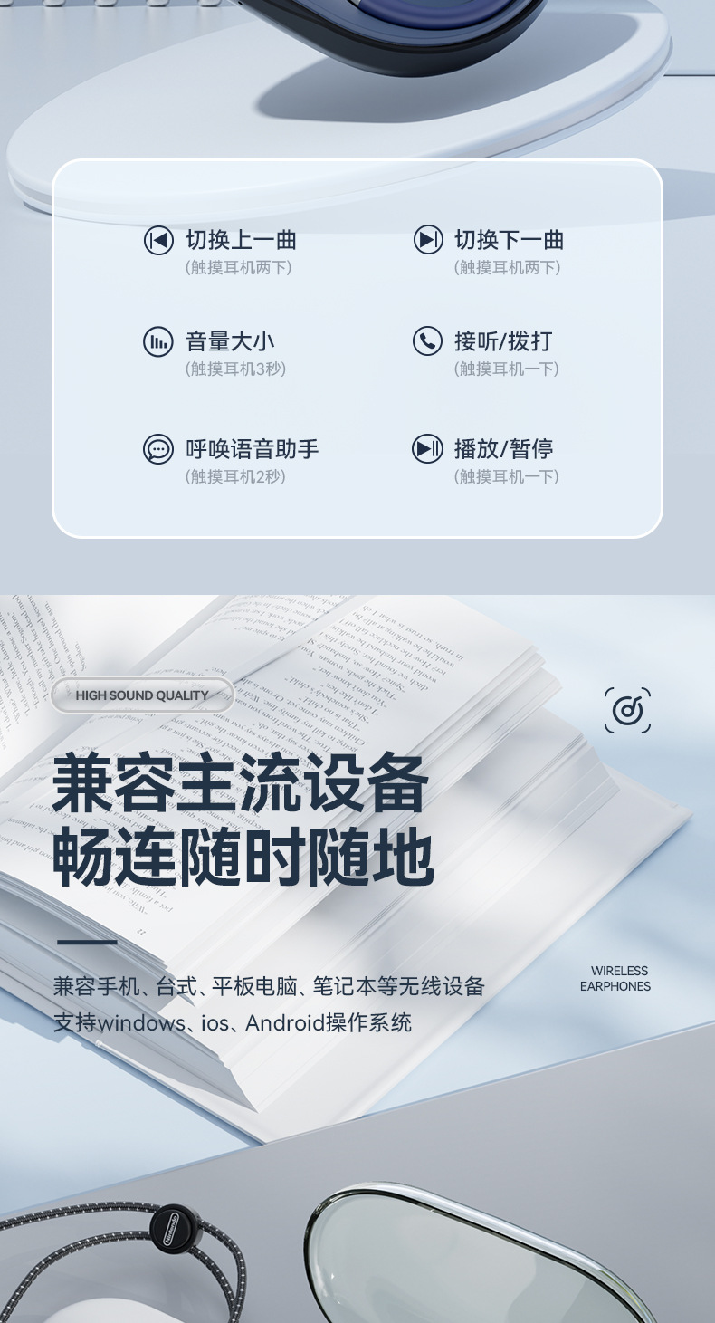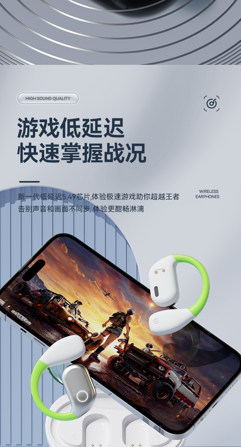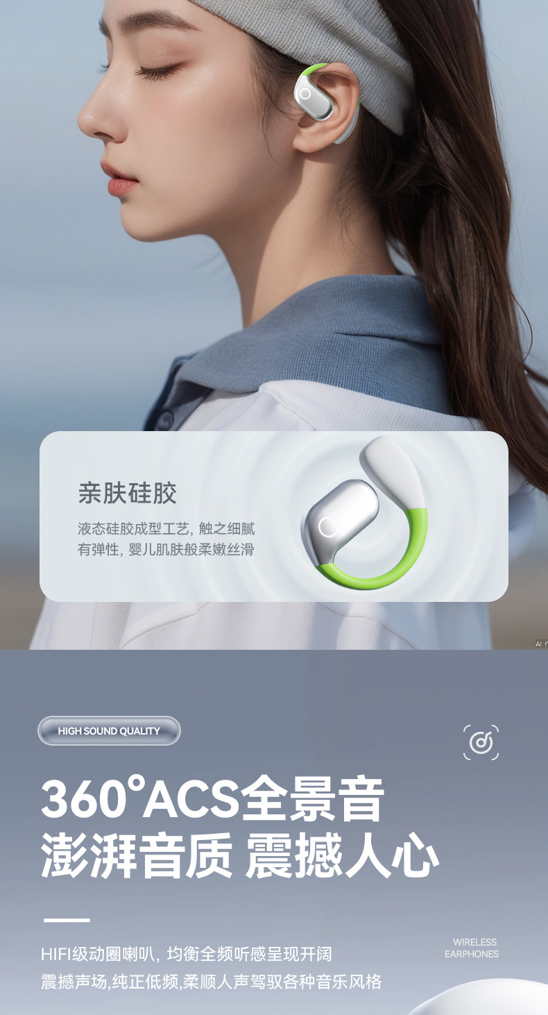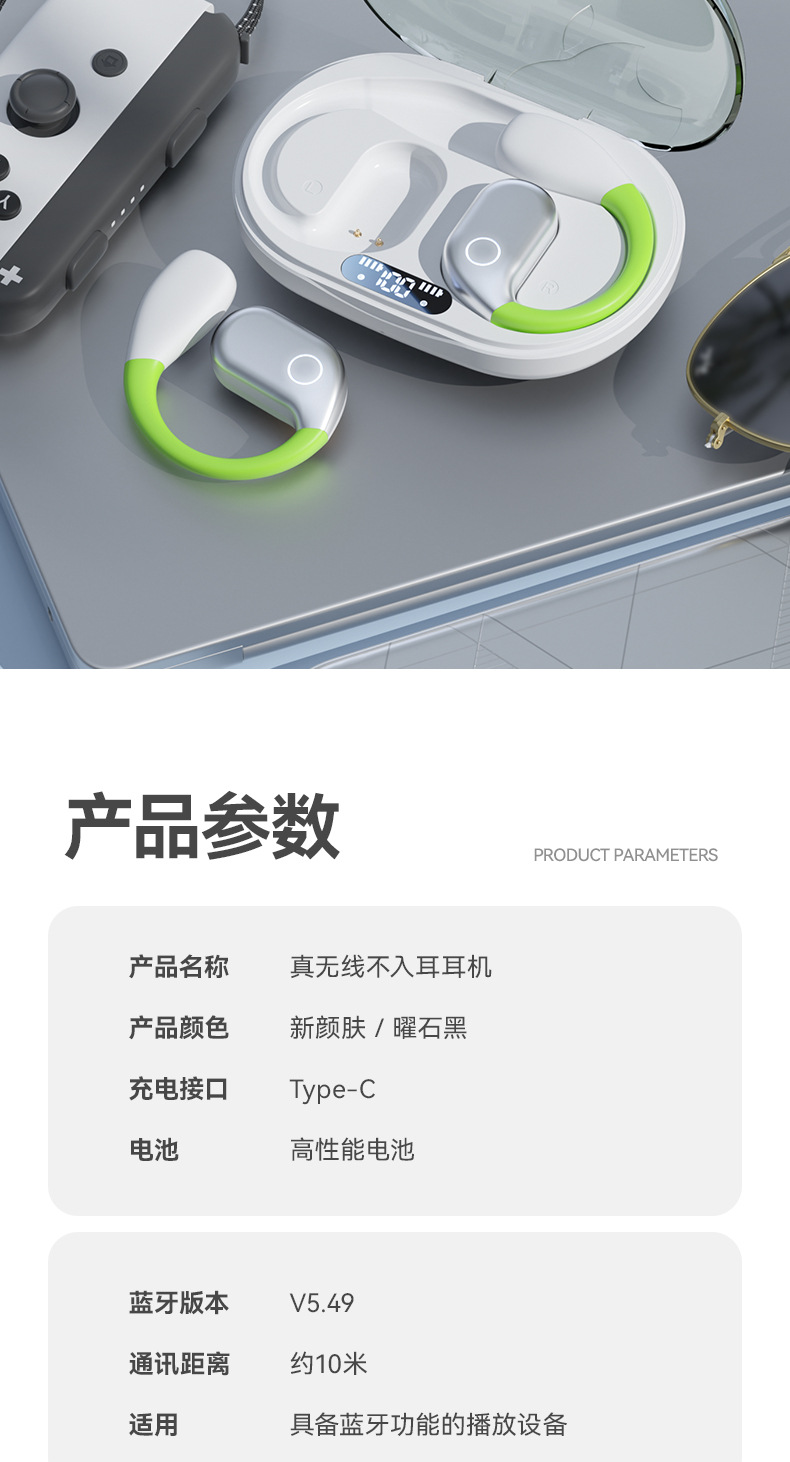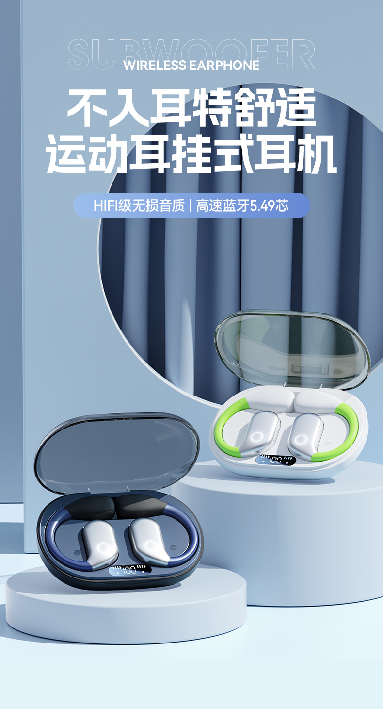【薄如轻纱,柔如春风】新款拼色蓝牙耳机来袭!卓越的蓝牙5.49芯片,智能触控,让你尽情享受360°全景音效和HIFI级音质。超长续航不入耳挂耳式设计,狂甩不掉,让你畅游运动的海洋!