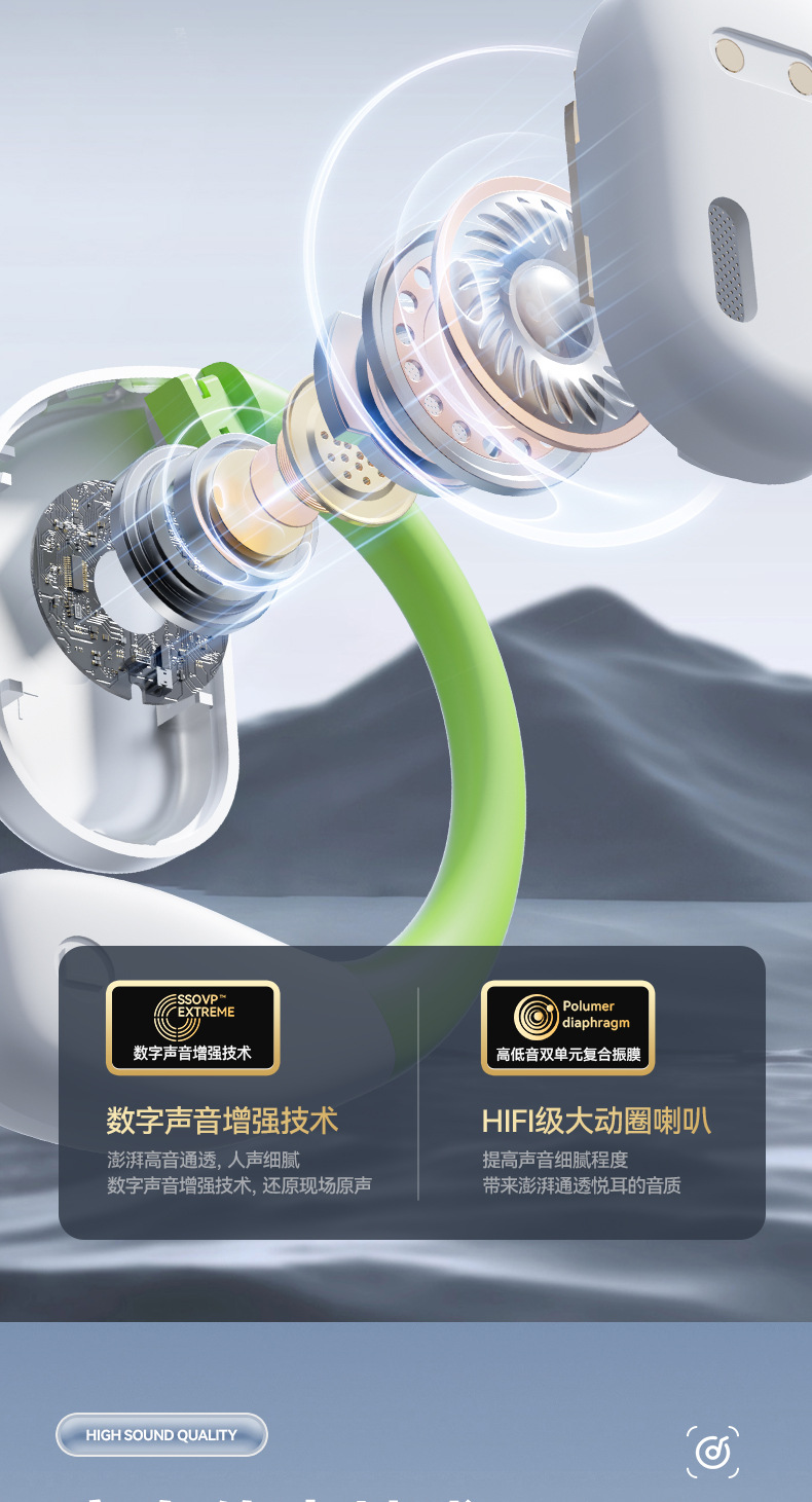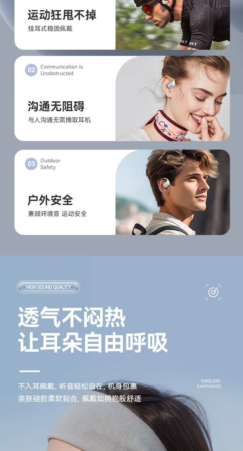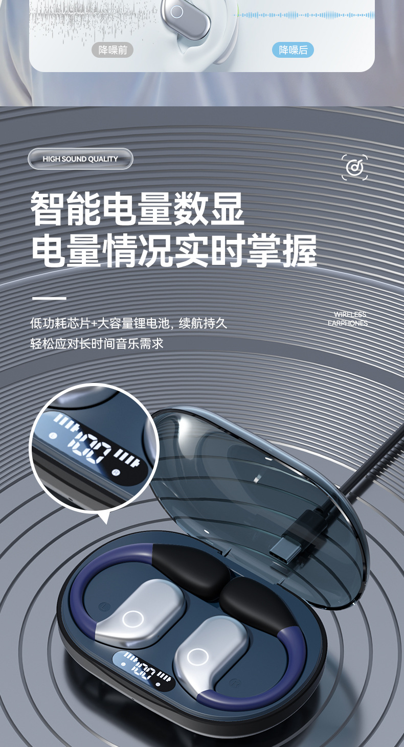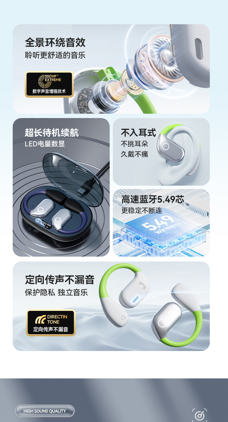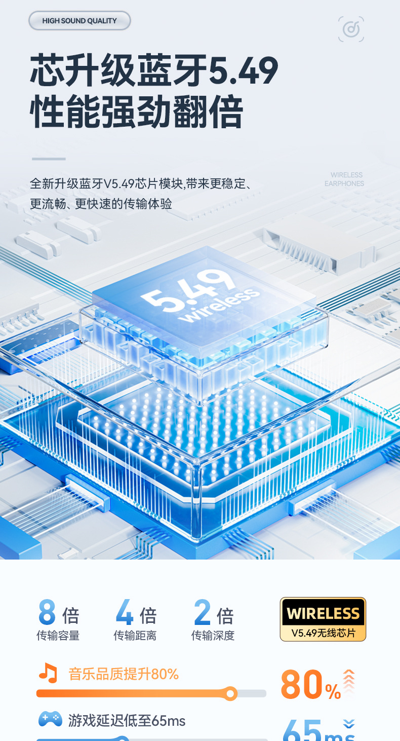 【薄如轻纱,柔如春风】新款拼色蓝牙耳机来袭!卓越的蓝牙5.49芯片,智能触控,让你尽情享受360°全景音效和HIFI级音质。超长续航不入耳挂耳式设计,狂甩不掉,让你畅游运动的海洋!