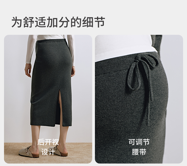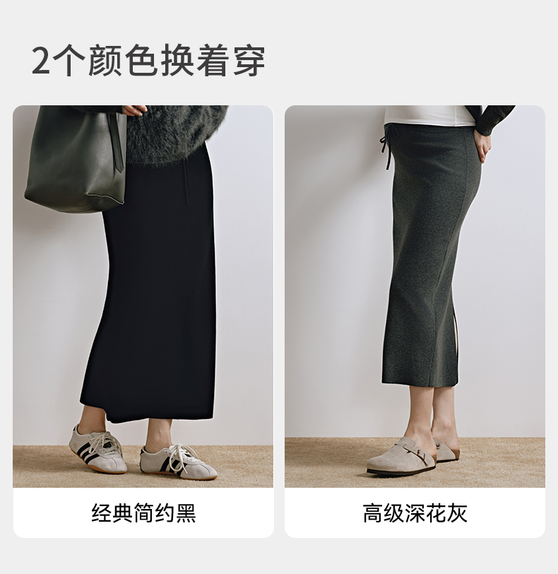【限时会员价】嫚熙孕妇半身裙修身显瘦开叉裙可调节腰头全孕期可穿春秋2025新款