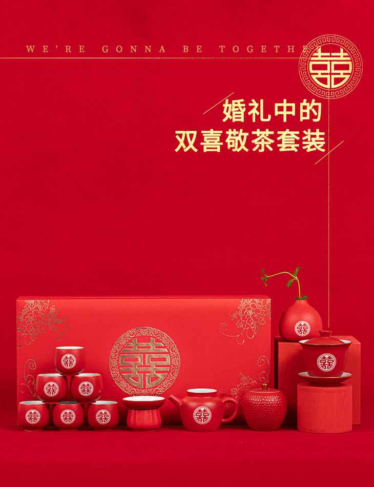 结婚茶具套装新婚高档嫁妆喜庆送人陶瓷红色陪嫁家用敬茶杯礼盒装