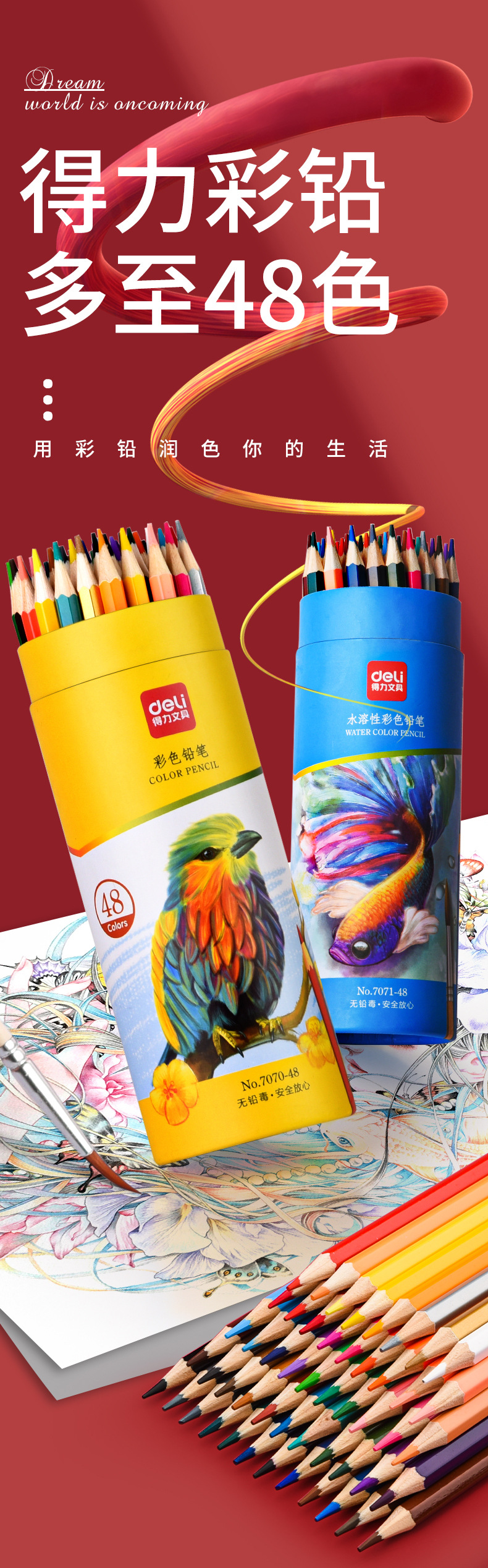 【Deli/得力文具!7070彩色儿童铅笔】色彩斑斓,细腻柔滑,小手握持宛如游龙般舒适,让孩子畅游画海,想象无限,梦想绽放,安全呵护,轻松愉快,妈妈放心选择!