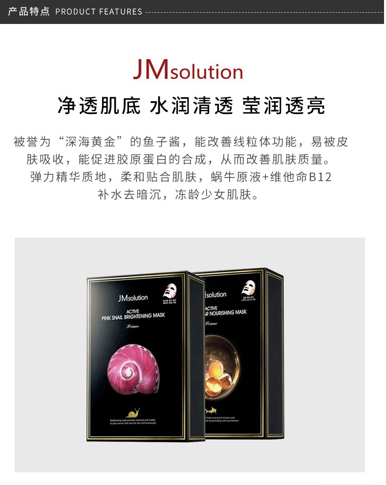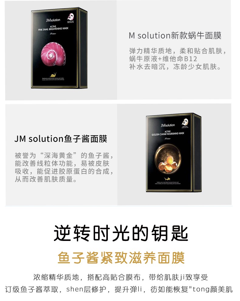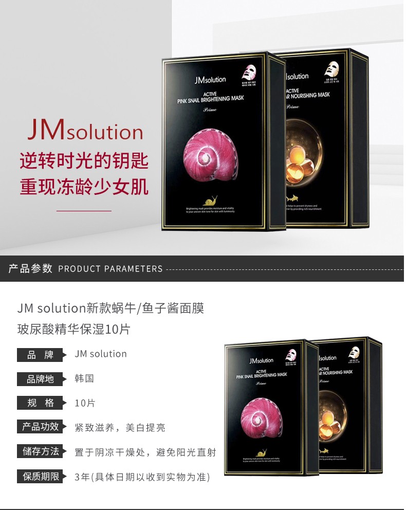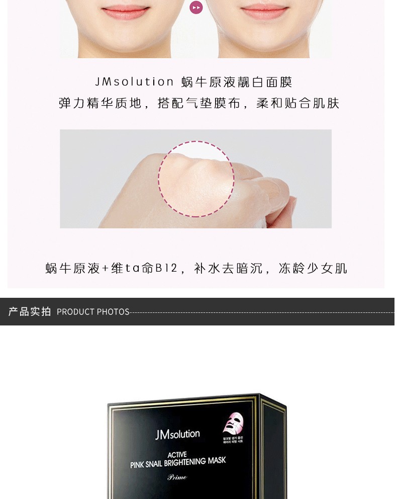 JM solution 蜗牛原液靓白面膜 10片装 韩国