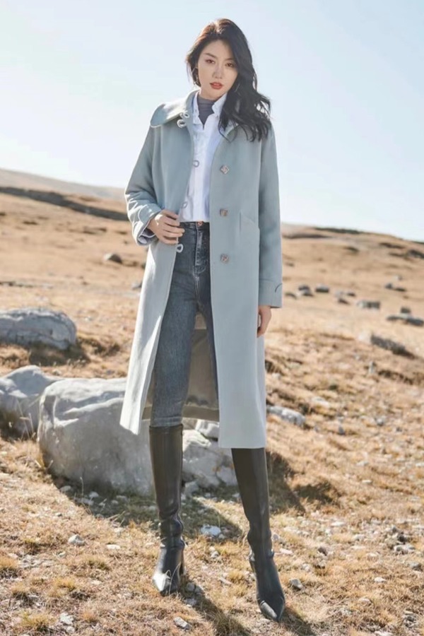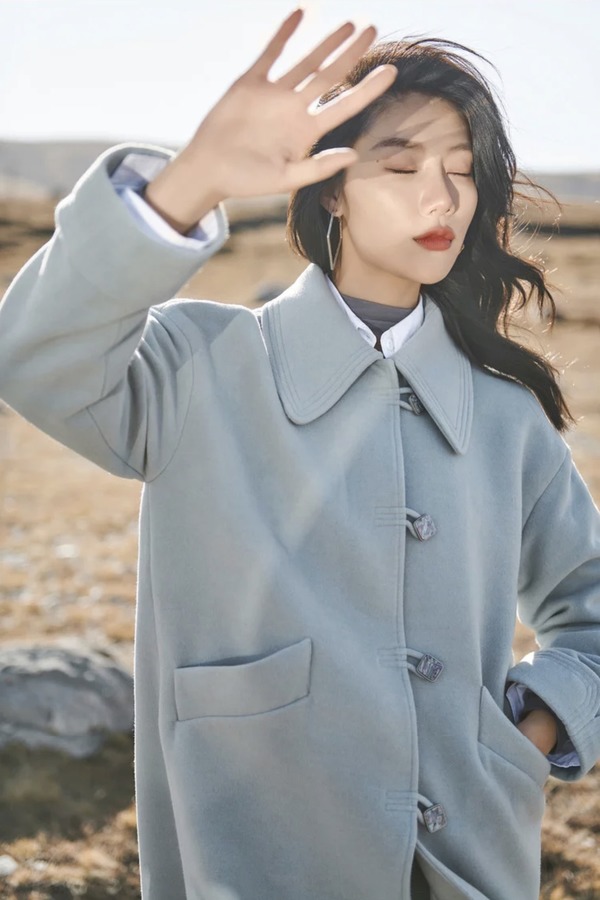 LA CRAWFISH 气质毛呢大衣宽松休闲款外套 14738