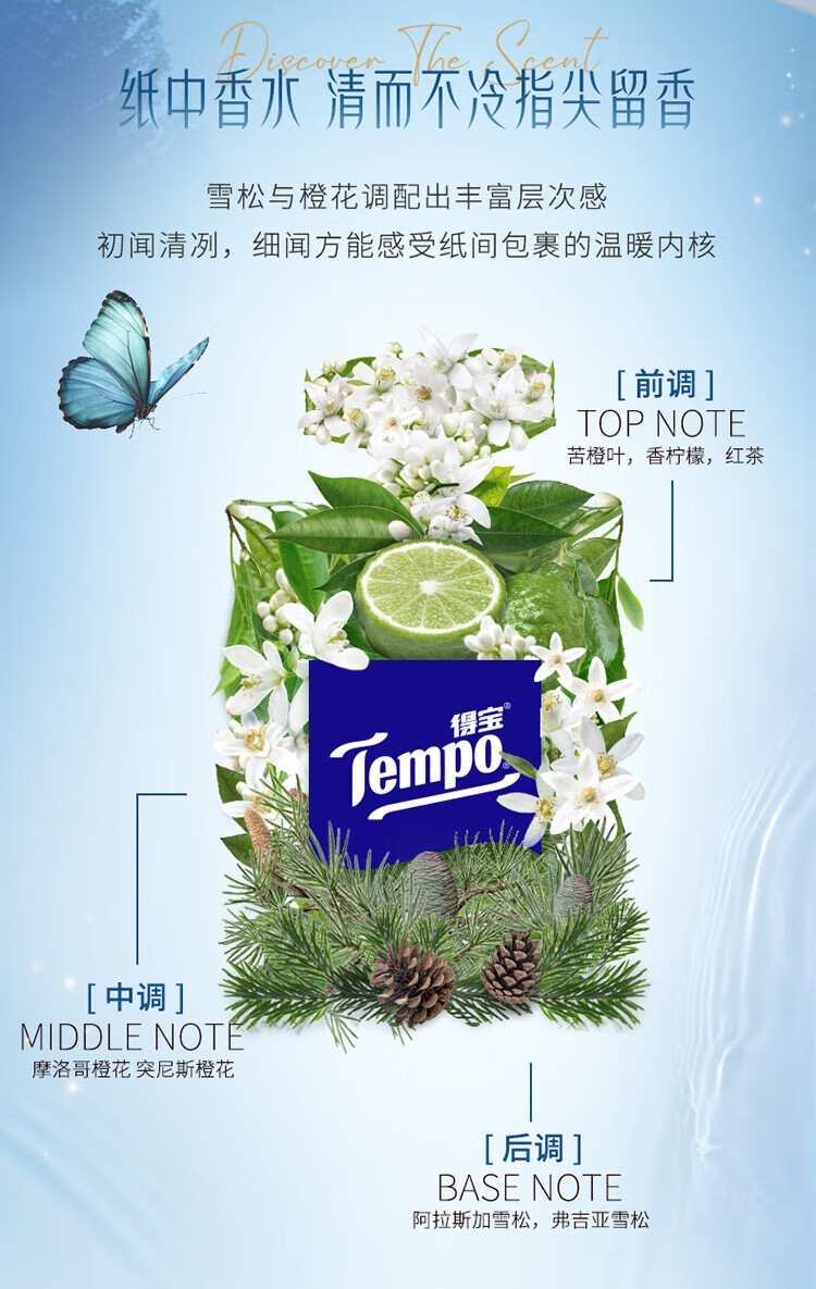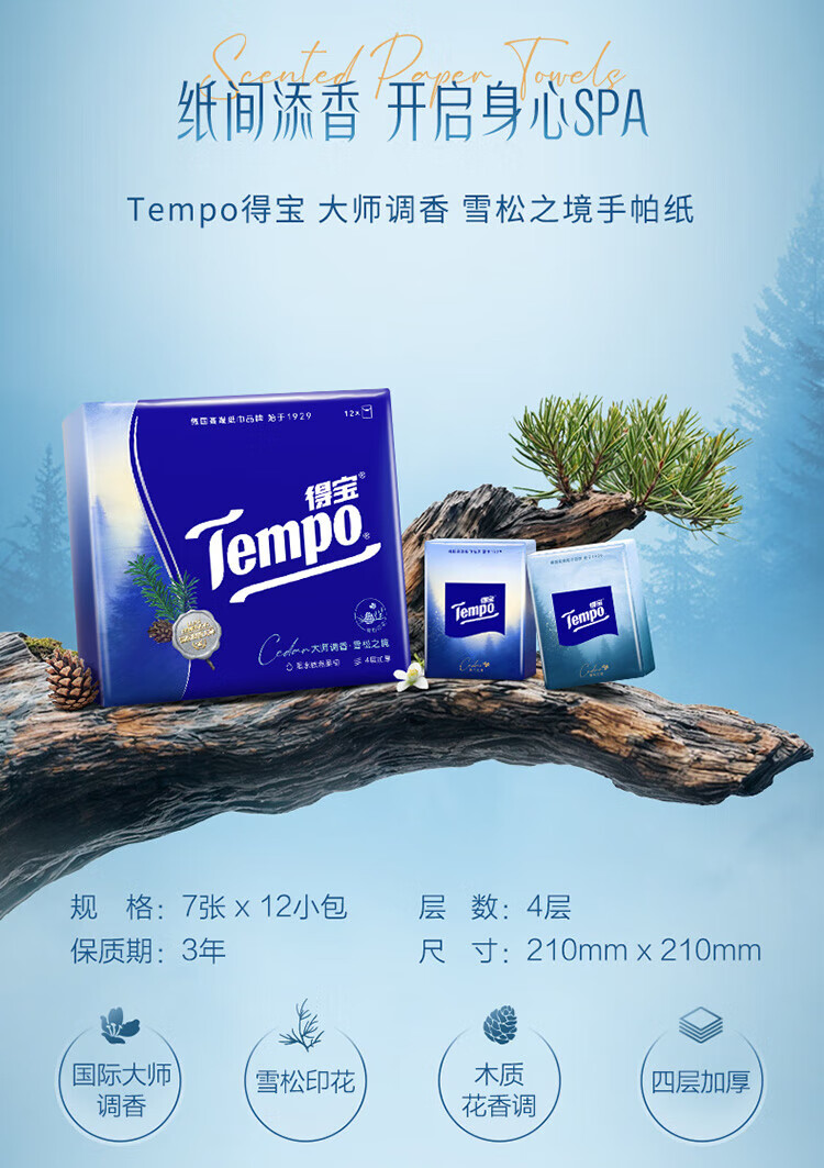 得宝雪松味印花迷你手帕纸12包