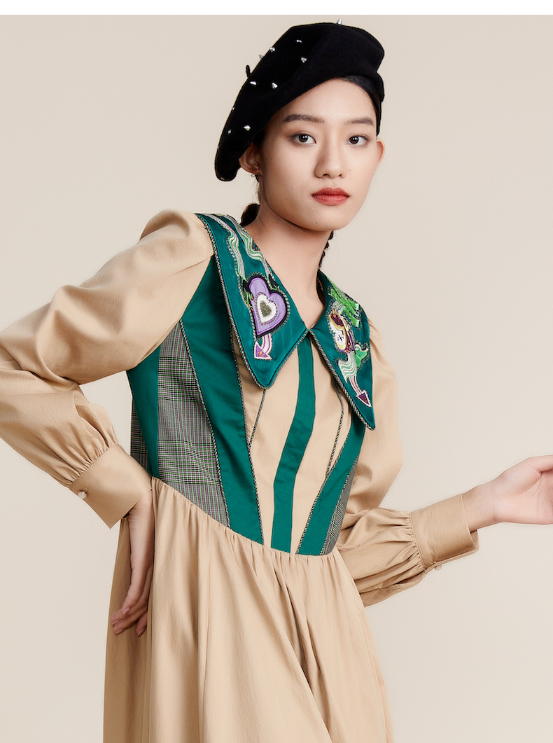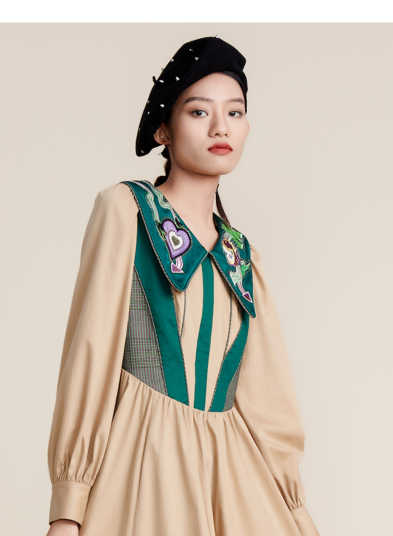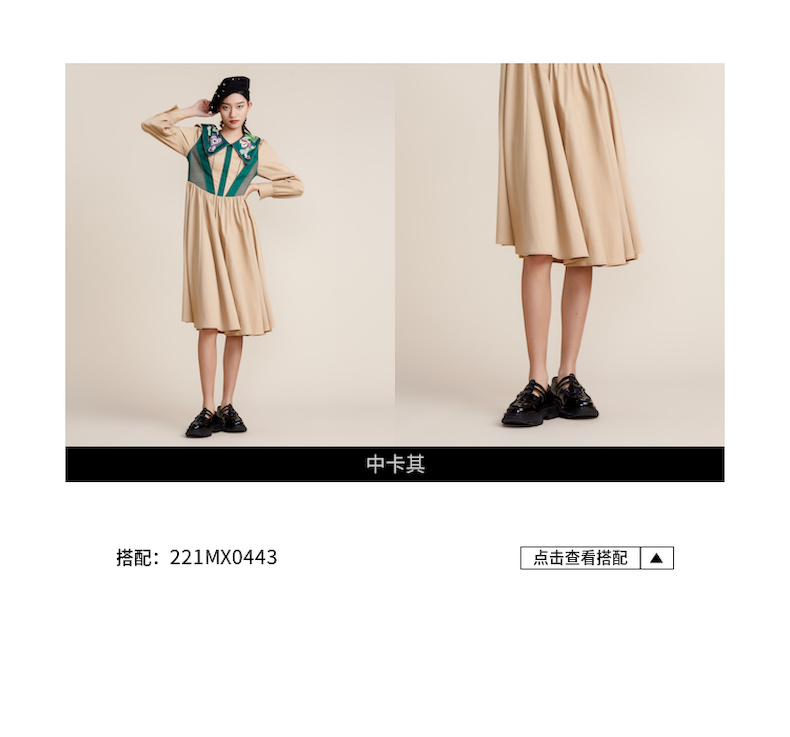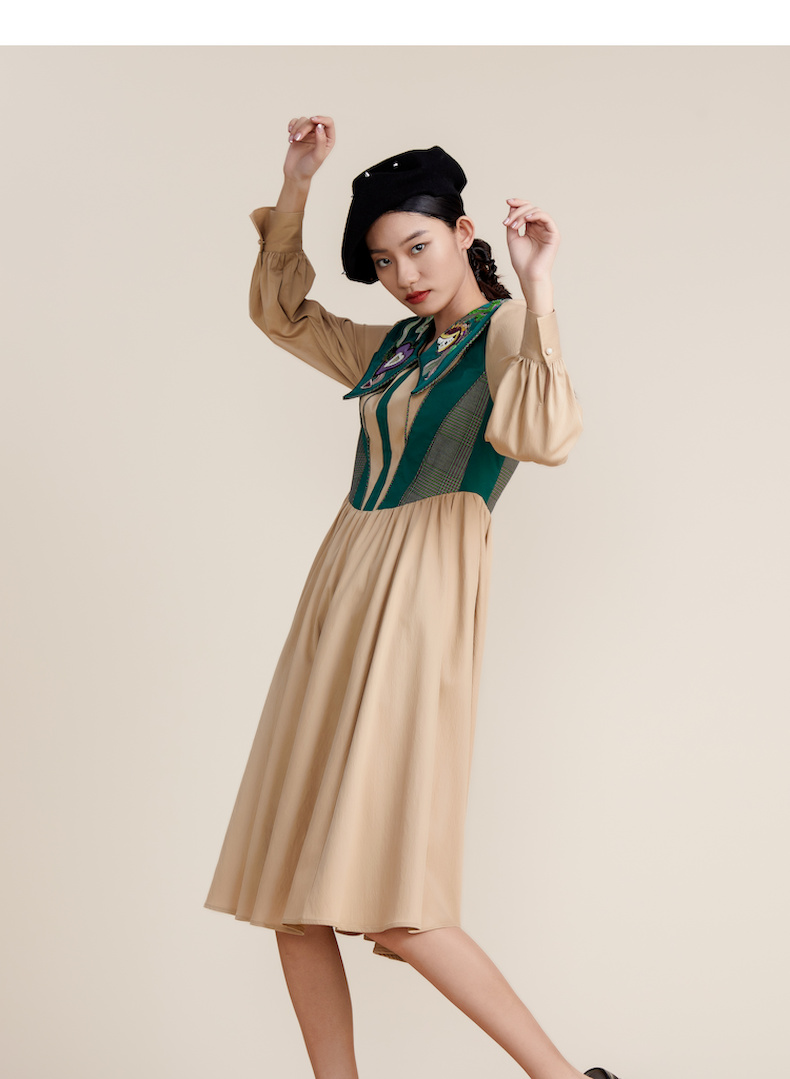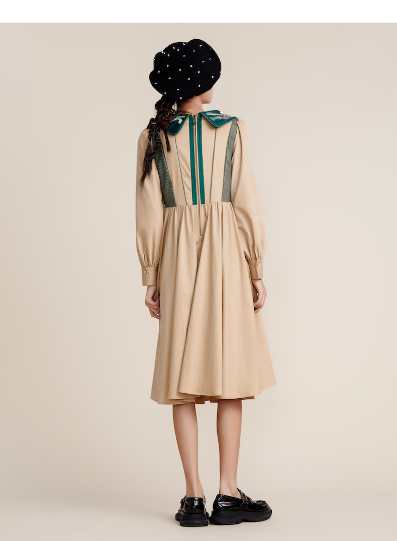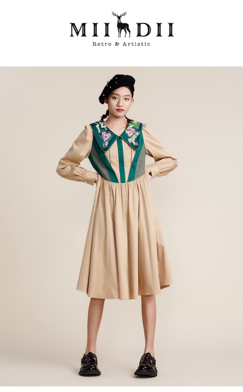 MIIDII谜底2022春新款宫廷复古彼德潘领天丝收腰连衣裙221ML0121