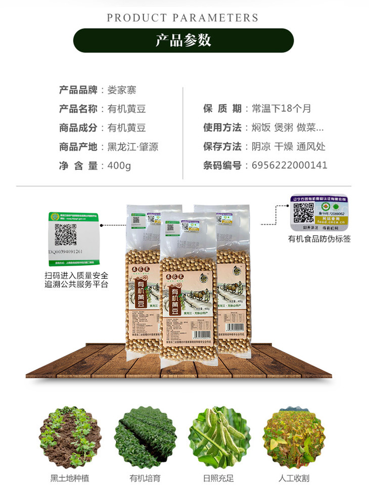 娄家寨 有机黄豆400g*2袋 打豆浆非转基因支持自提