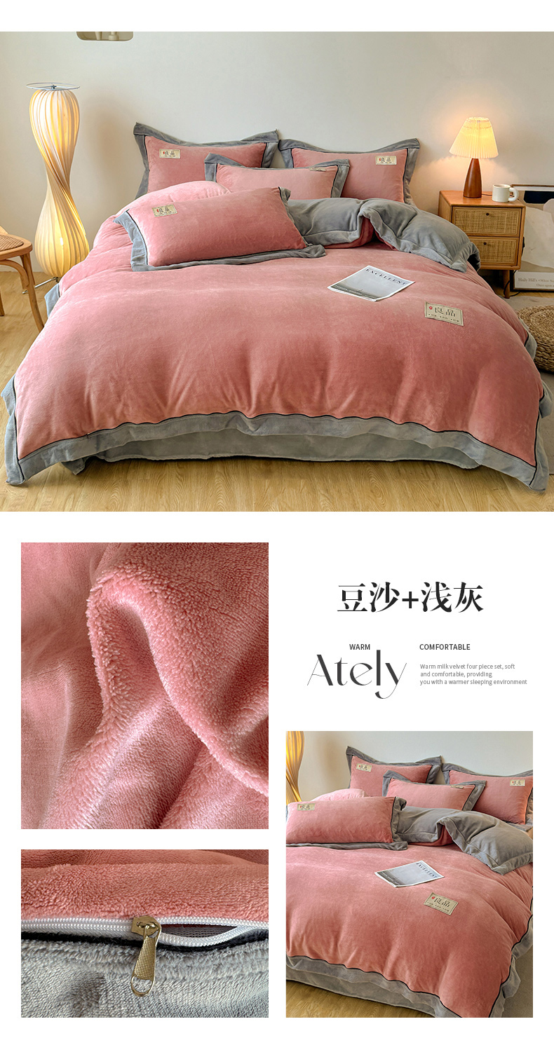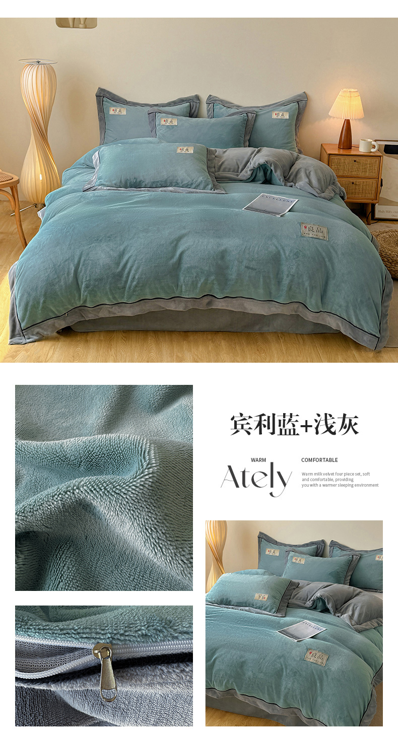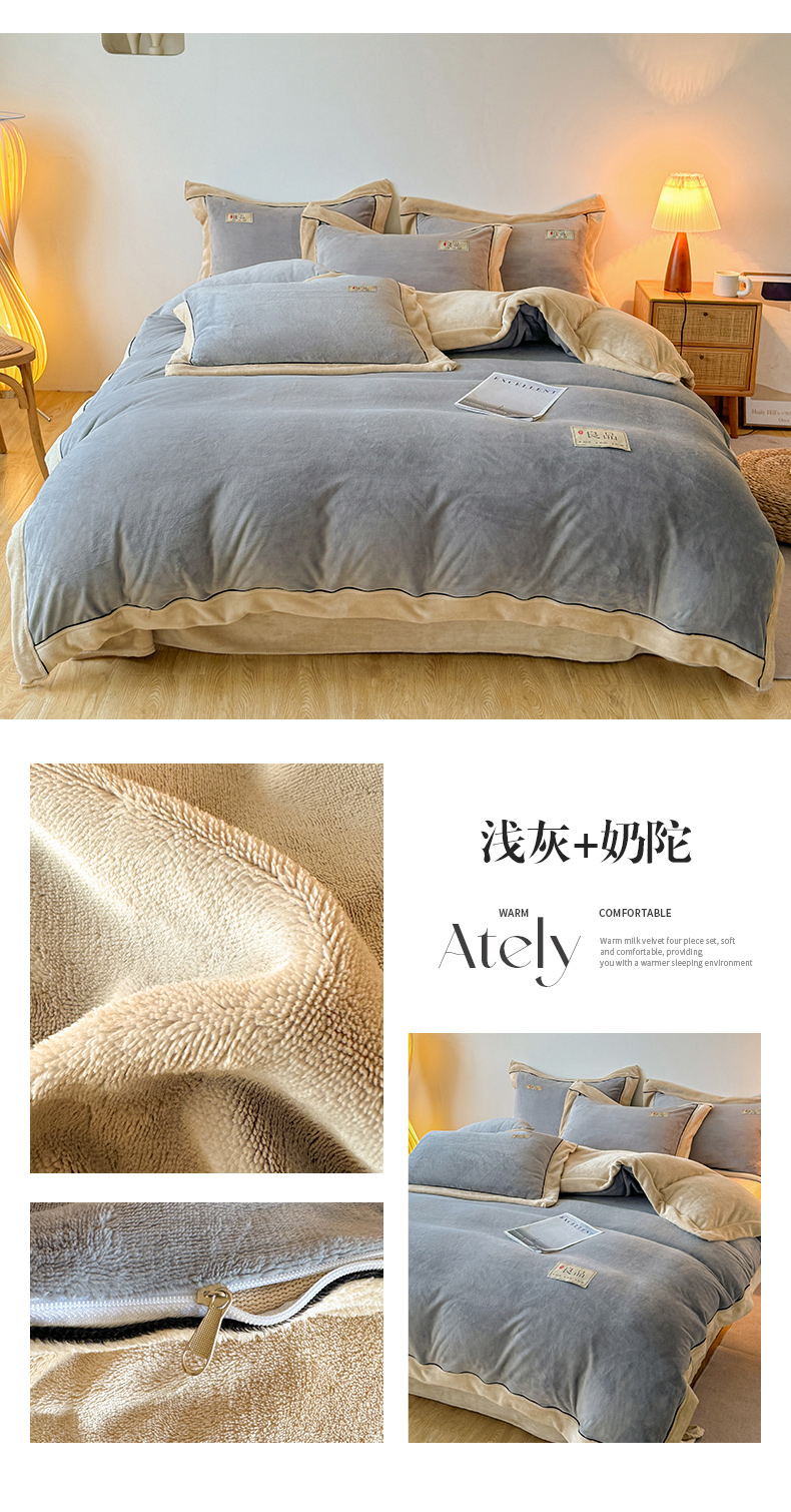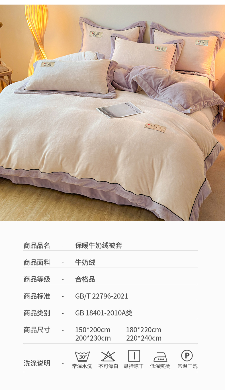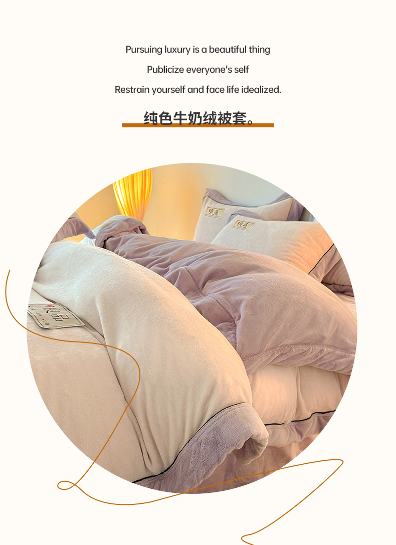 自然醒高端A类良品纯色双拼牛奶绒冬季被套2米x2米3单件加绒珊瑚绒被罩QJ