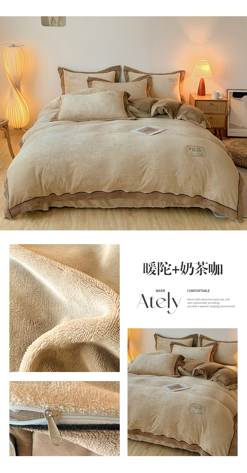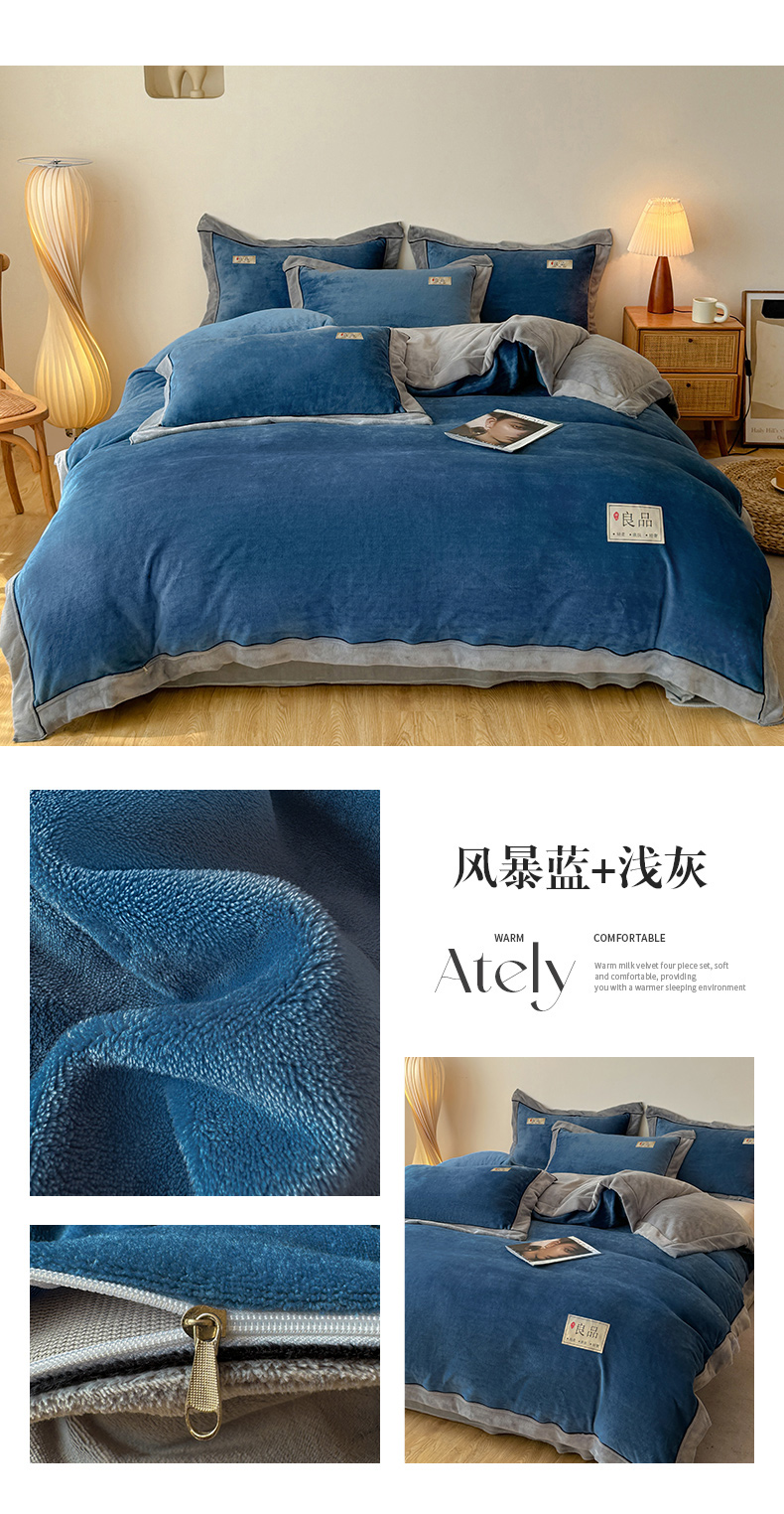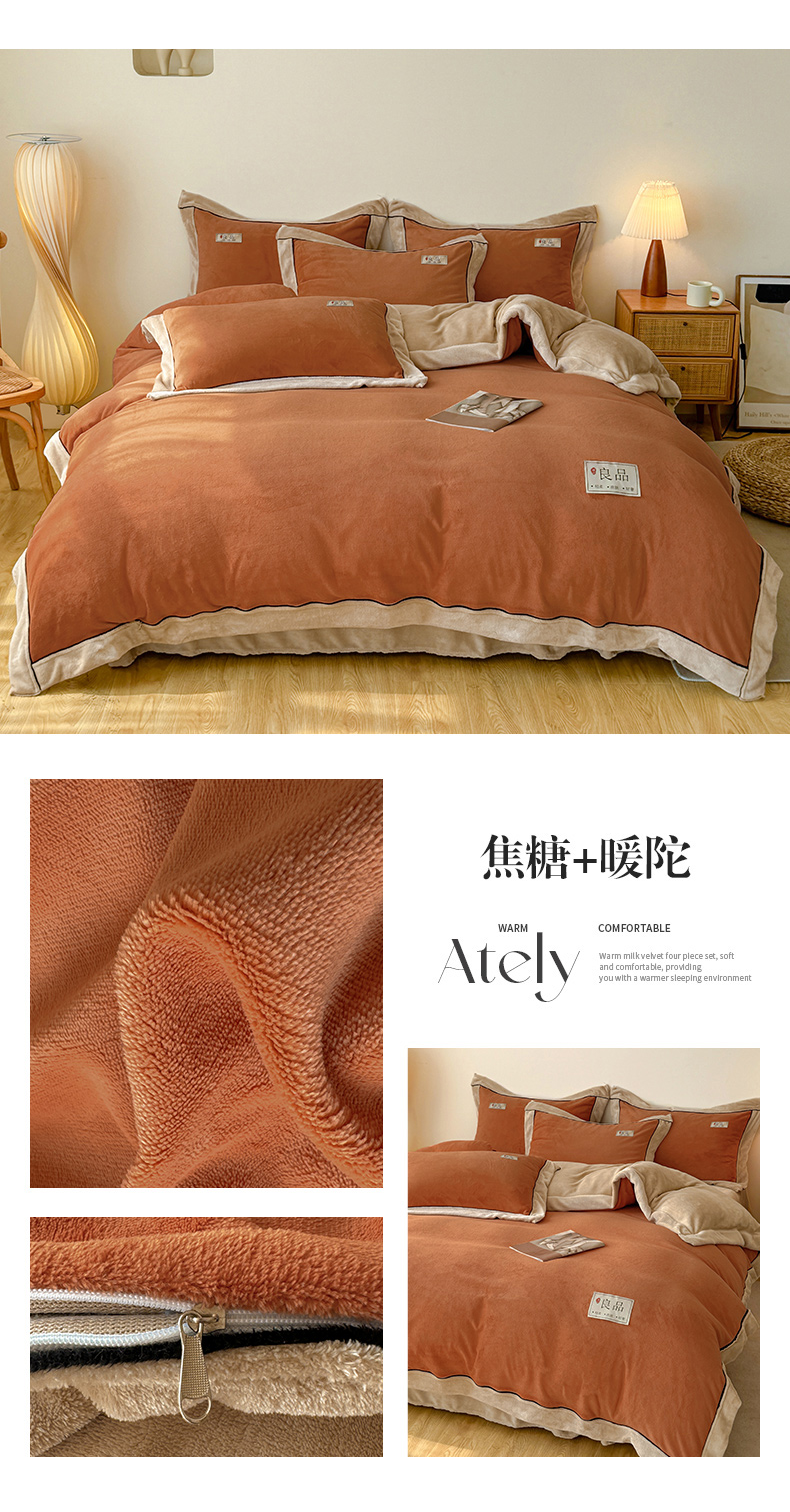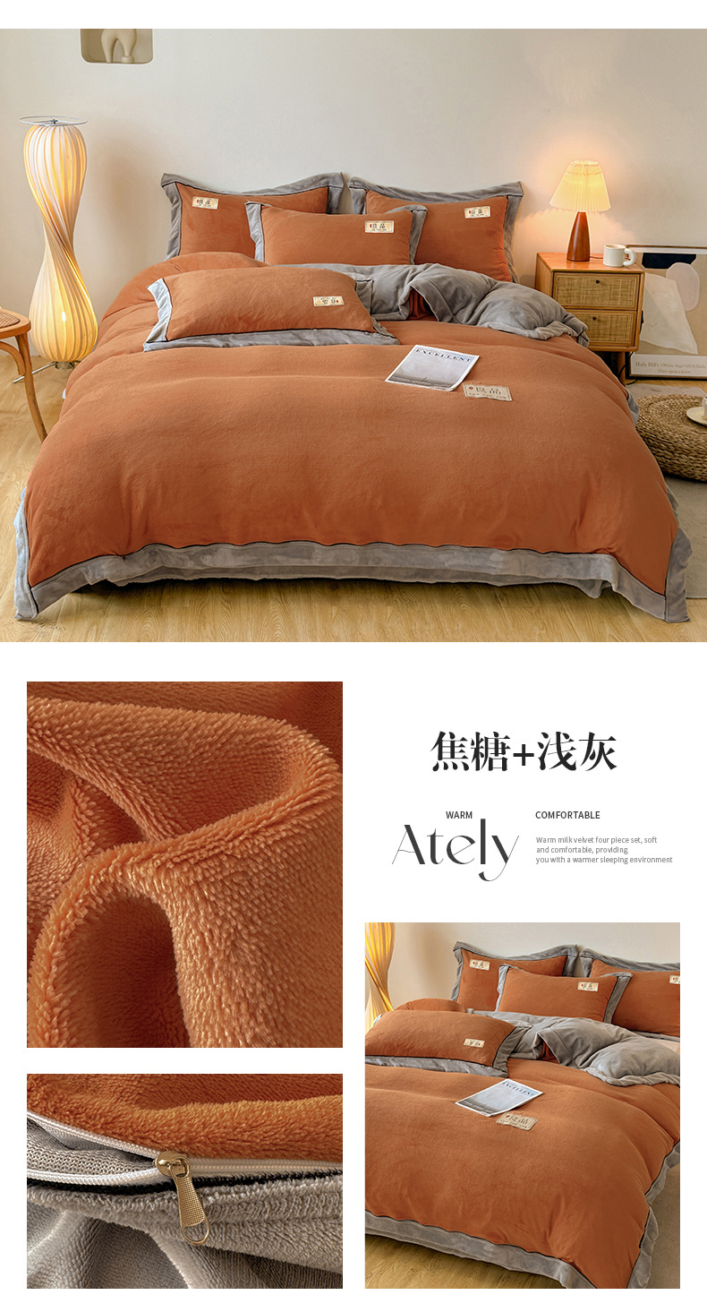 自然醒高端A类良品纯色双拼牛奶绒冬季被套2米x2米3单件加绒珊瑚绒被罩QJ