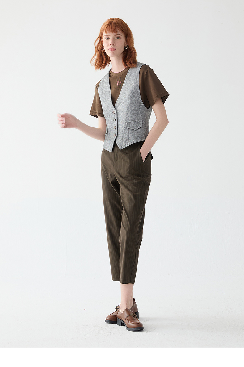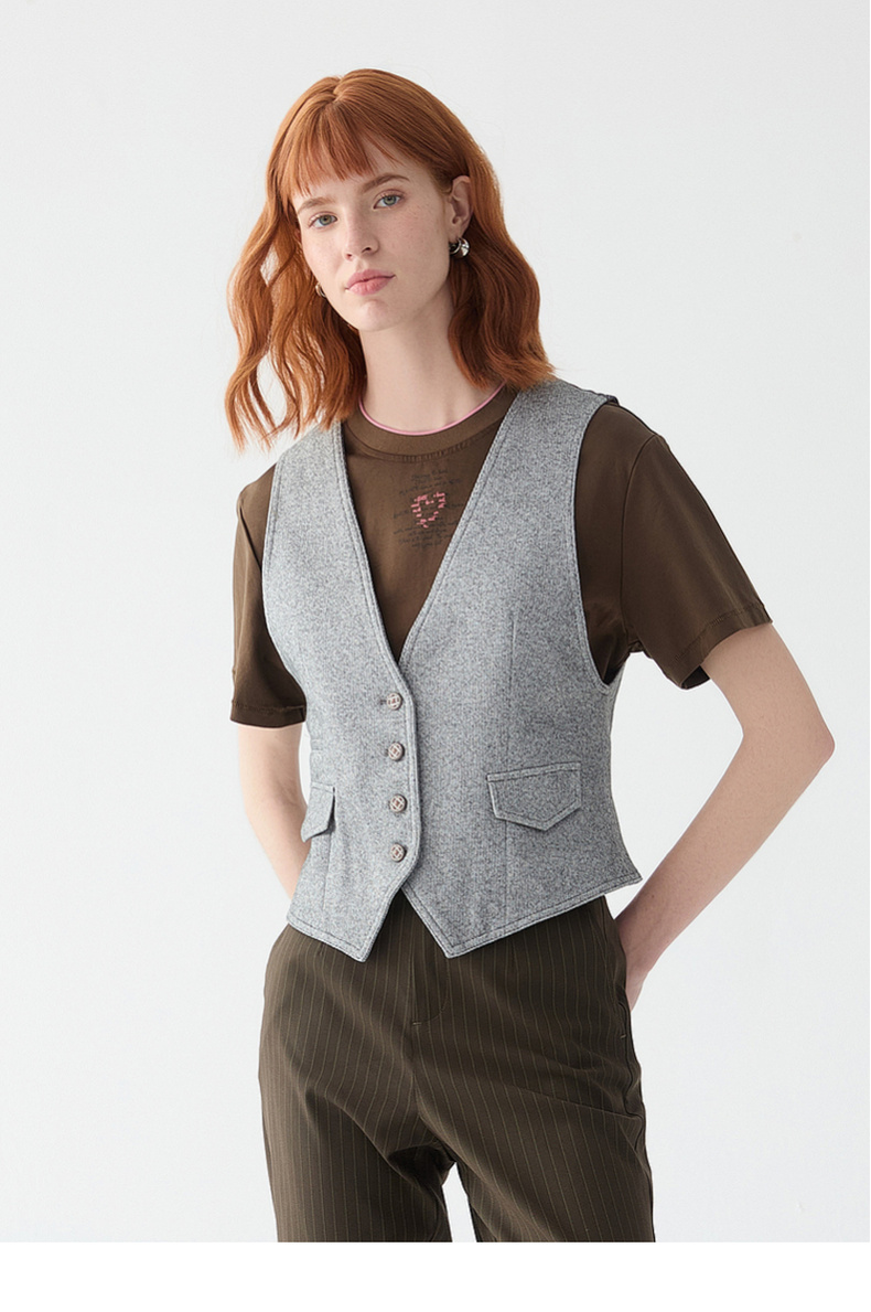 谜底西装马甲女2025秋季新款复古风V领修身高腰短款马夹257MM7727