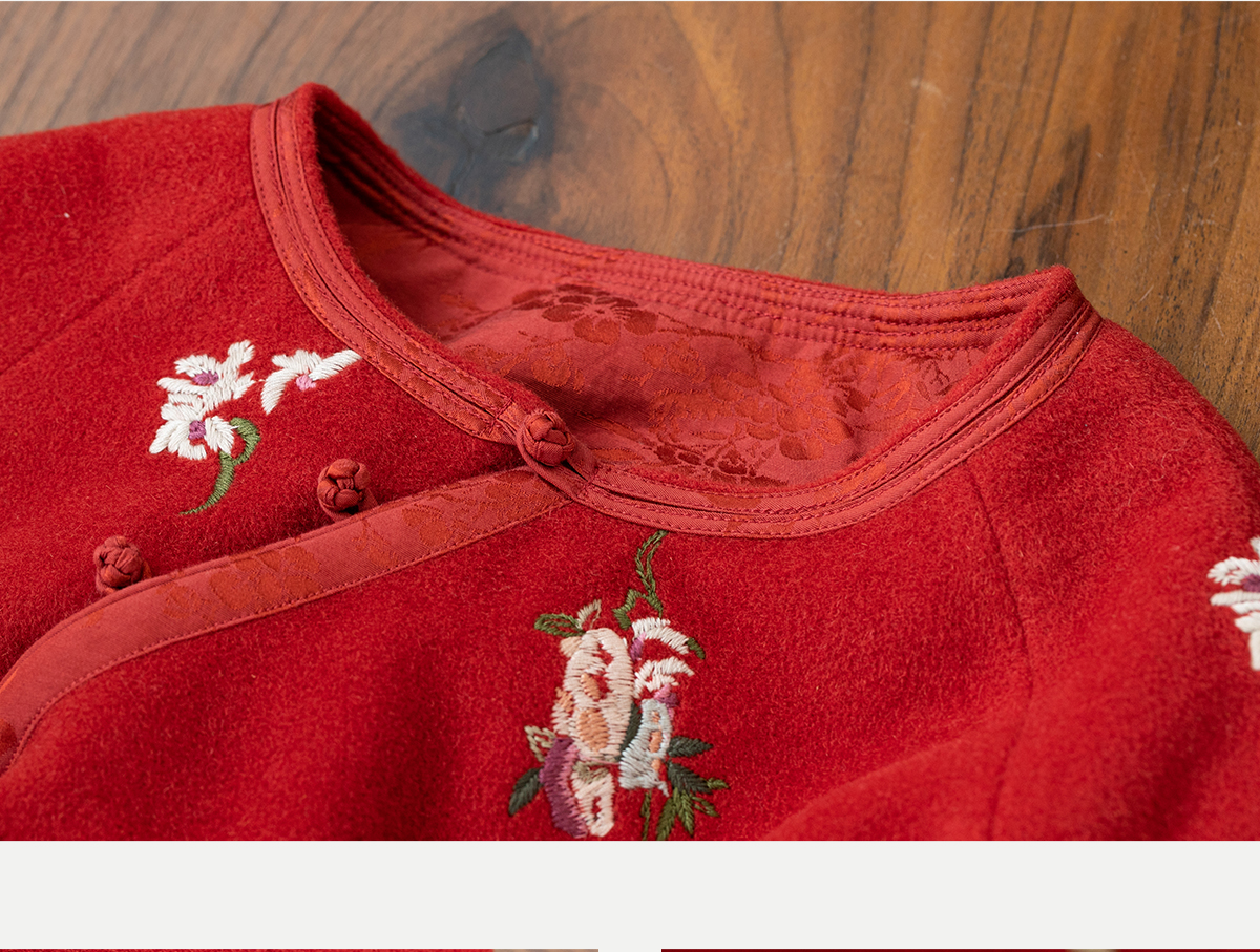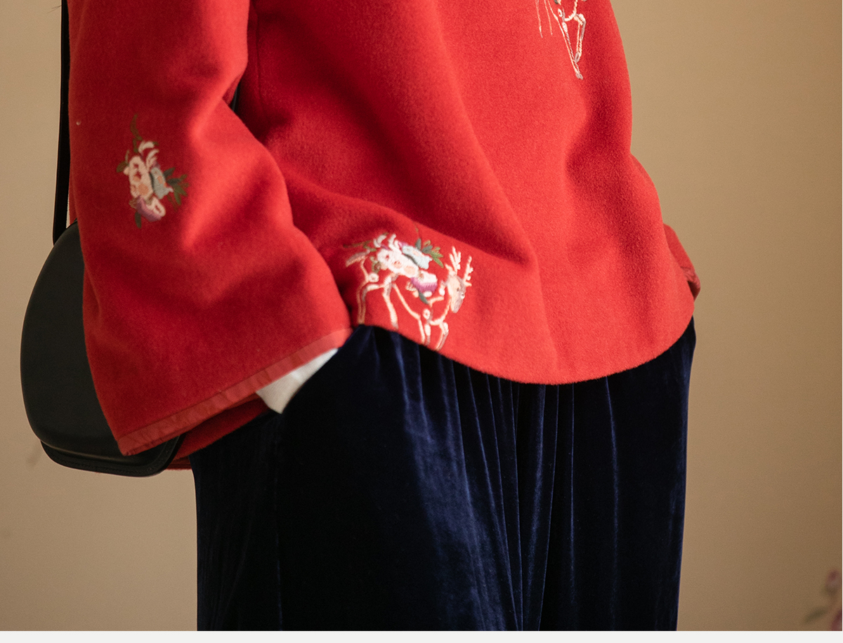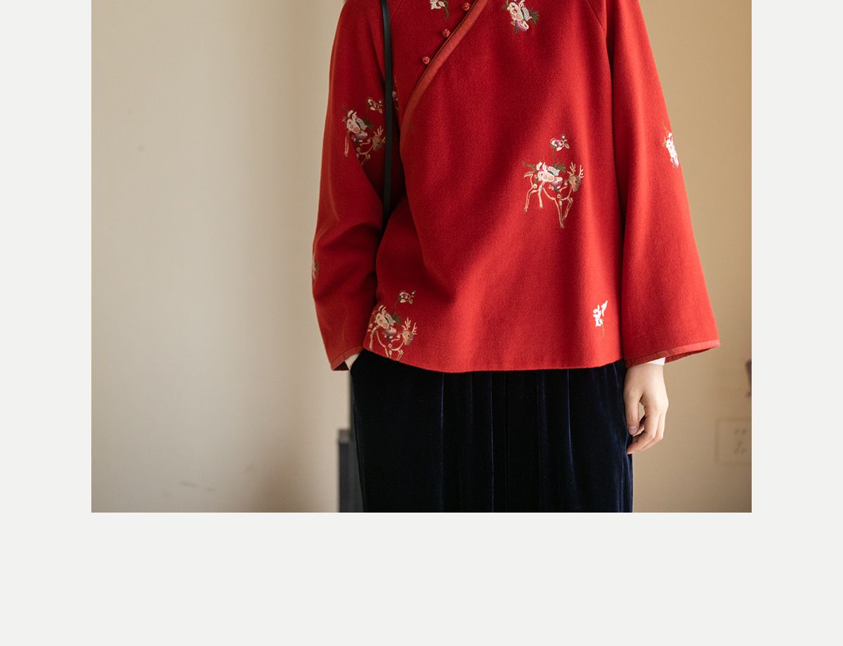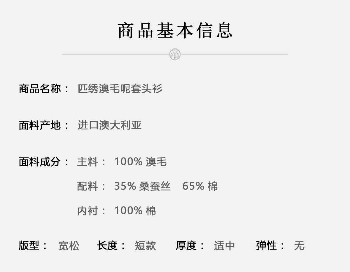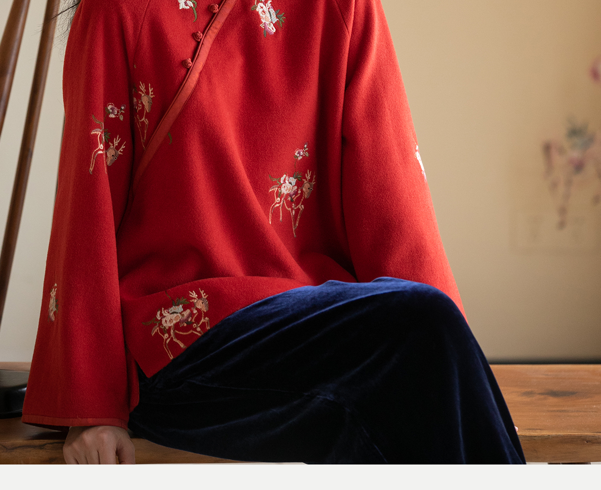 牧衣游原创 匹绣进口澳毛呢套头衫女新款100%羊毛红色上衣 草木香