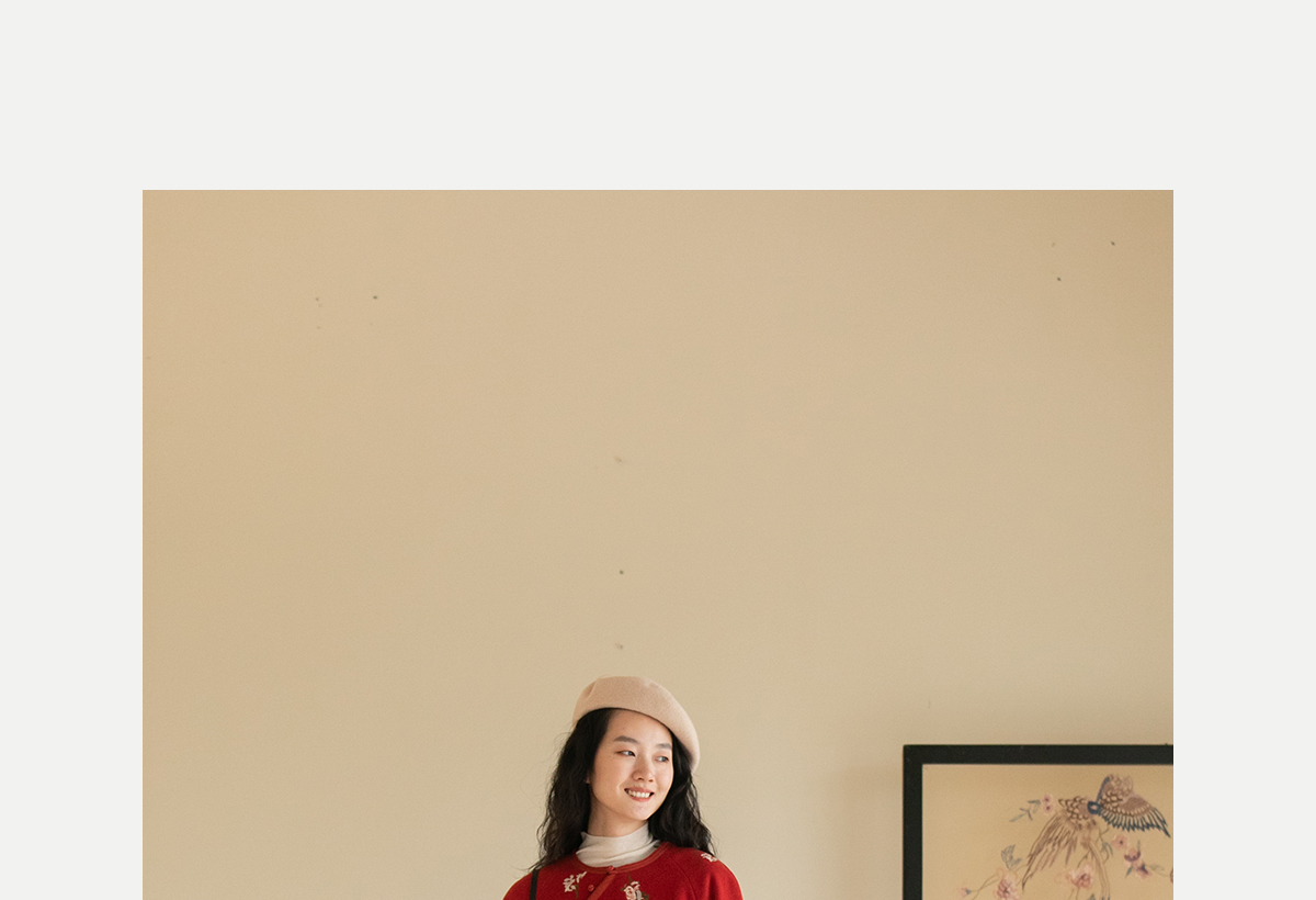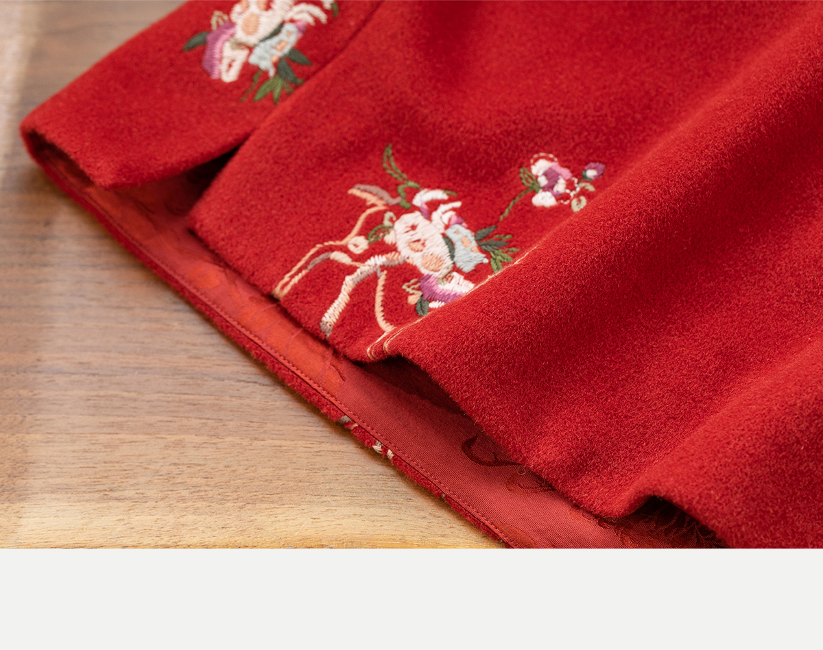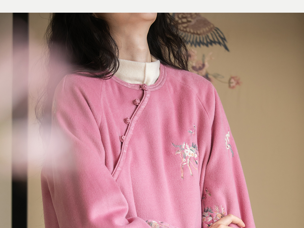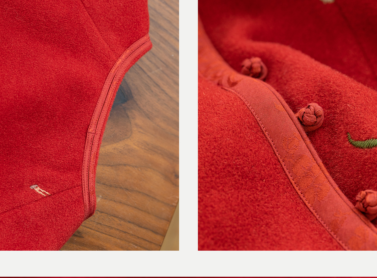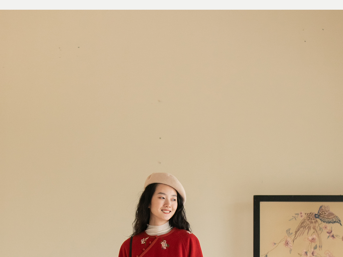 牧衣游原创 匹绣进口澳毛呢套头衫女新款100%羊毛红色上衣 草木香