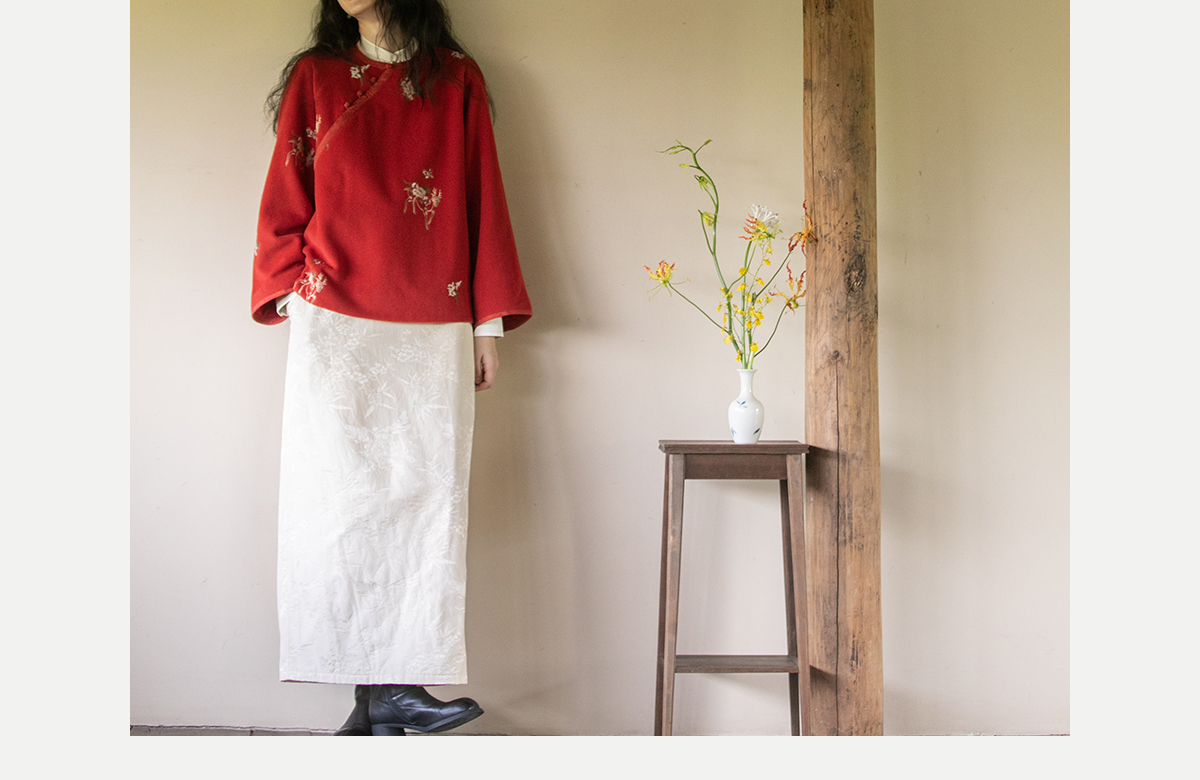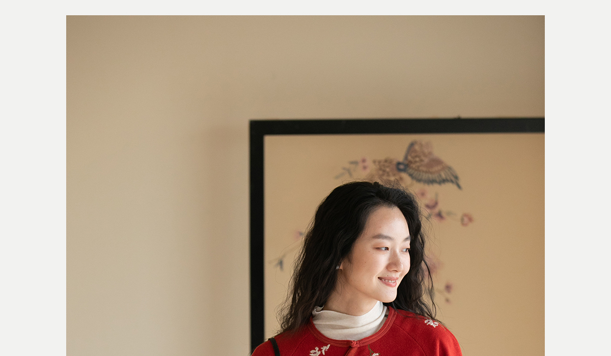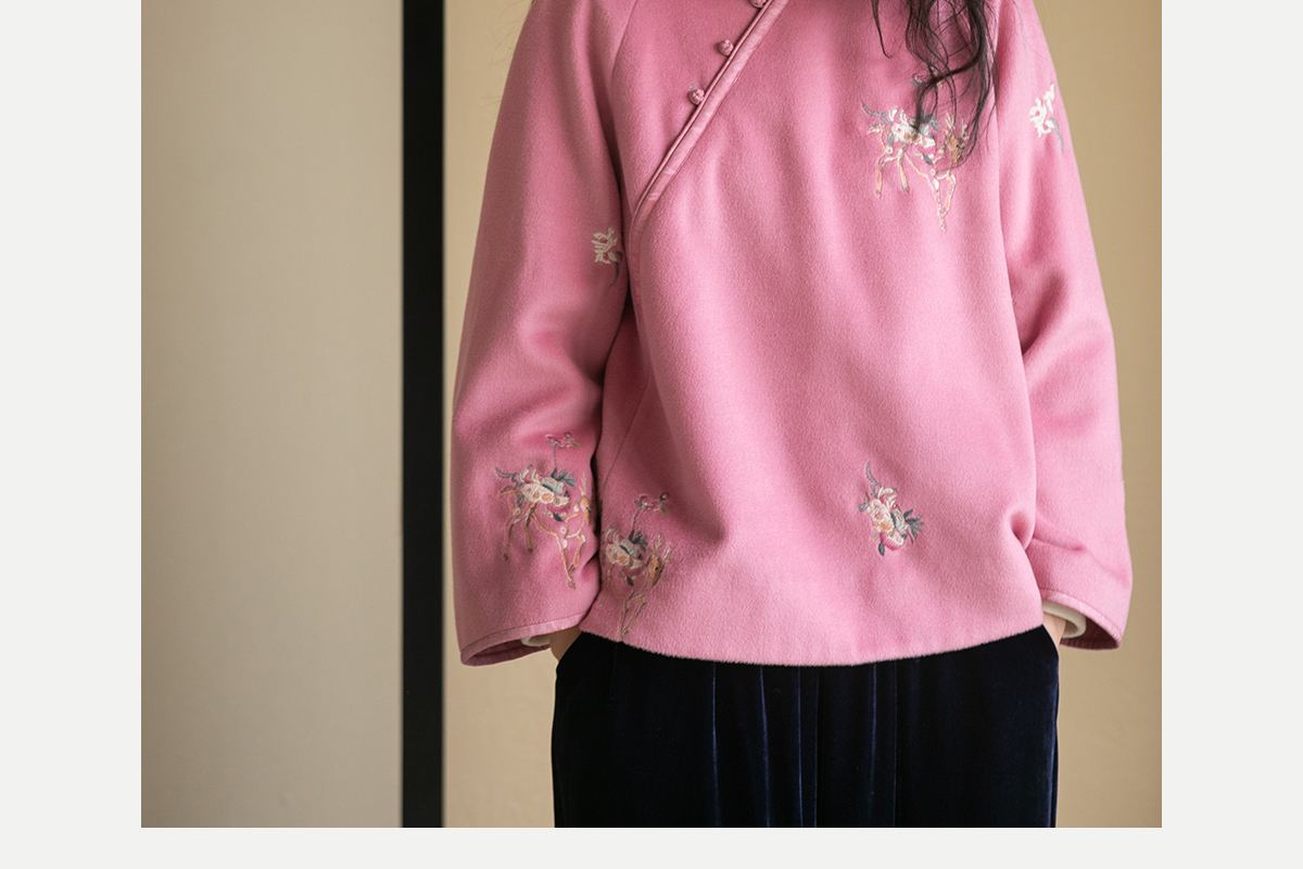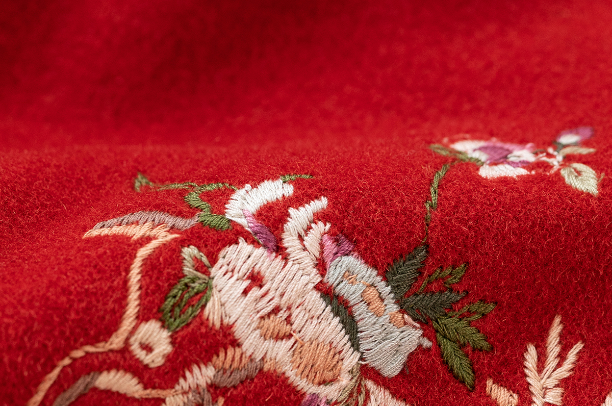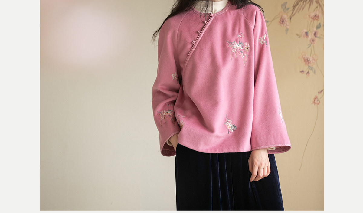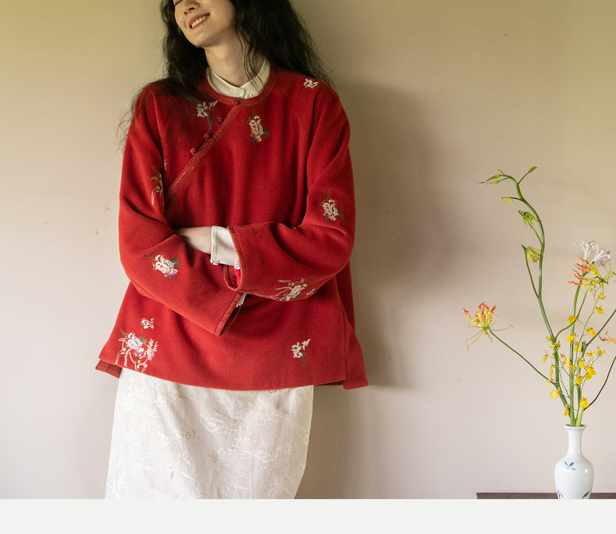 牧衣游原创 匹绣进口澳毛呢套头衫女新款100%羊毛红色上衣 草木香