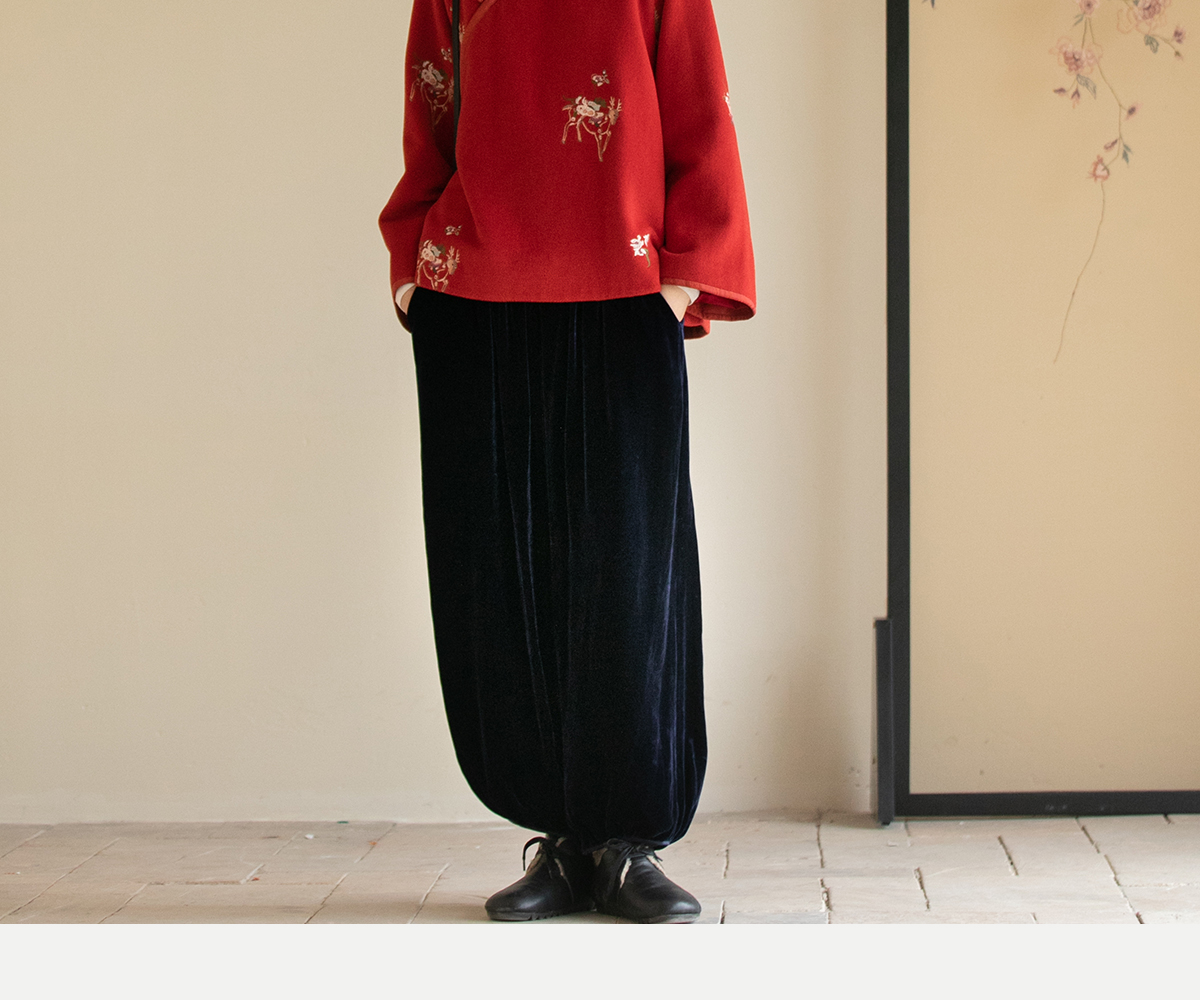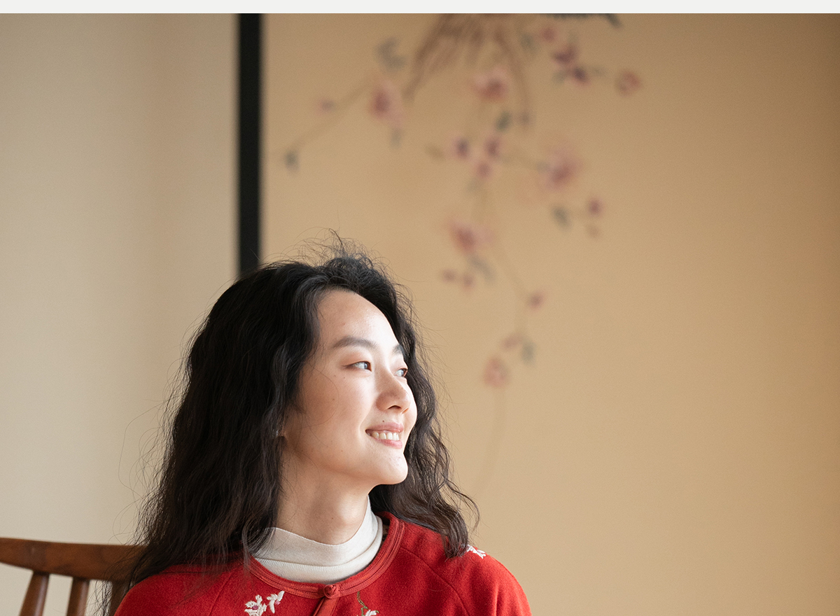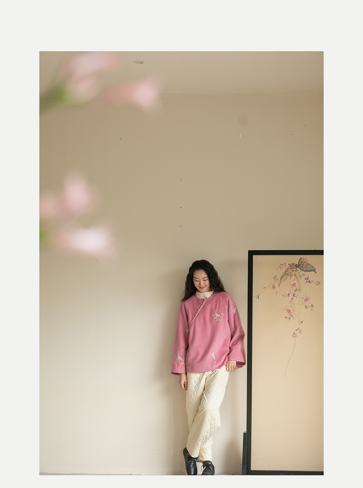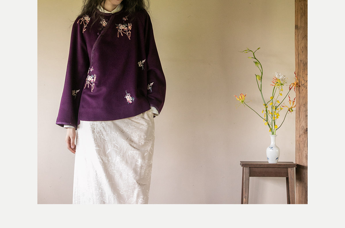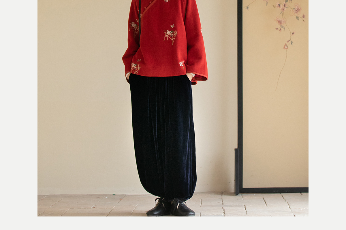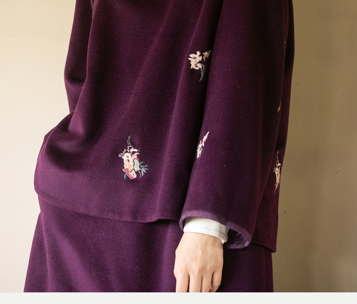 牧衣游原创 匹绣进口澳毛呢套头衫女新款100%羊毛红色上衣 草木香