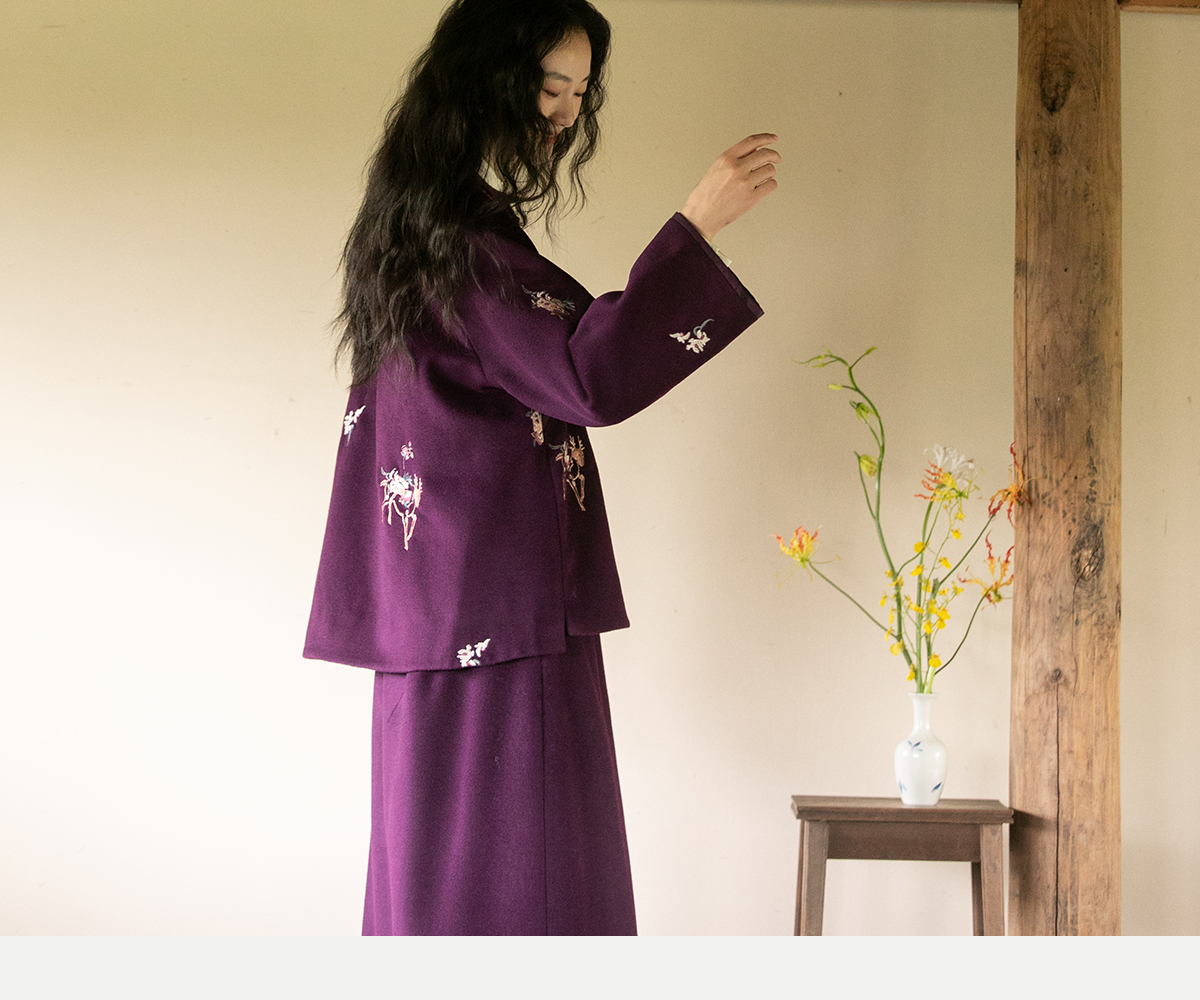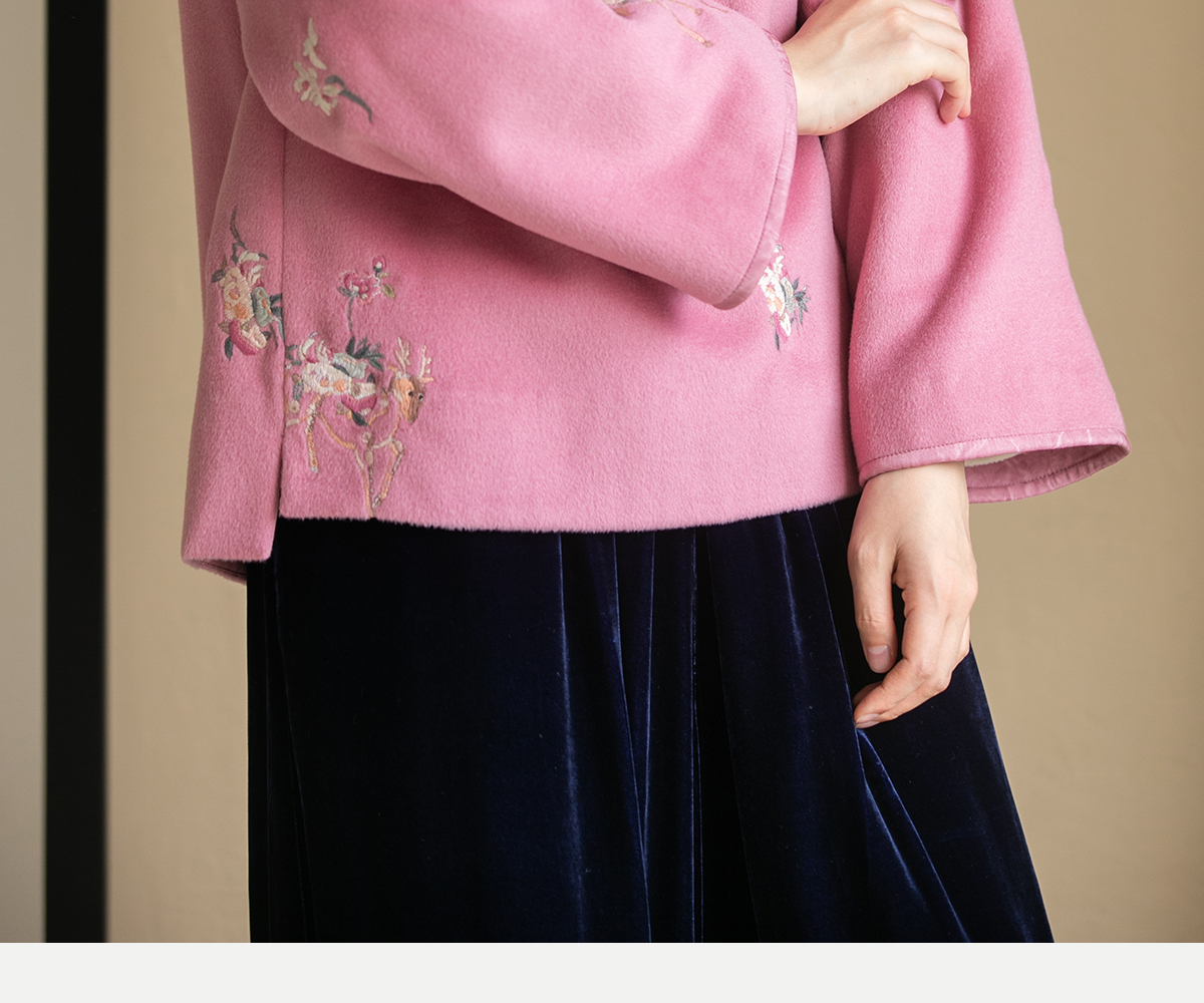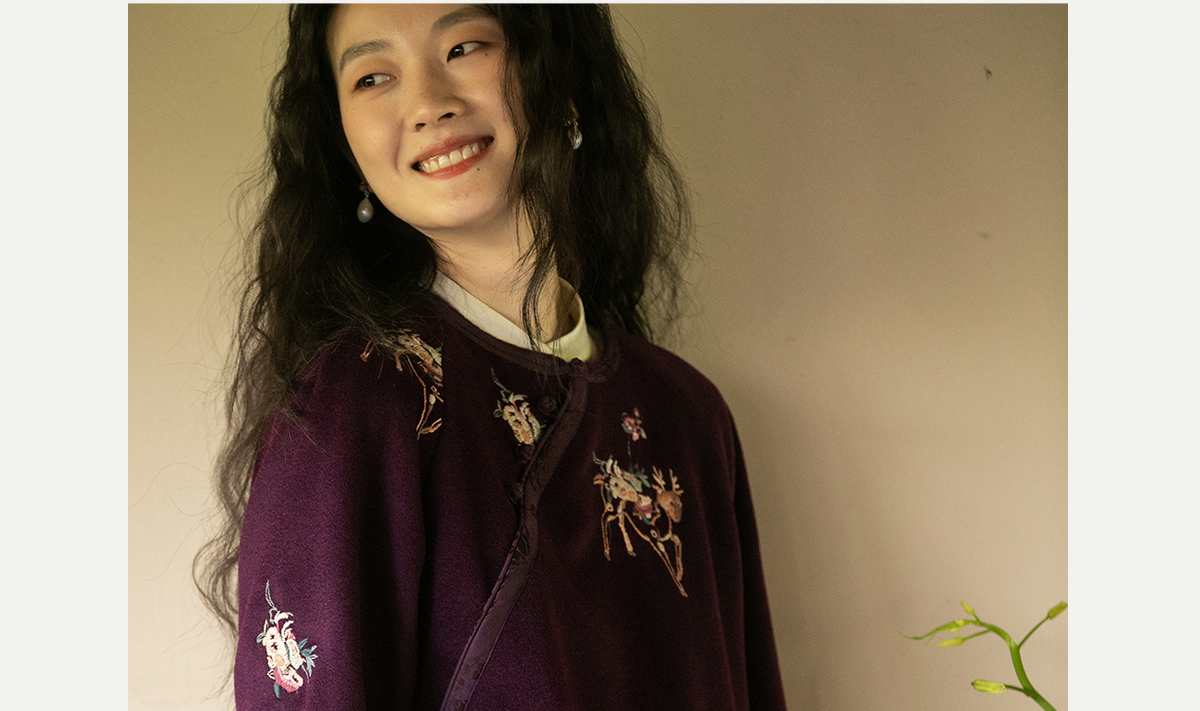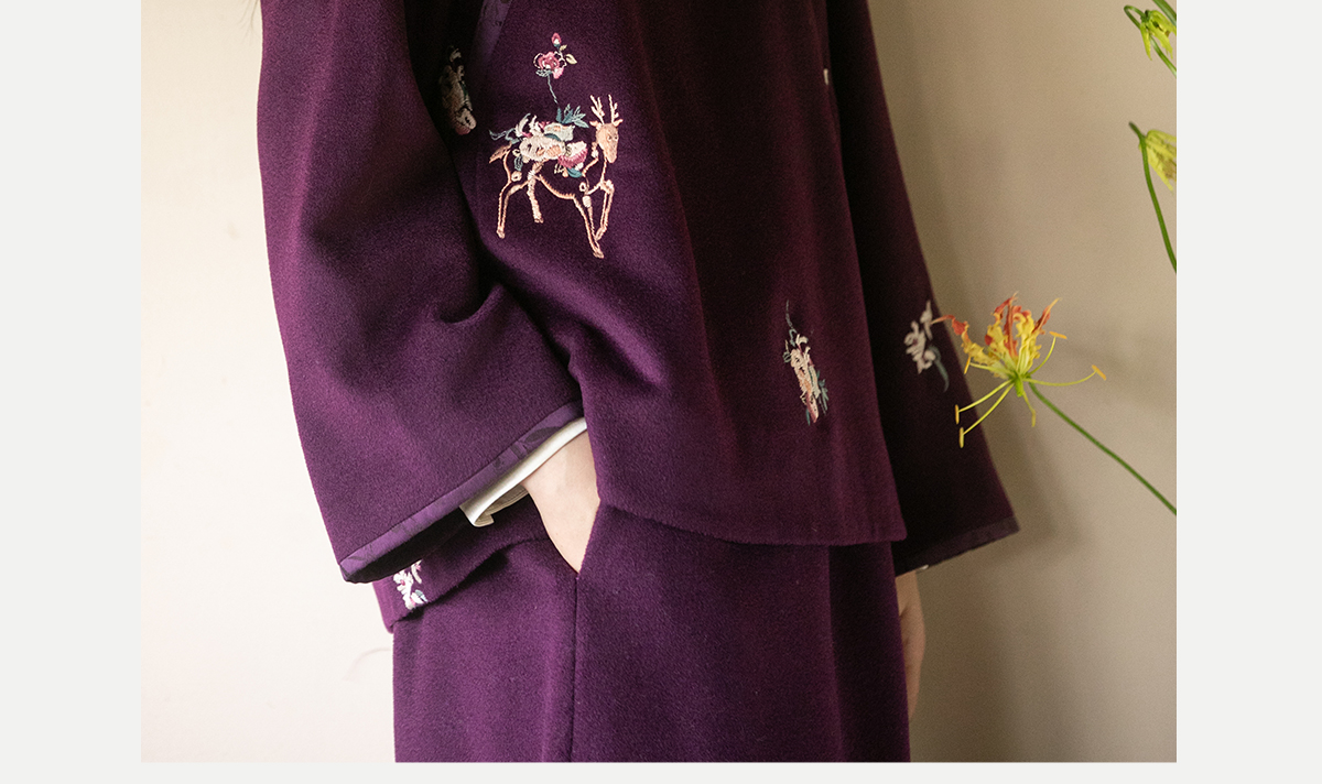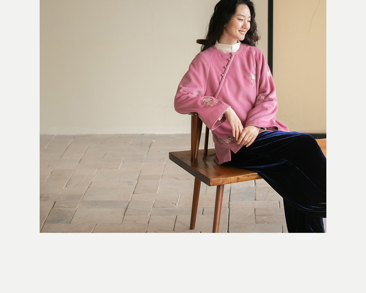 牧衣游原创 匹绣进口澳毛呢套头衫女新款100%羊毛红色上衣 草木香
