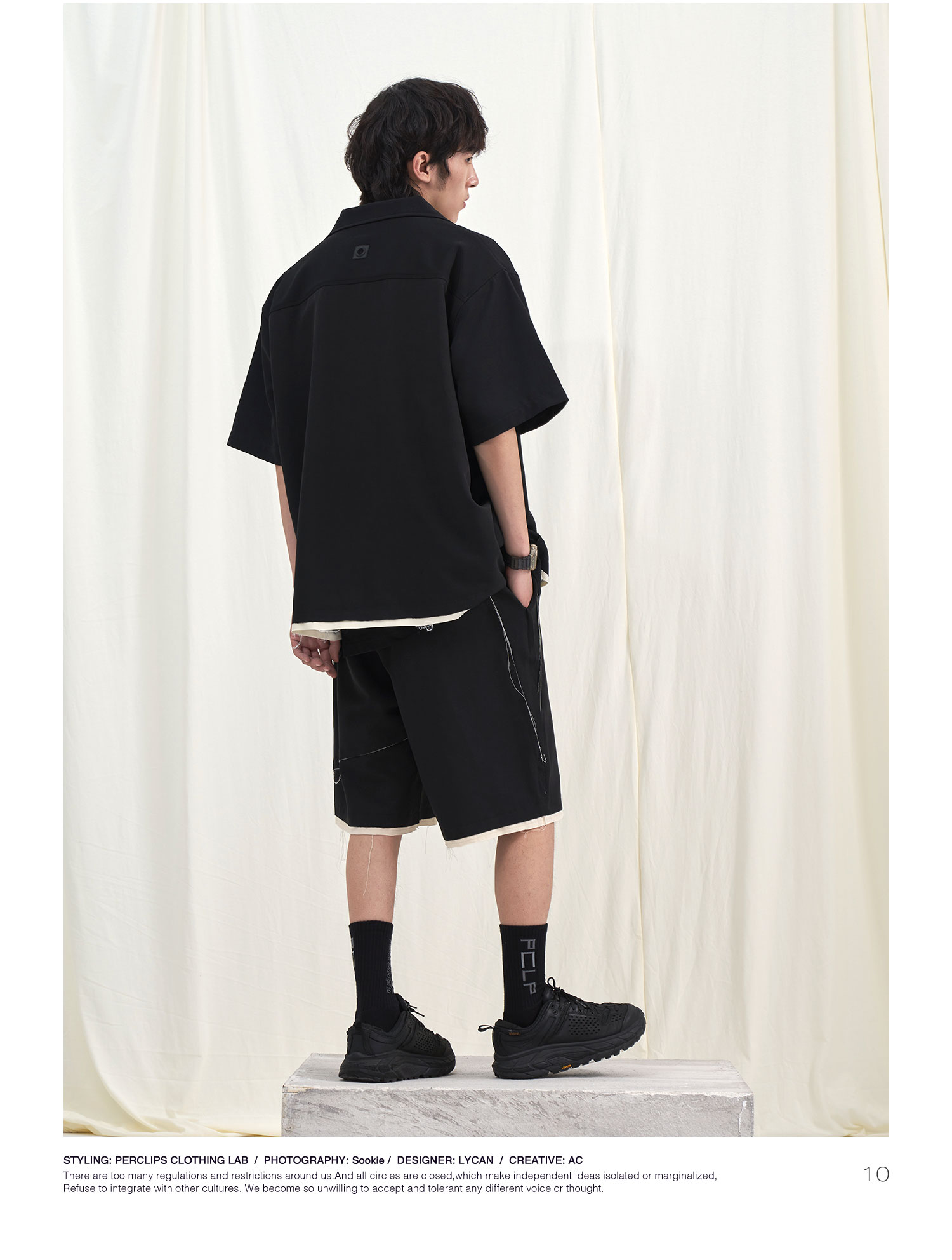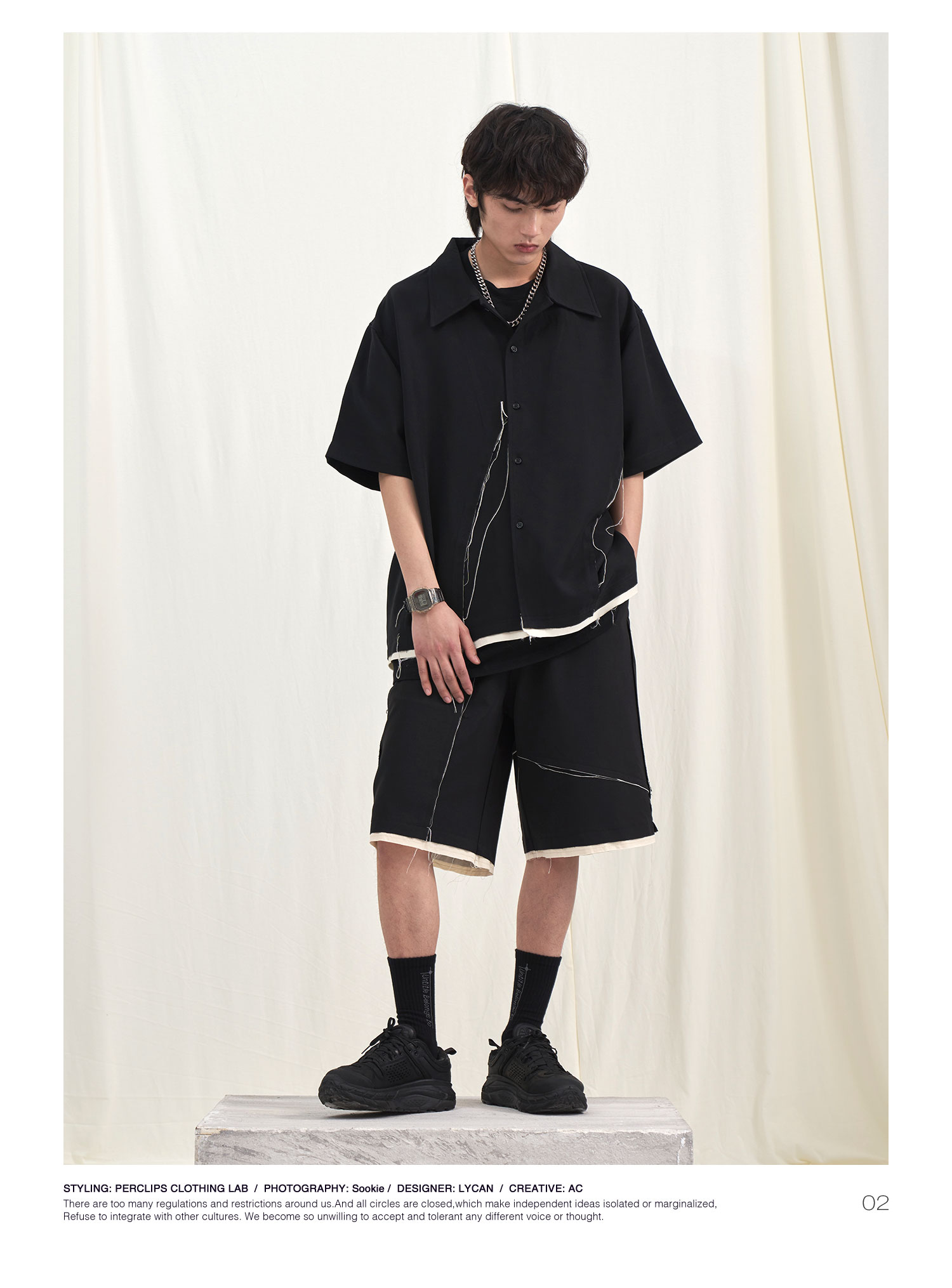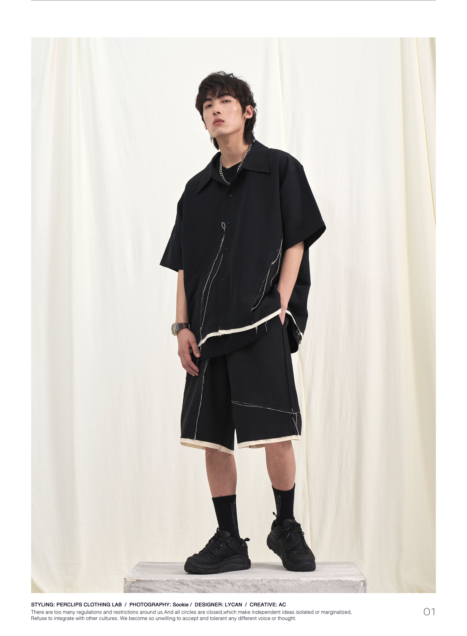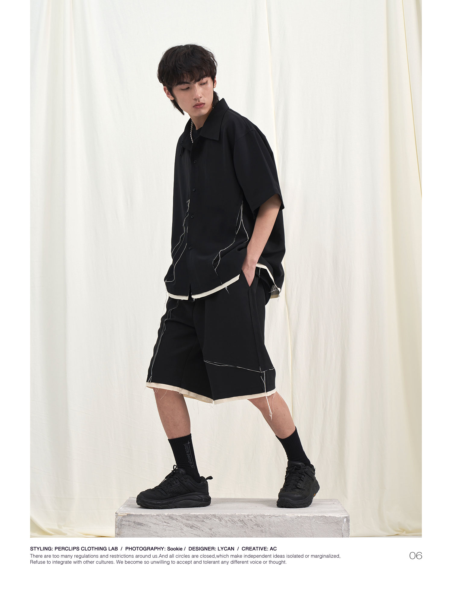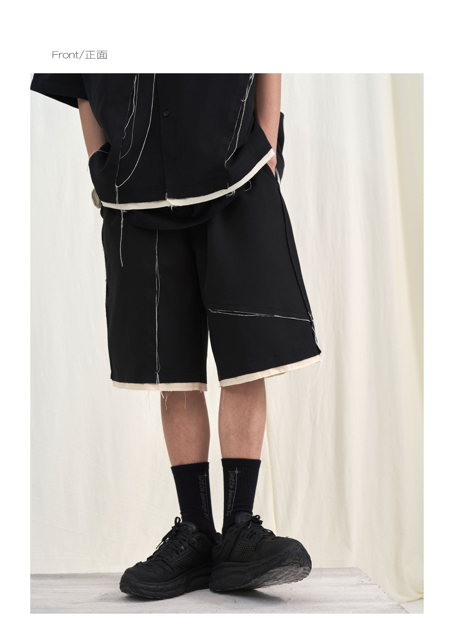 PCLP(PERCLIPS) 毛边破坏休闲短裤夏季国潮流直筒休闲五分裤男