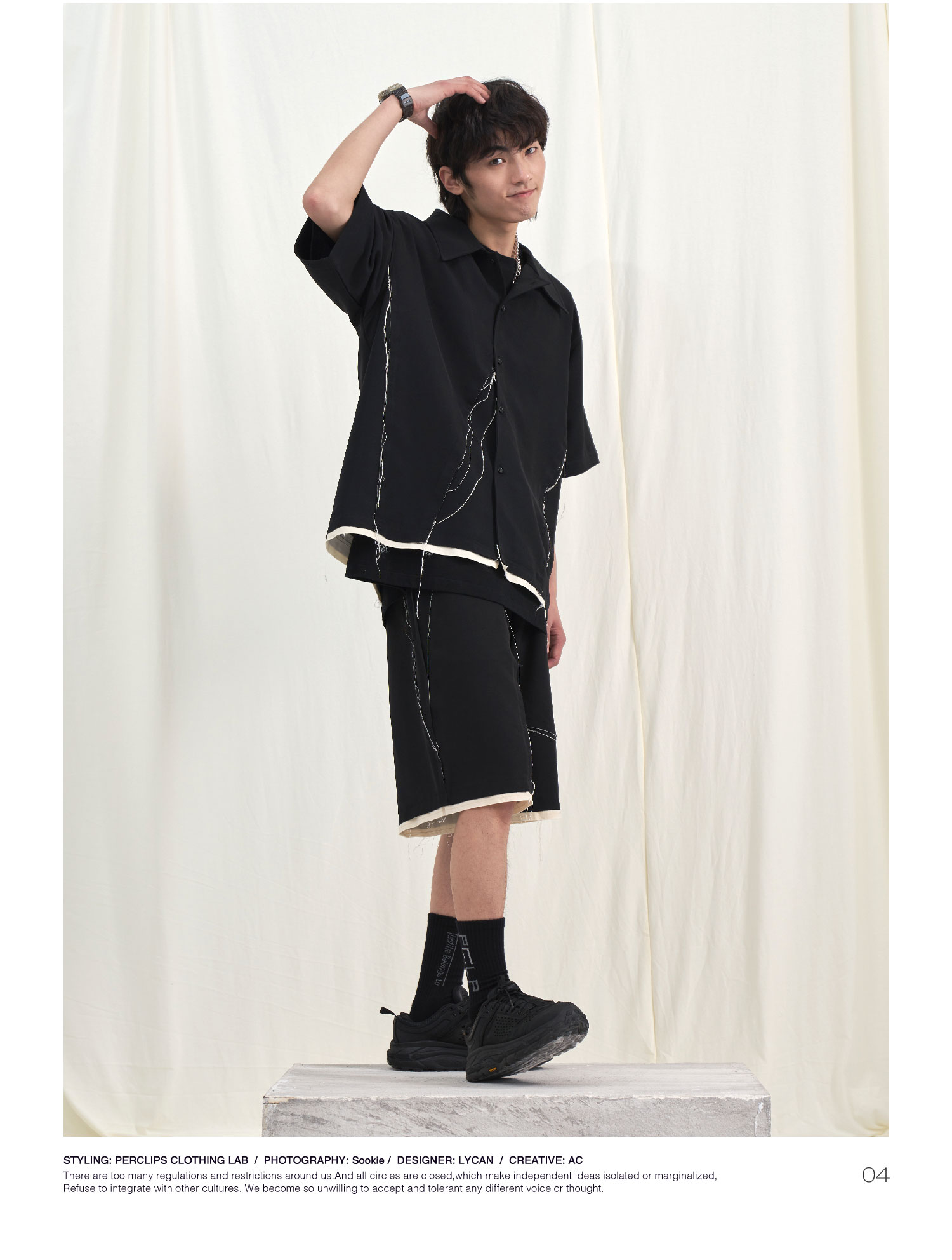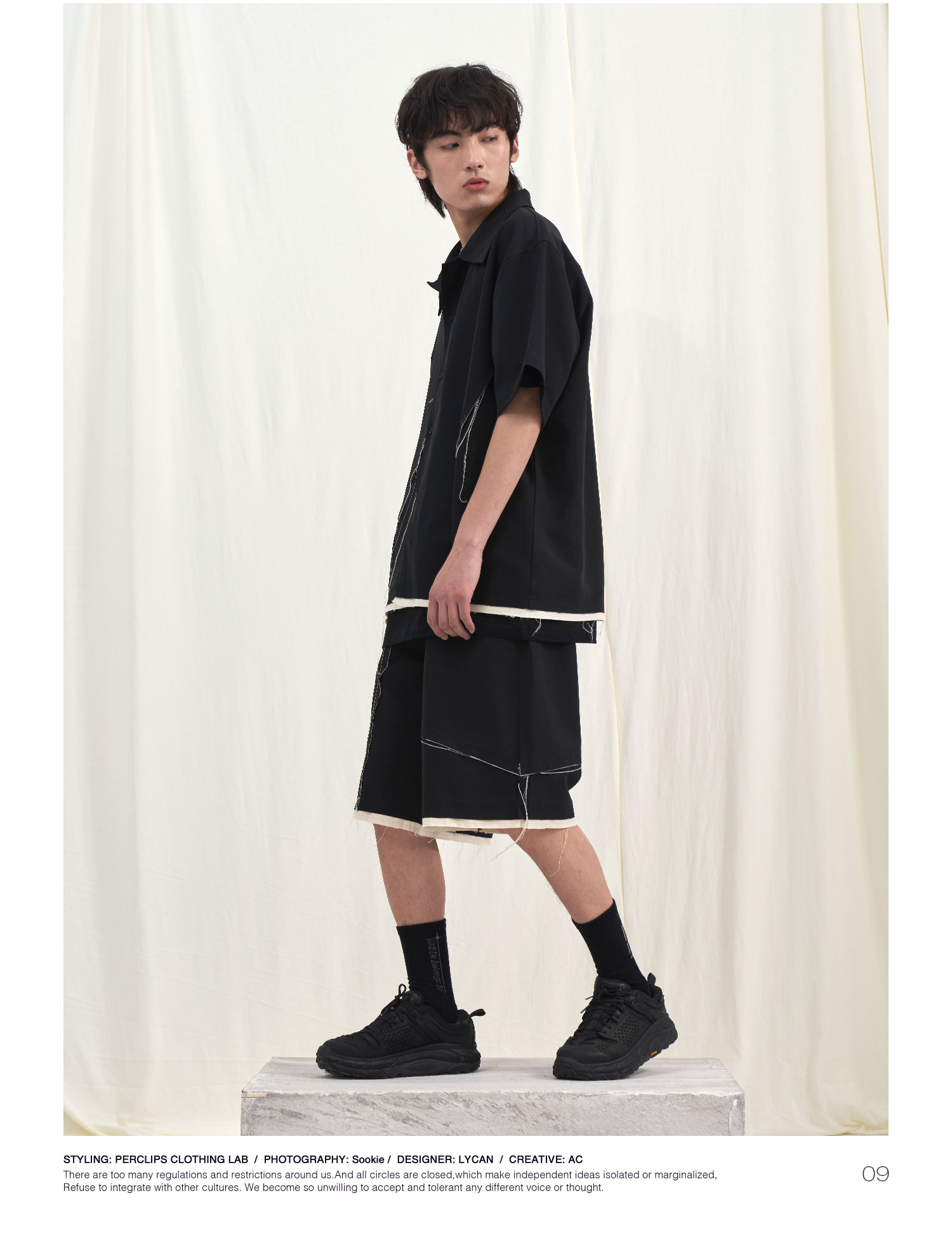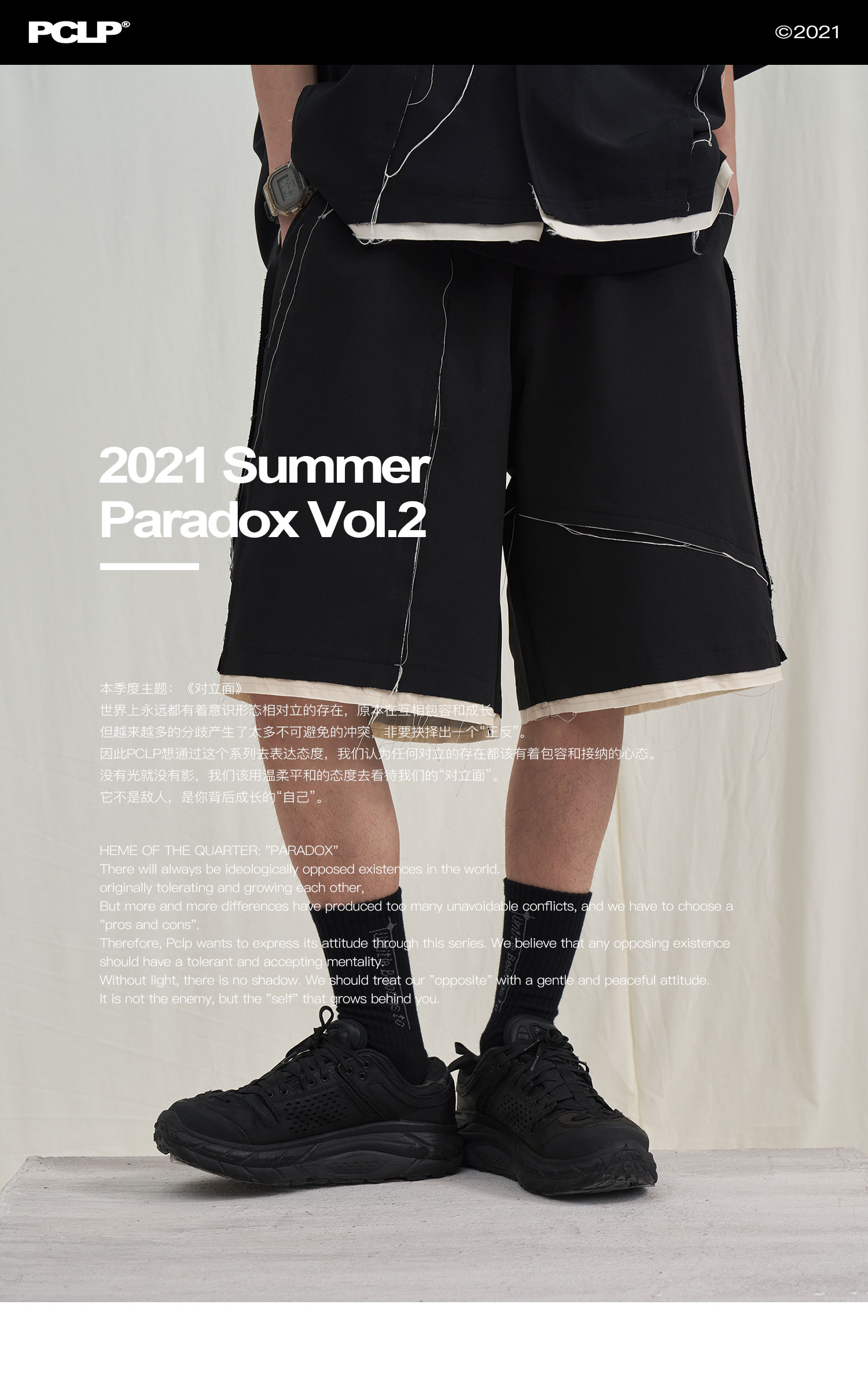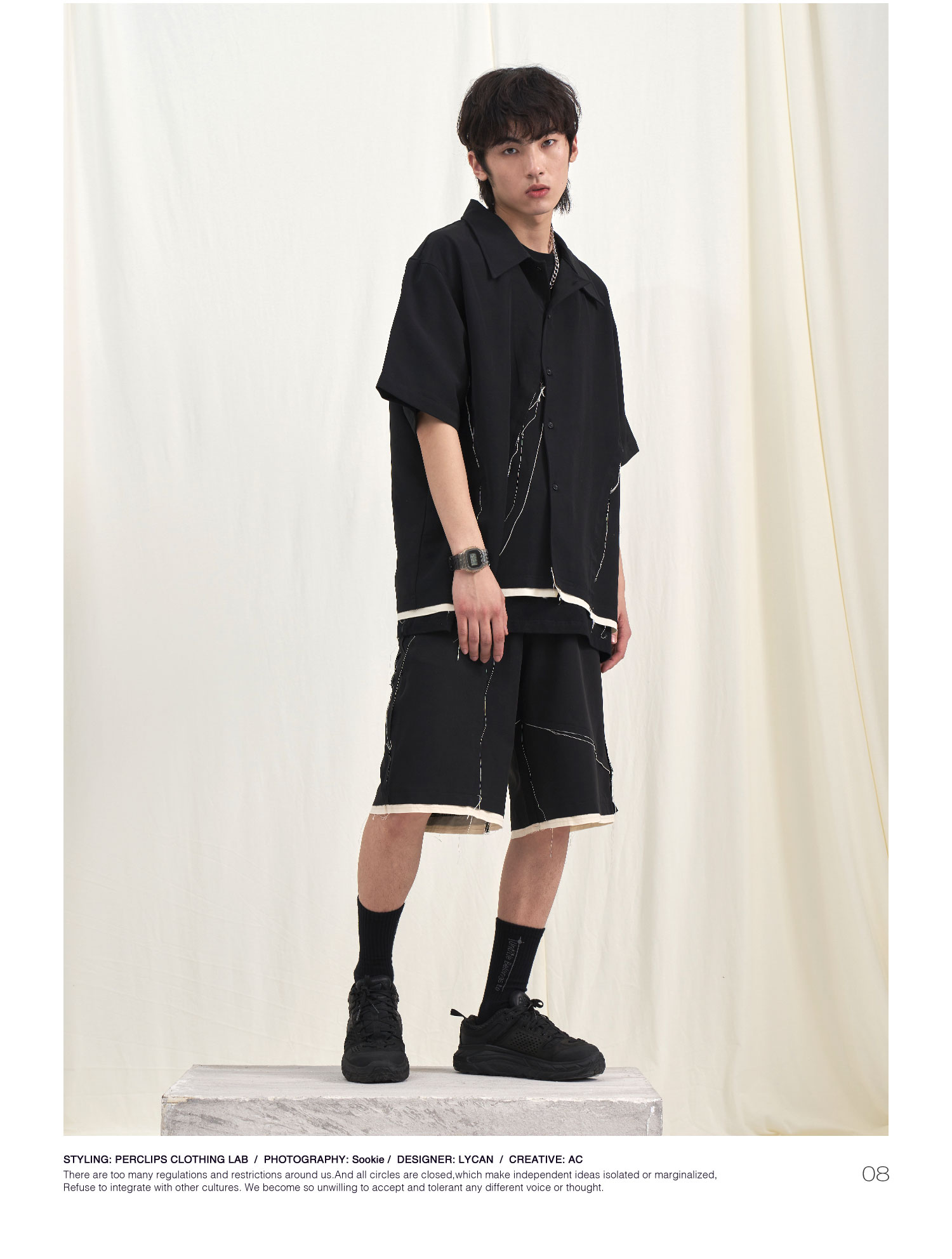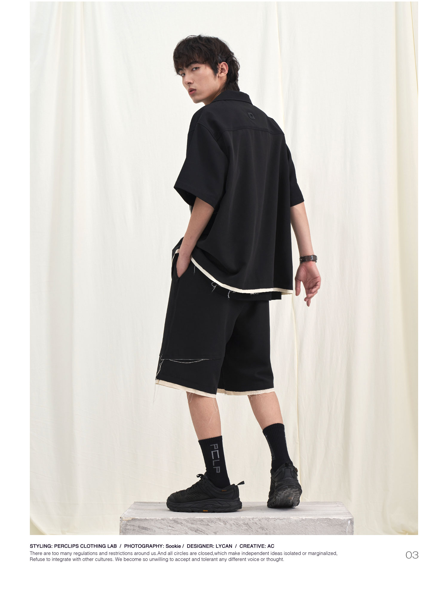 PCLP(PERCLIPS) 毛边破坏休闲短裤夏季国潮流直筒休闲五分裤男