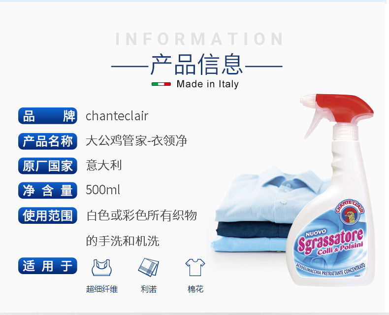 OC【中欧班列3瓶】ON 意大利衣领净 原装进口大公鸡管家衣领净去污喷剂去黄500ml