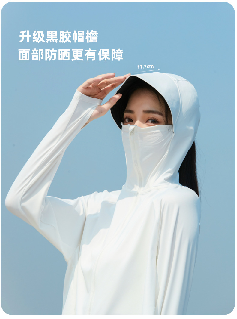 2024新款黑胶帽檐防晒衣女士冰丝连帽透气外套防紫外线防晒服