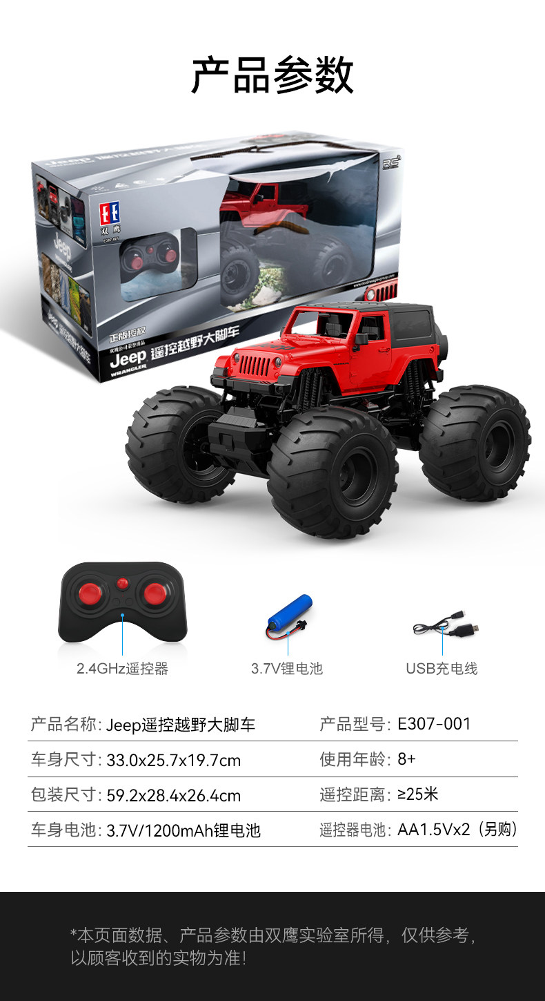 双鹰Jeep正版授权遥控越野车玩具车1:14耐磨大脚车男孩新年礼物