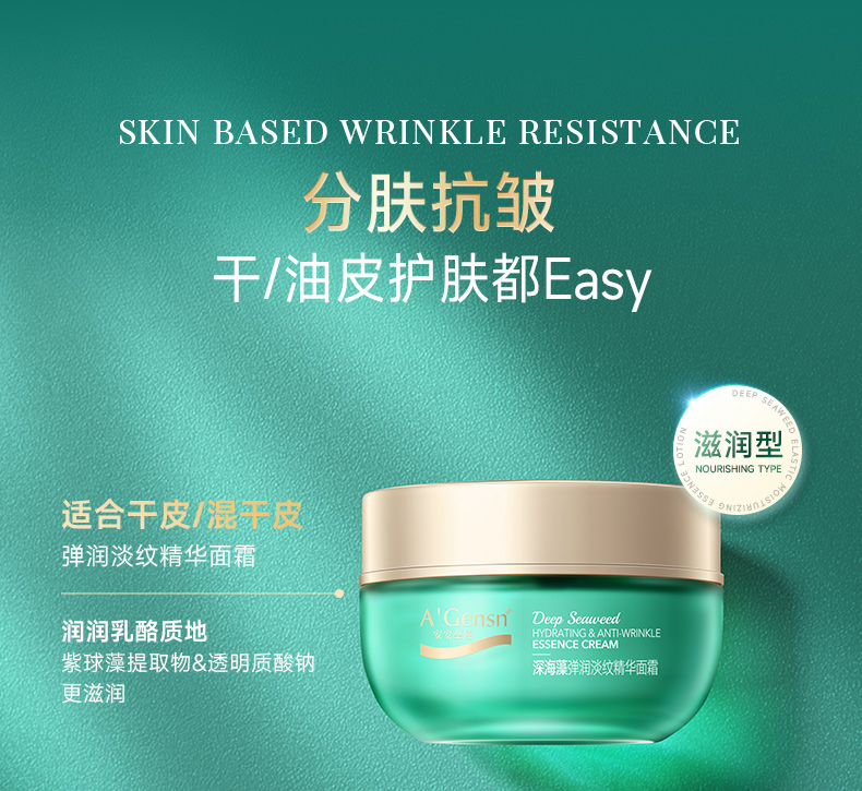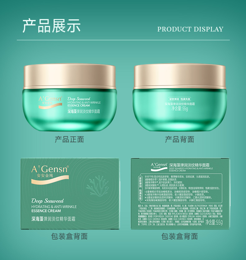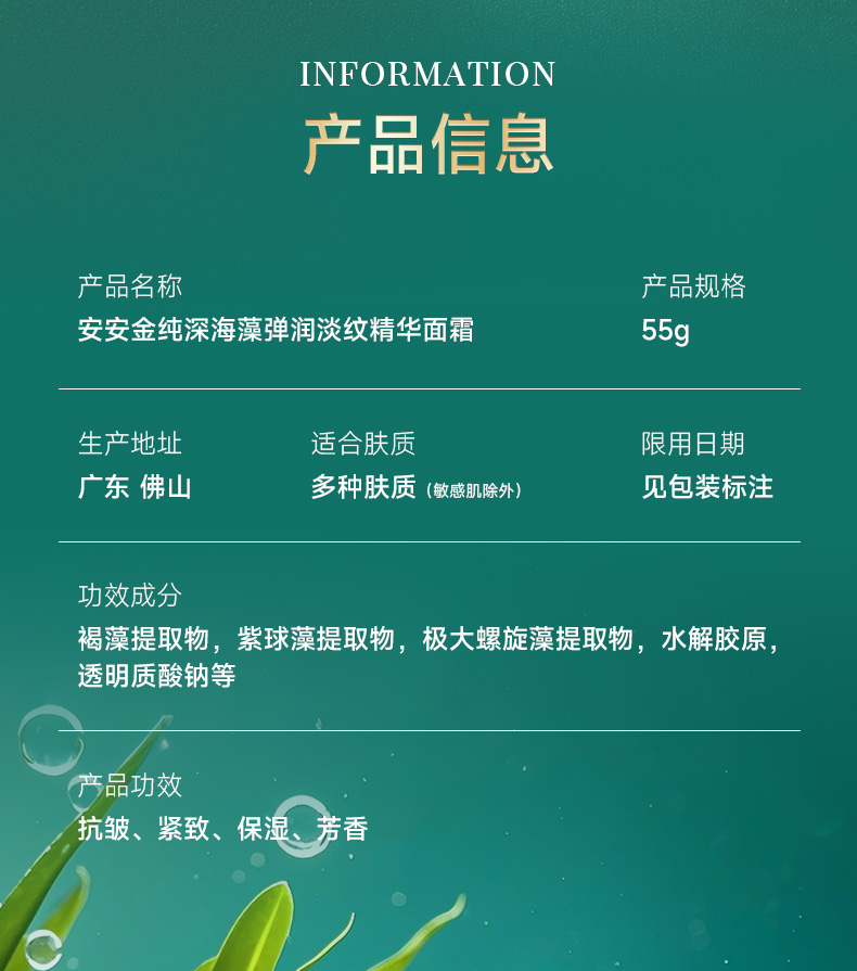 安安金纯深海藻弹润淡纹精华面霜55g【龙菲精选】