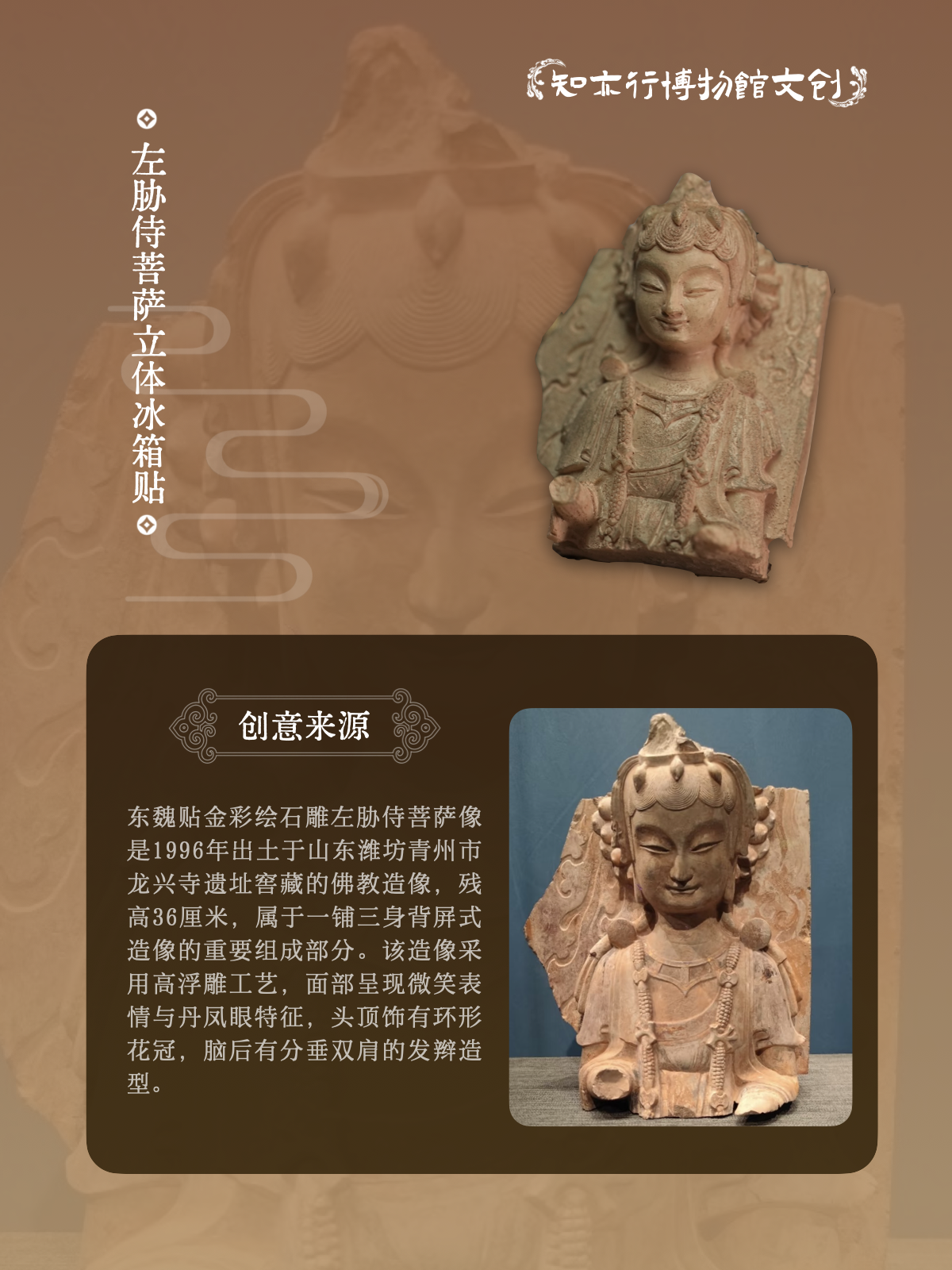 青州微笑左胁侍菩萨立体冰箱贴龙兴寺造像文创博物馆纪念品磁吸