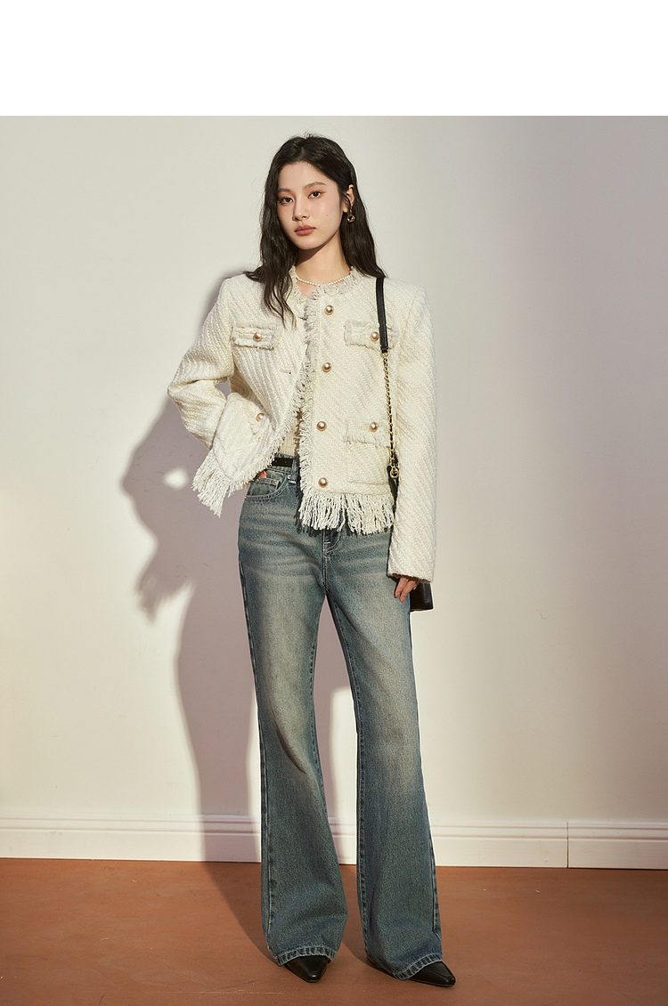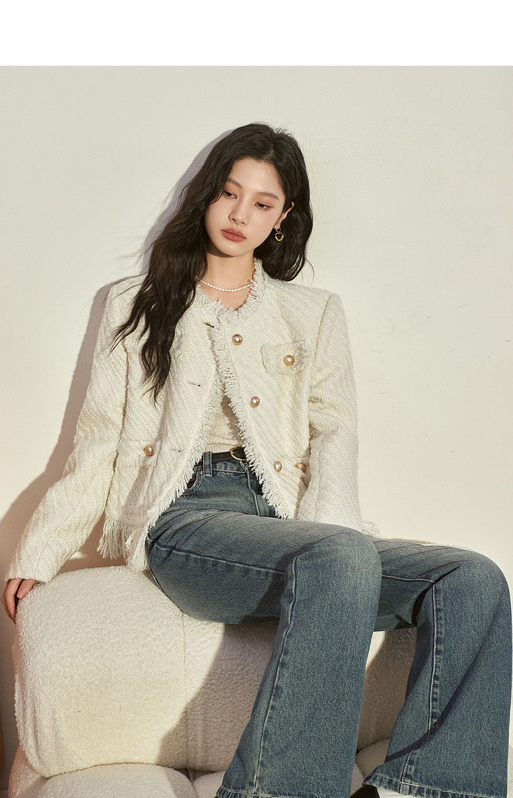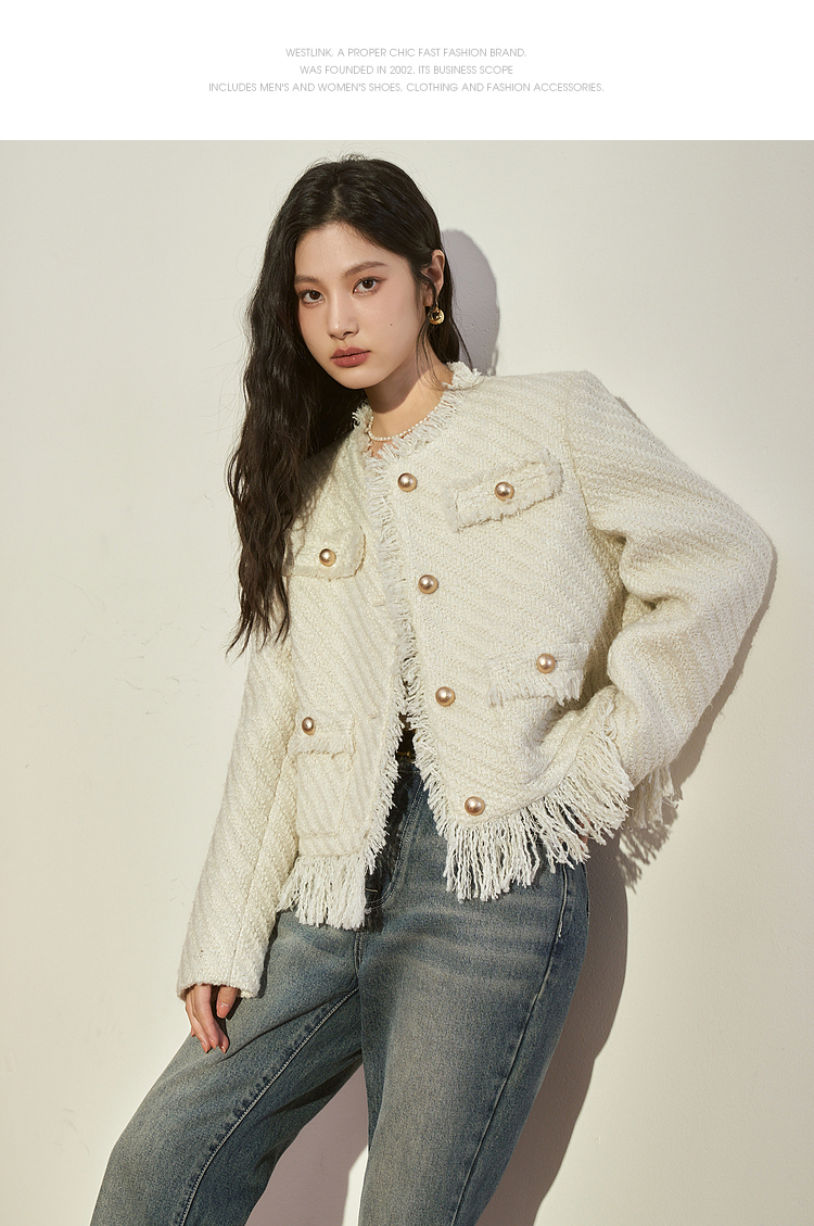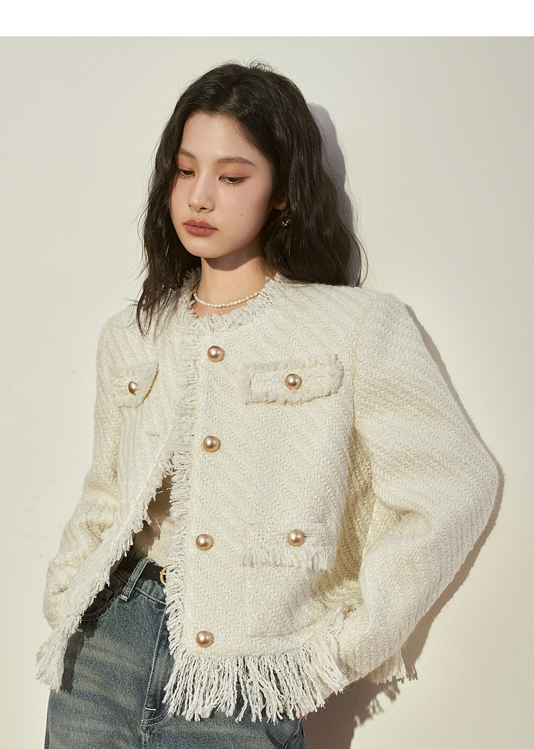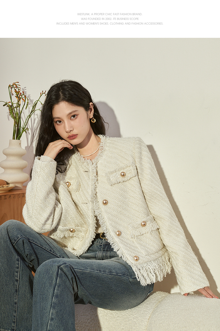西遇法式气质小香风外套女秋冬新款高级感短款百搭针织上衣D2238706