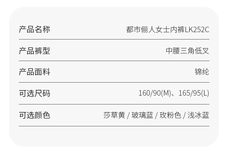 都市丽人时尚系列薄透丝滑锦泳三角低叉女士内裤LK252C