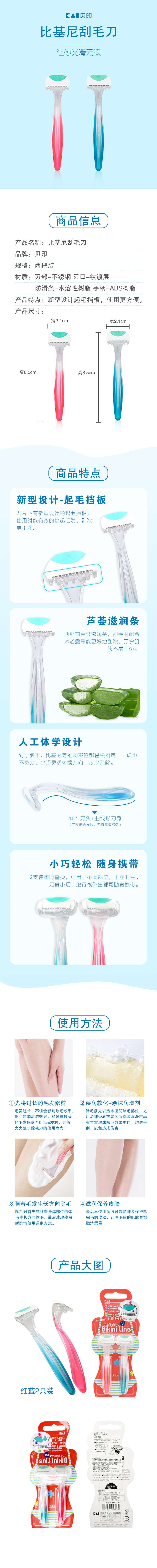 贝印女用剃刀比基尼T型2支装 迷你剃刀刮刀腋下腿毛女士用安全型全身剃毛刀