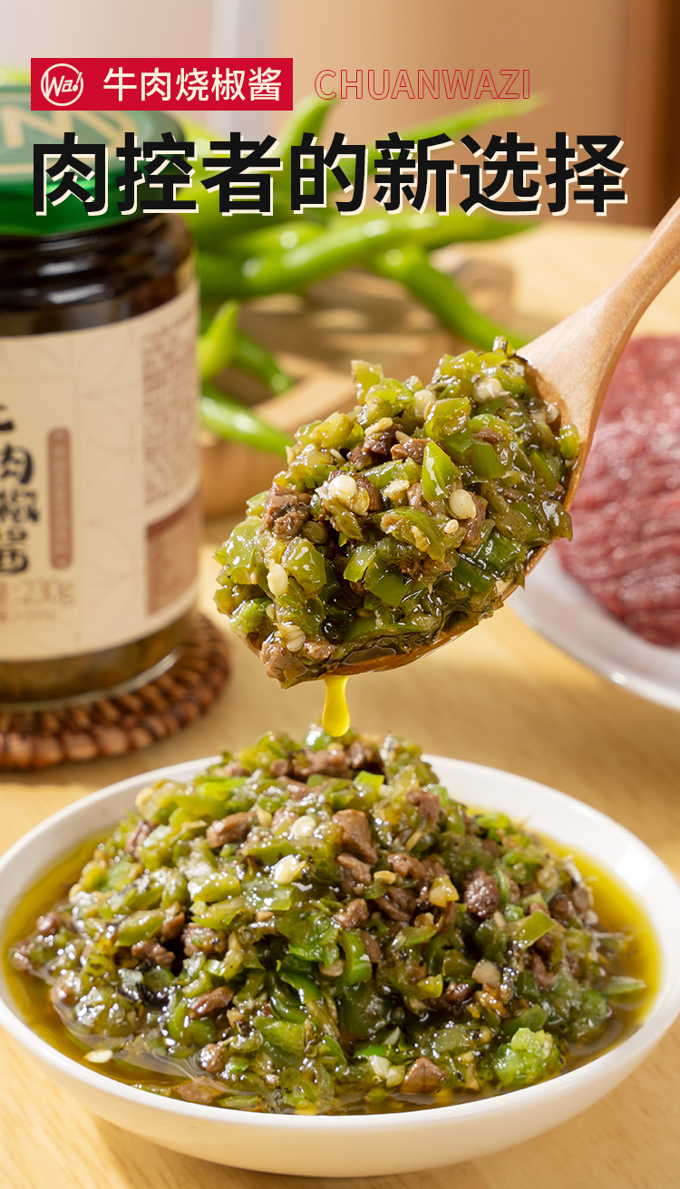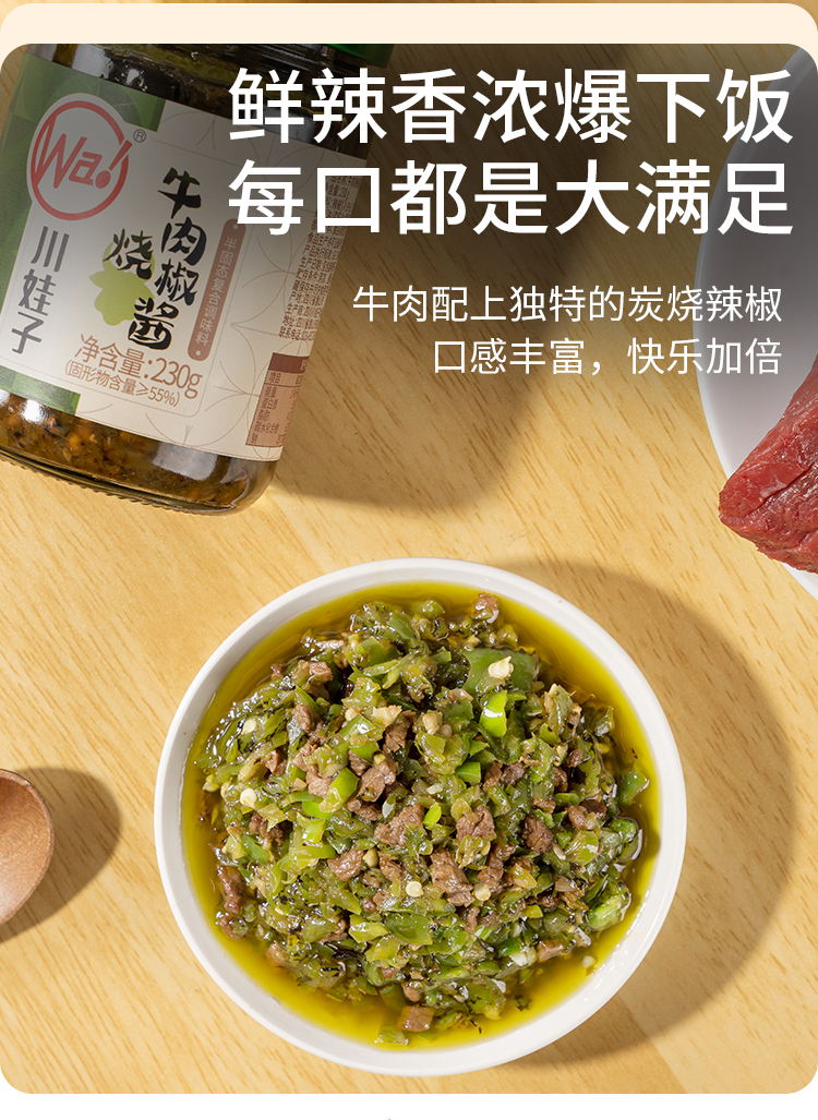 川娃子烧椒牛肉酱230g*2瓶 四川特产调味品 下饭菜拌饭拌面酱 辣椒酱 辣酱 调味酱