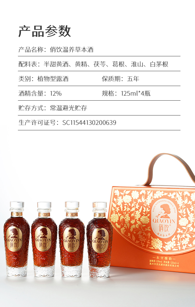 俏饮mini 小芳韵温养草本酒四瓶手提礼盒装125ml*4瓶12度女士酒