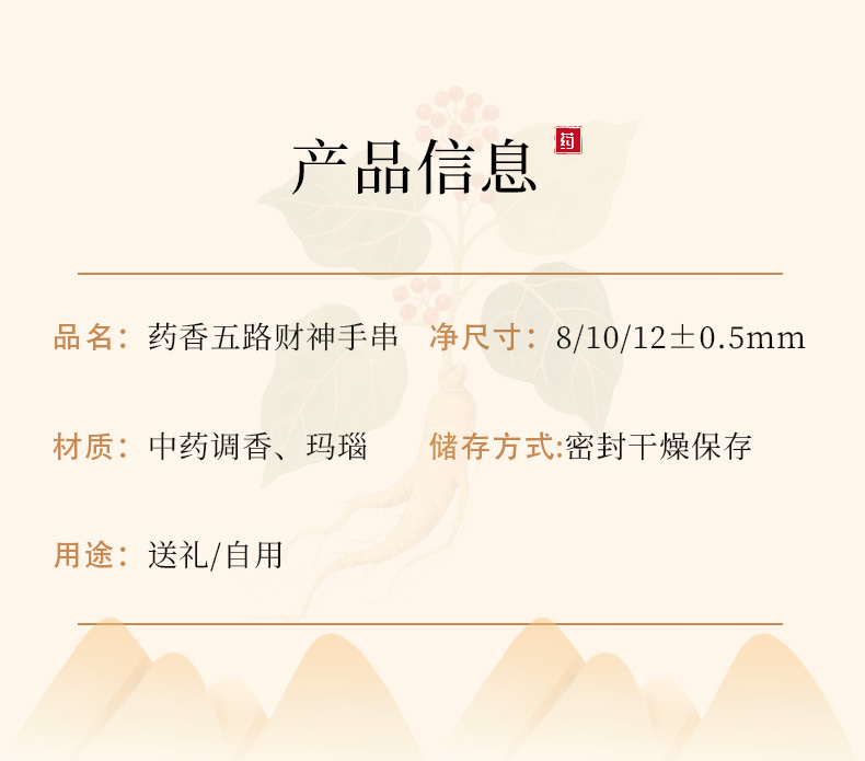 药香五路财神手串径山文创*坤宁和堂双联名合香珠精致送礼