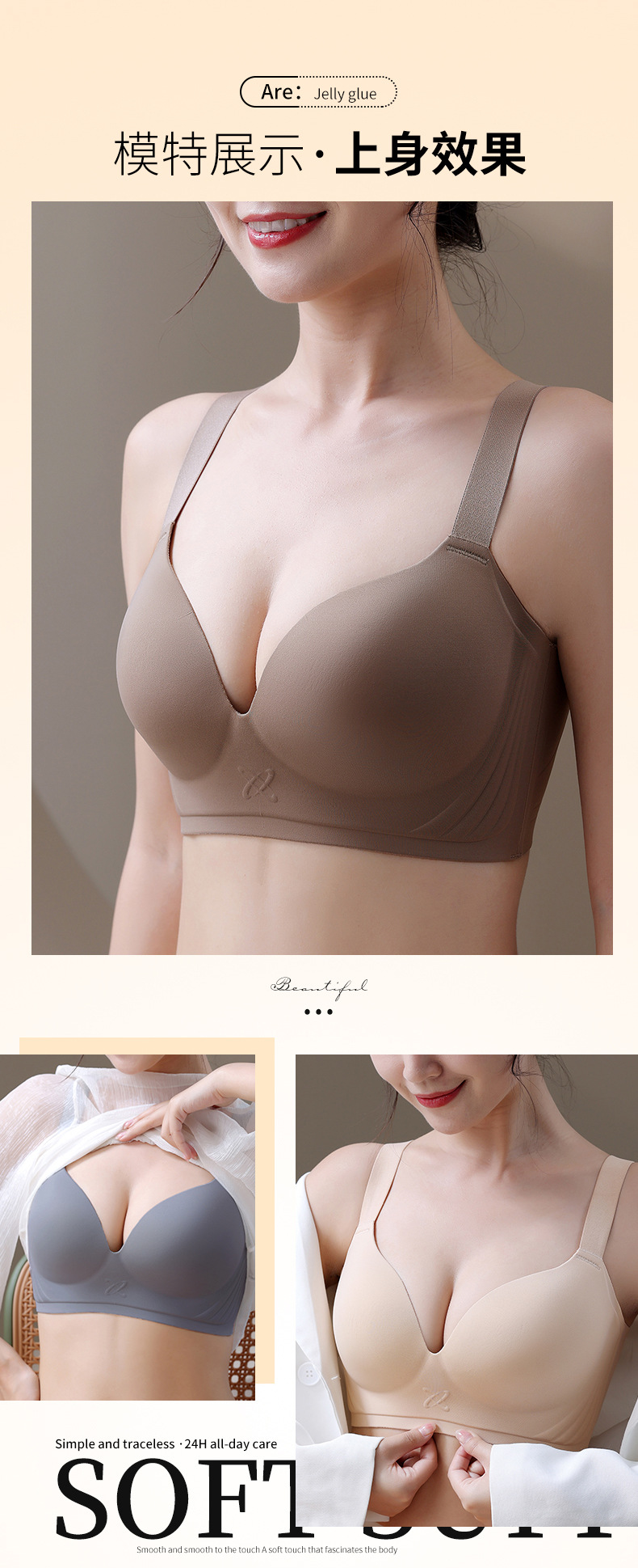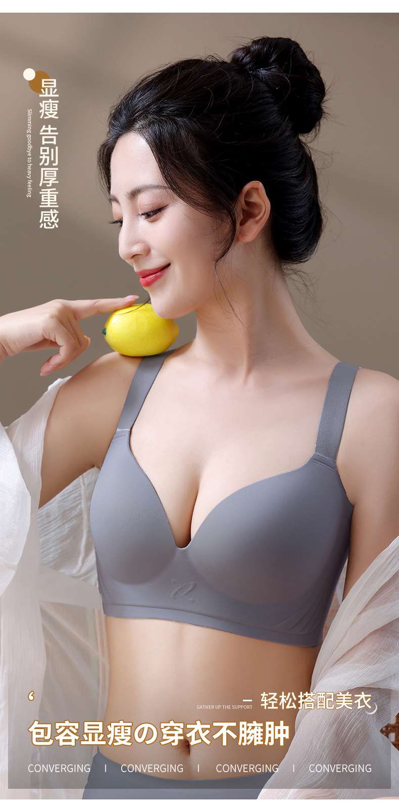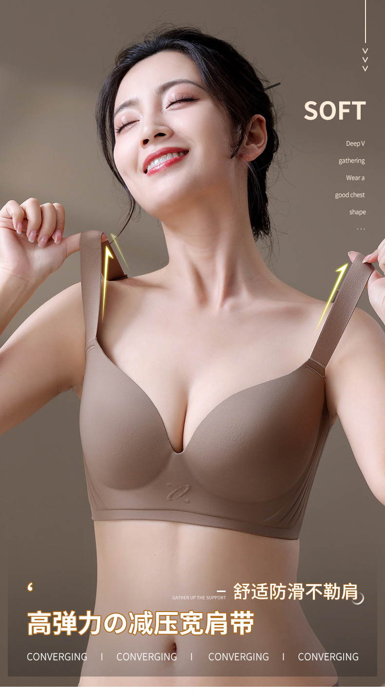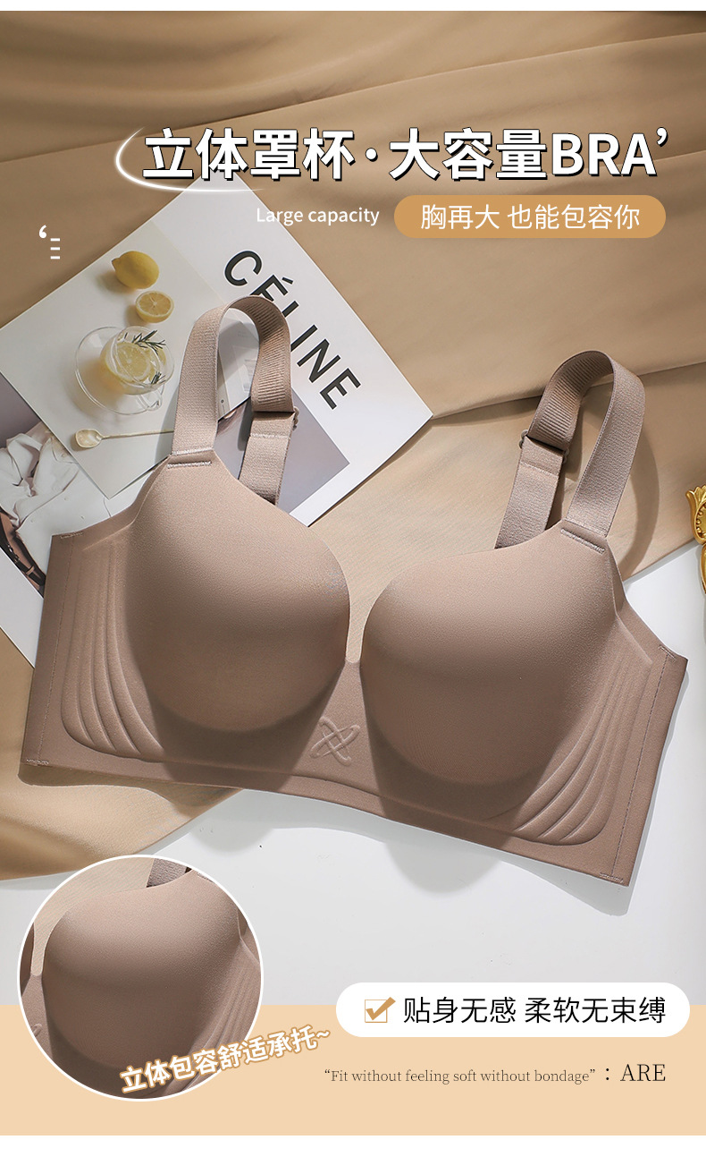 大胸专用E杯大码光面无痕内衣女大胸显小收副乳防下垂薄款聚拢调整型文胸乳罩