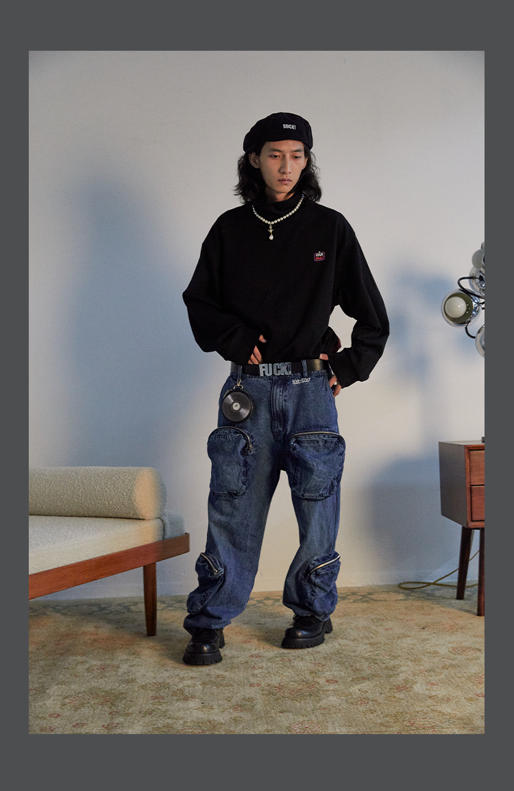 POH「怪物骑士」 拉链开叉宽松上衣服可拆卸面罩刺绣摇粒绒卫衣男