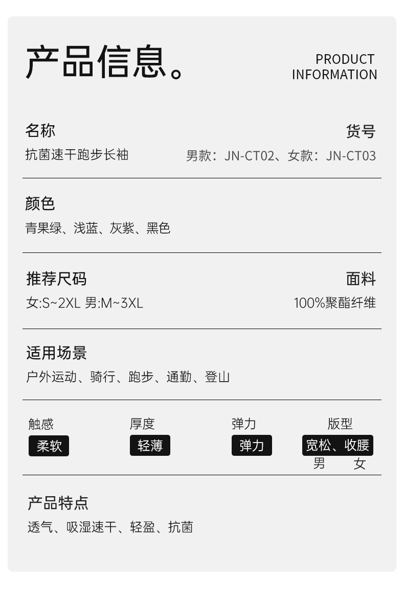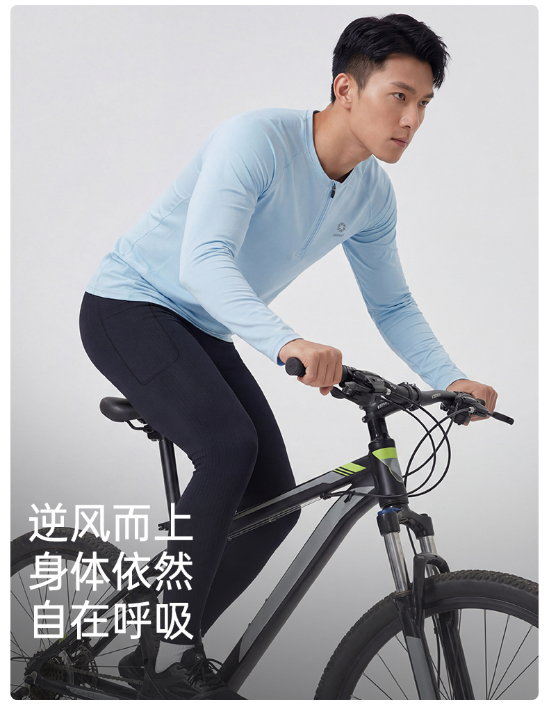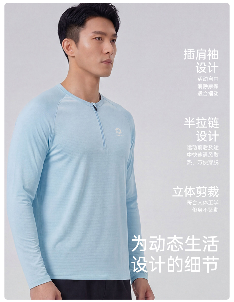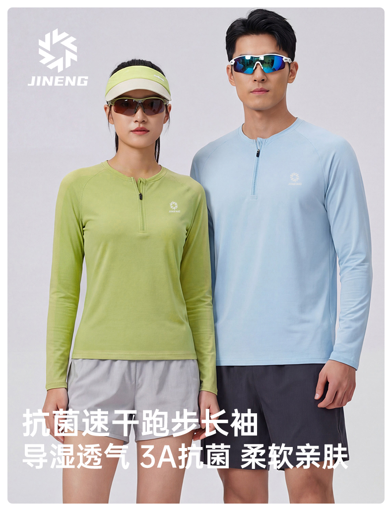 积能春季新款男女半拉链速干透气轻盈户外跑步运动长袖
