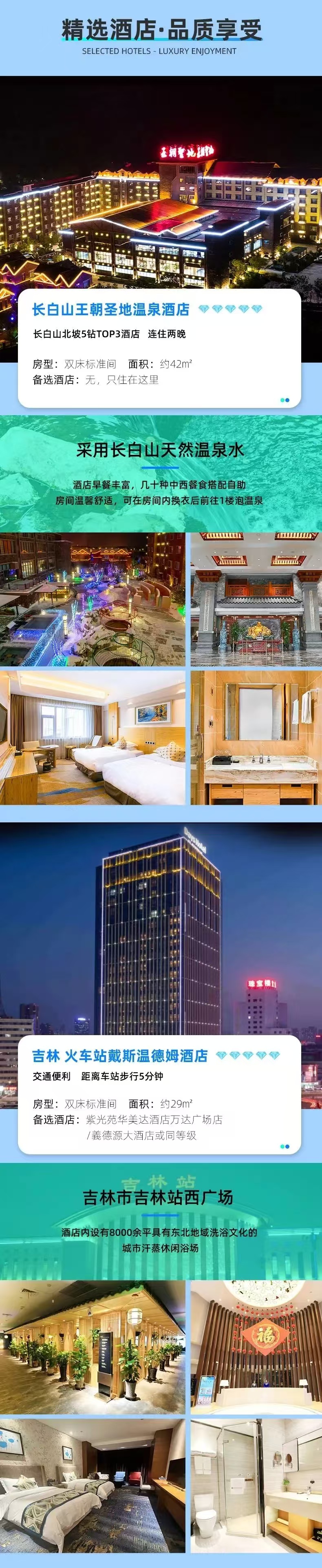 7.长白山天池倒站车:由于冬季长白山风雪天气较多,费用中不含长白山景区内换乘处至天池路段倒站车,如有需求请自理,价格80元。