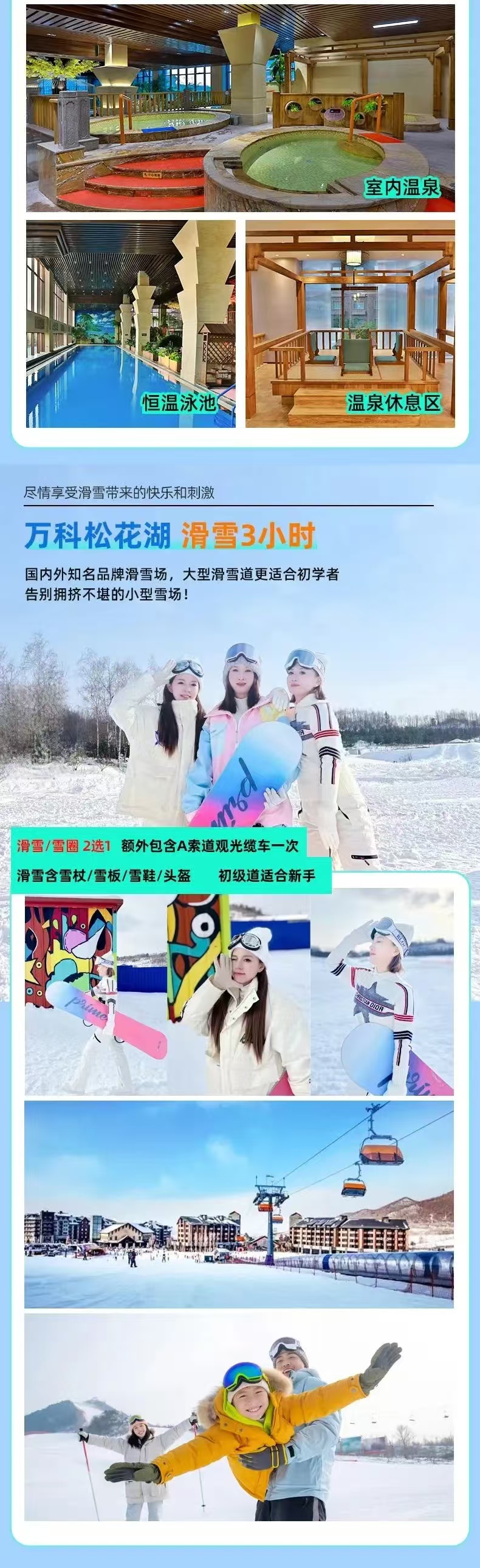 4.【万科初级雪道】3小时雪票,初级雪道,雪杖/雪板/雪鞋/魔毯/头盔,A索道观光缆车一次
