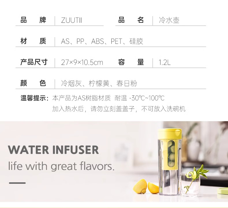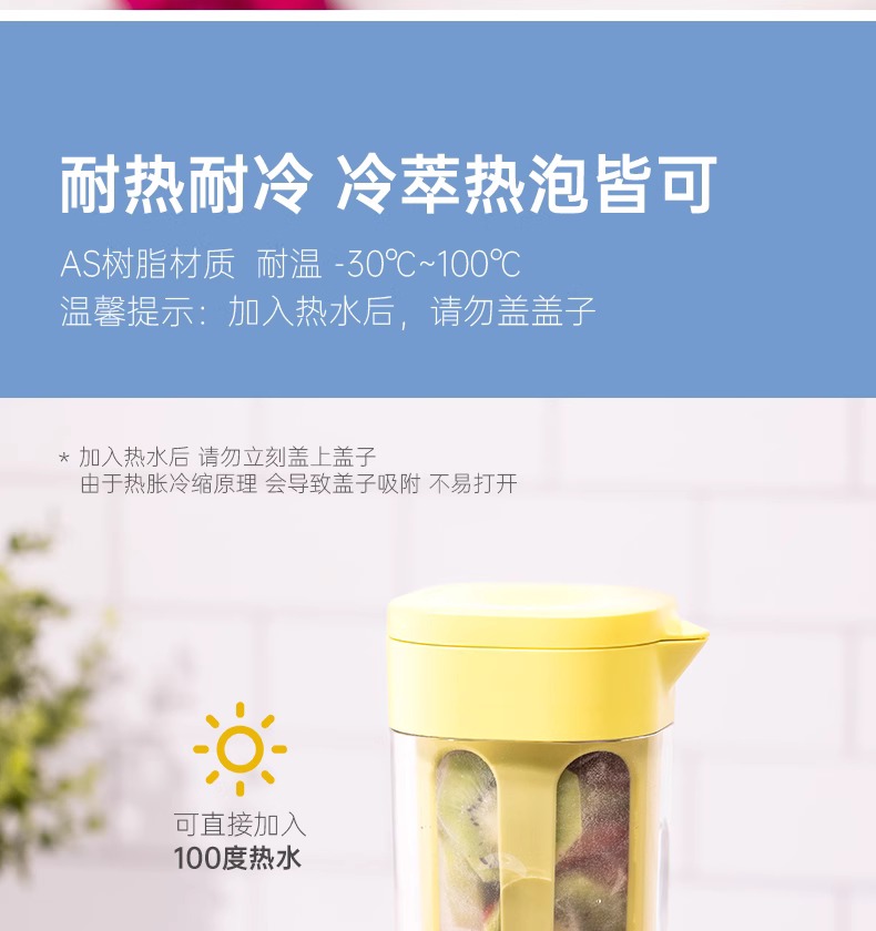zuutii冷水壶咖啡冷萃壶大容量凉水壶1.2L春日粉