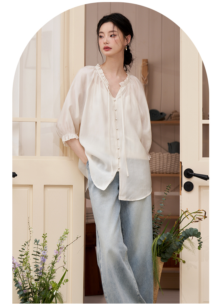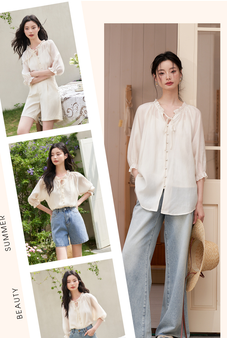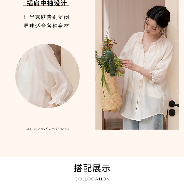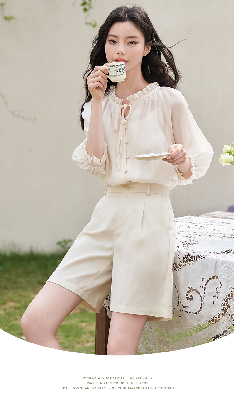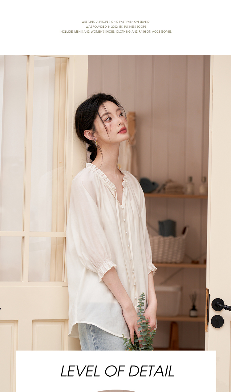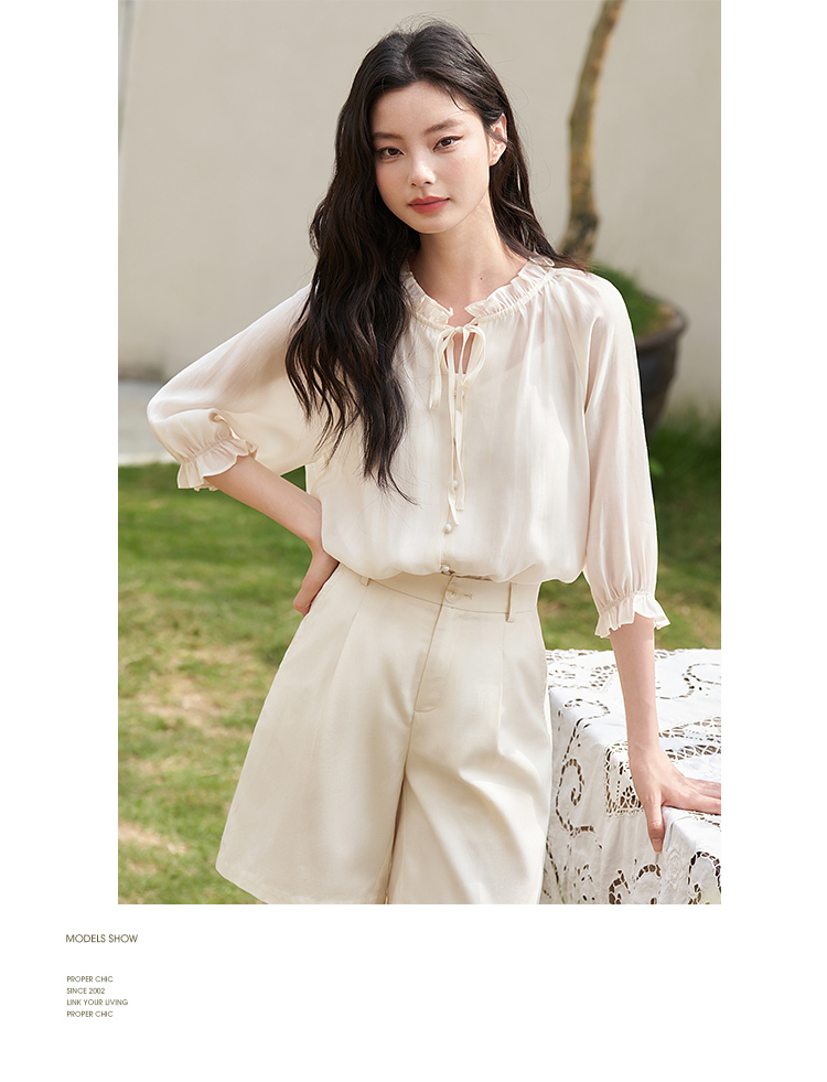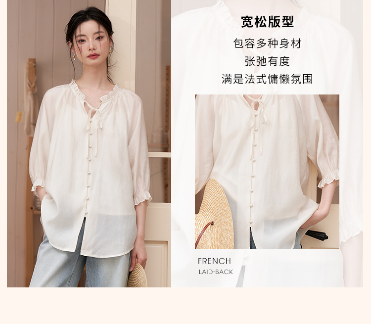 西遇宽松法式慵懒中袖衬衫女新款简约高级百搭长袖衬衣D0740570