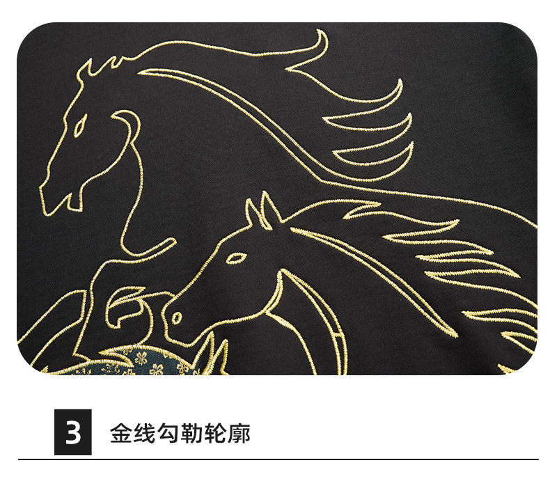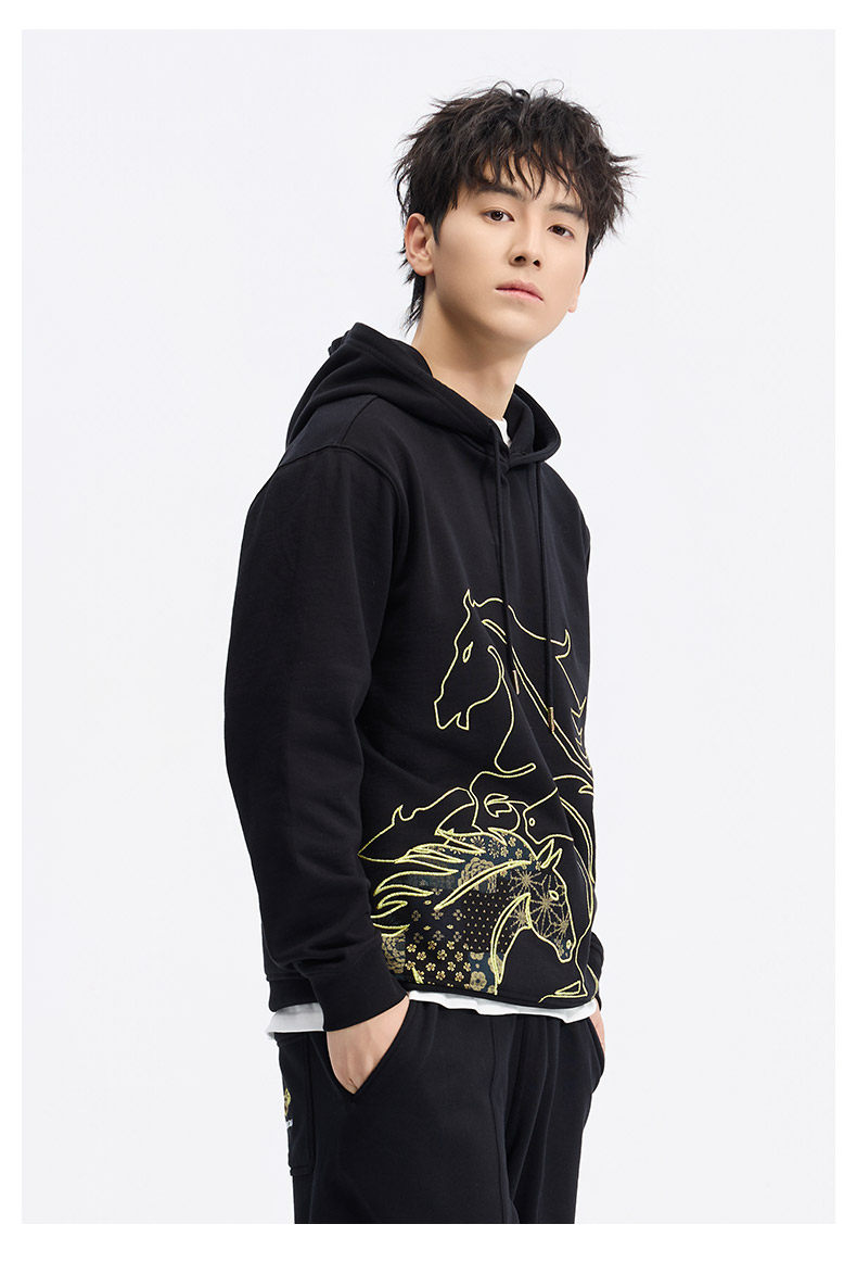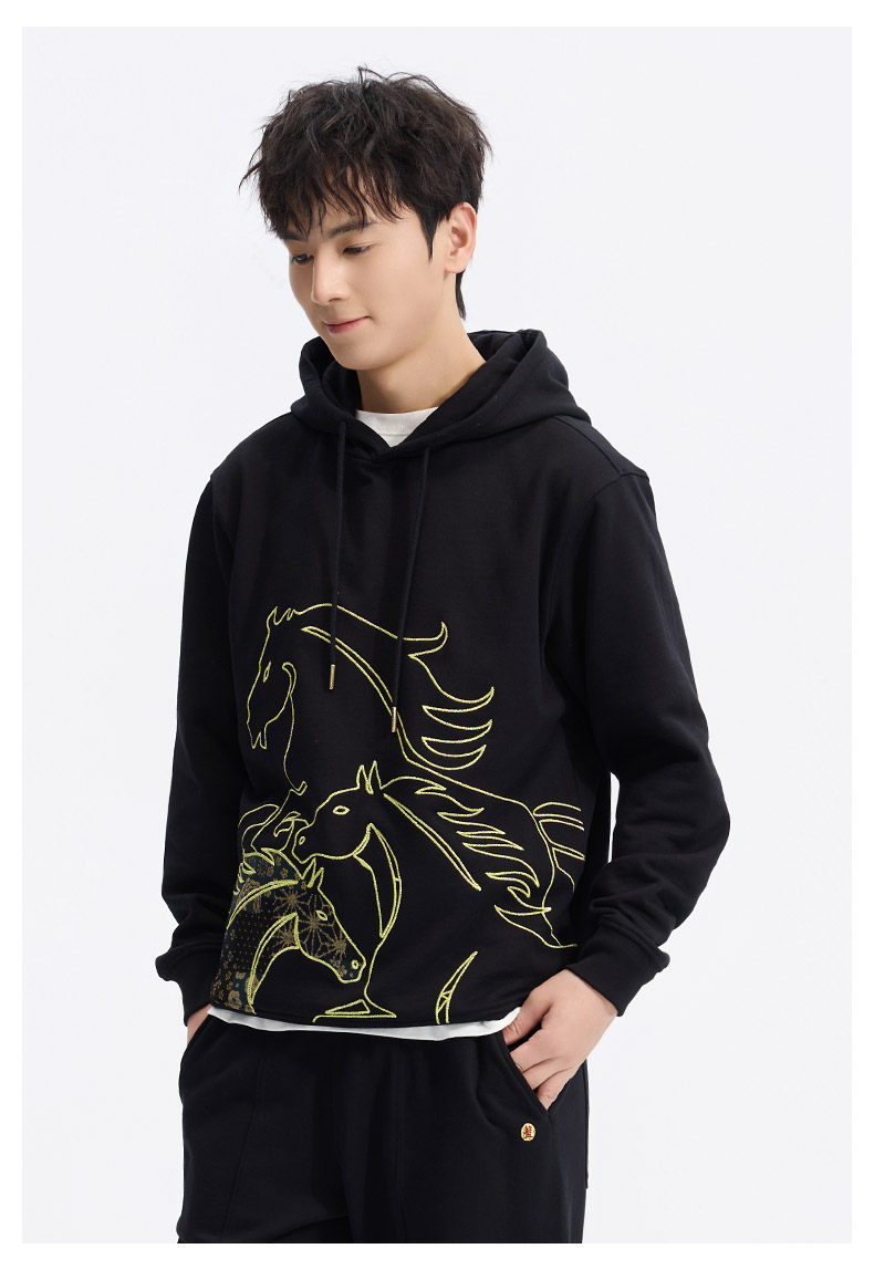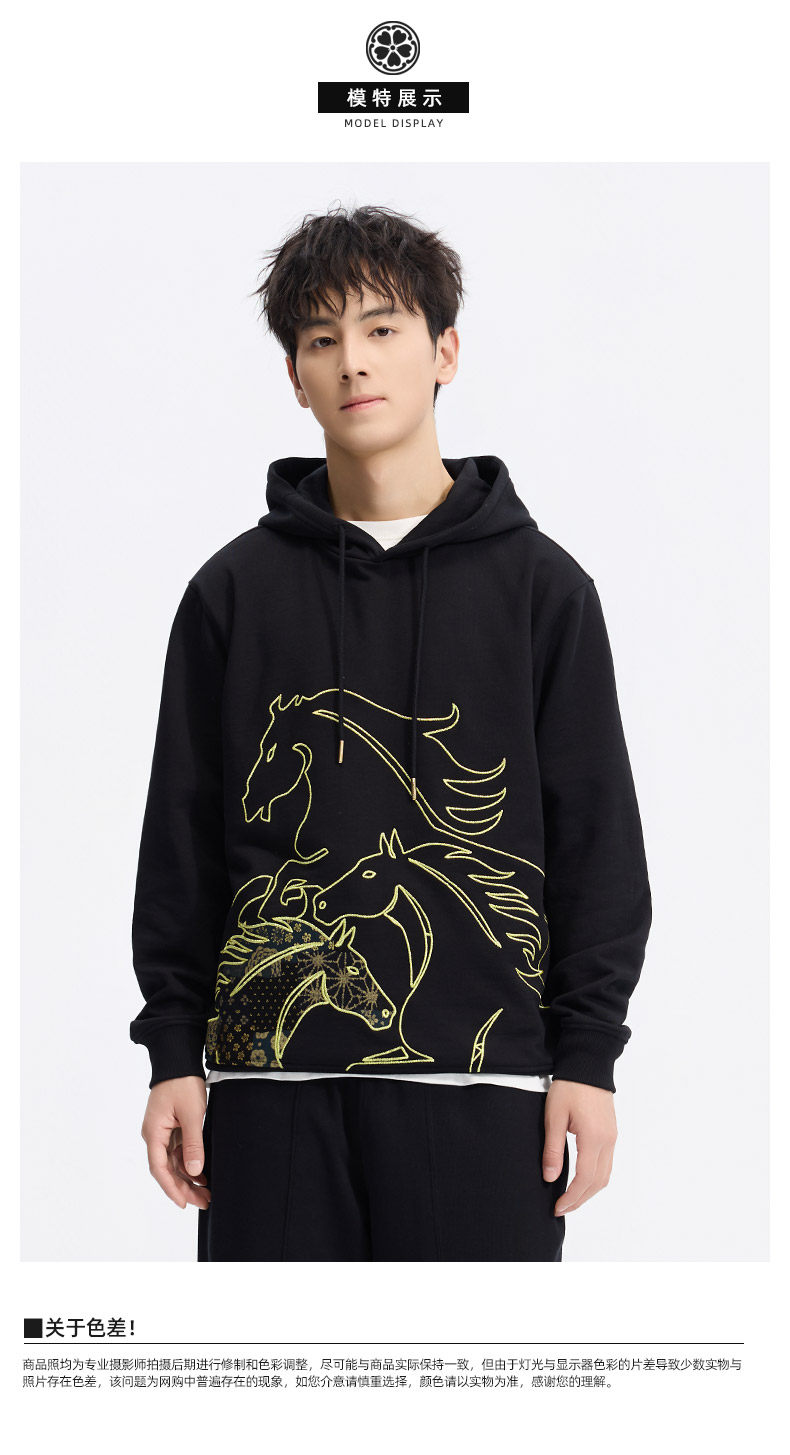 ONIARAI/鬼洗26春新品泥棒蓝马剪影拼花布刺绣连帽卫衣男 26NOB53