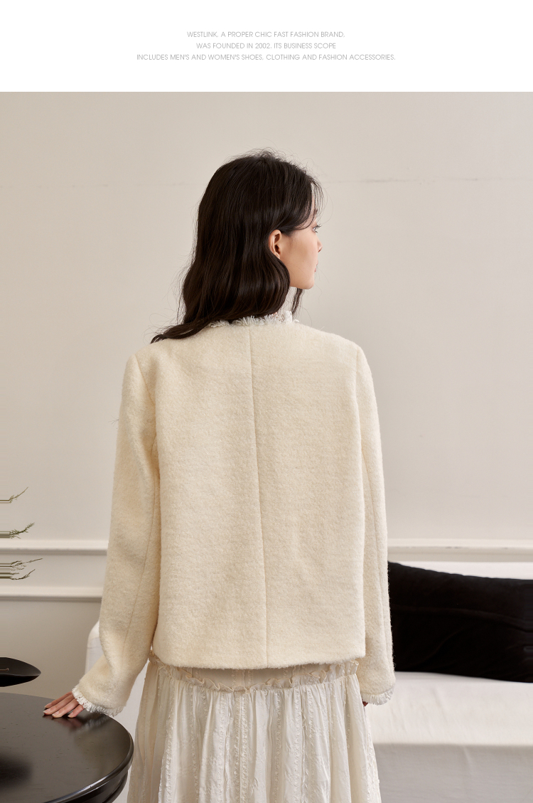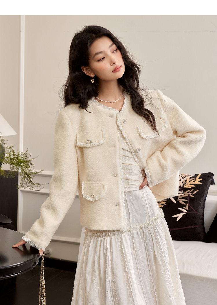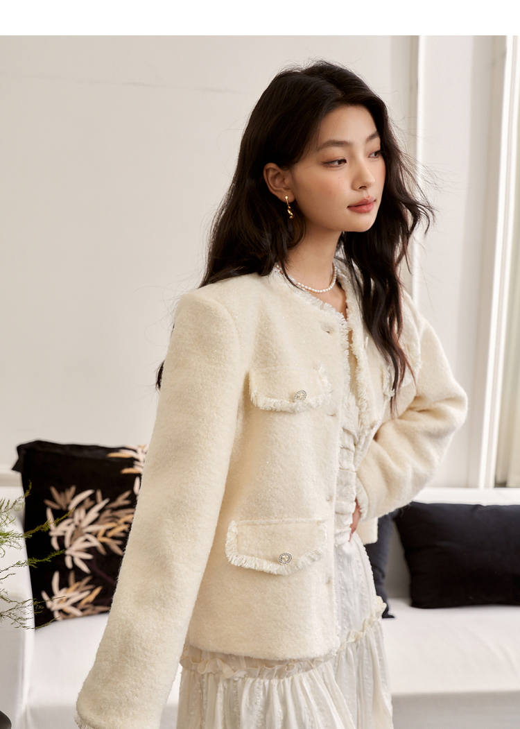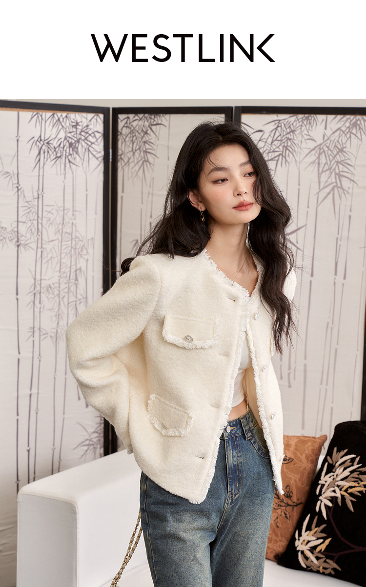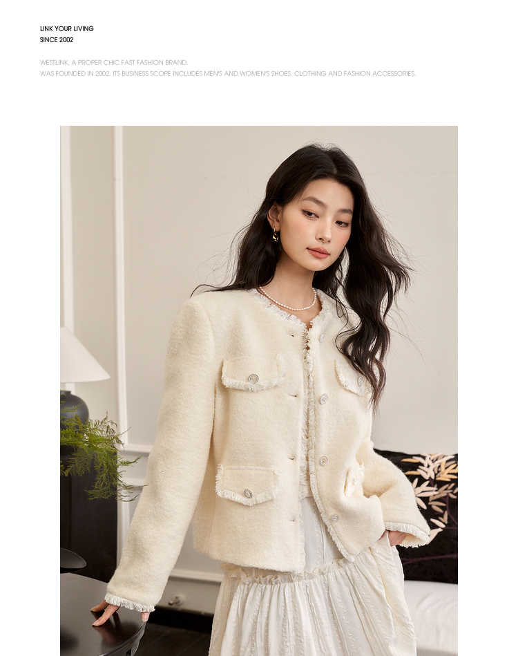 西遇气质小香风流苏外套女秋季新款圆领正肩通勤开衫外套V2238634