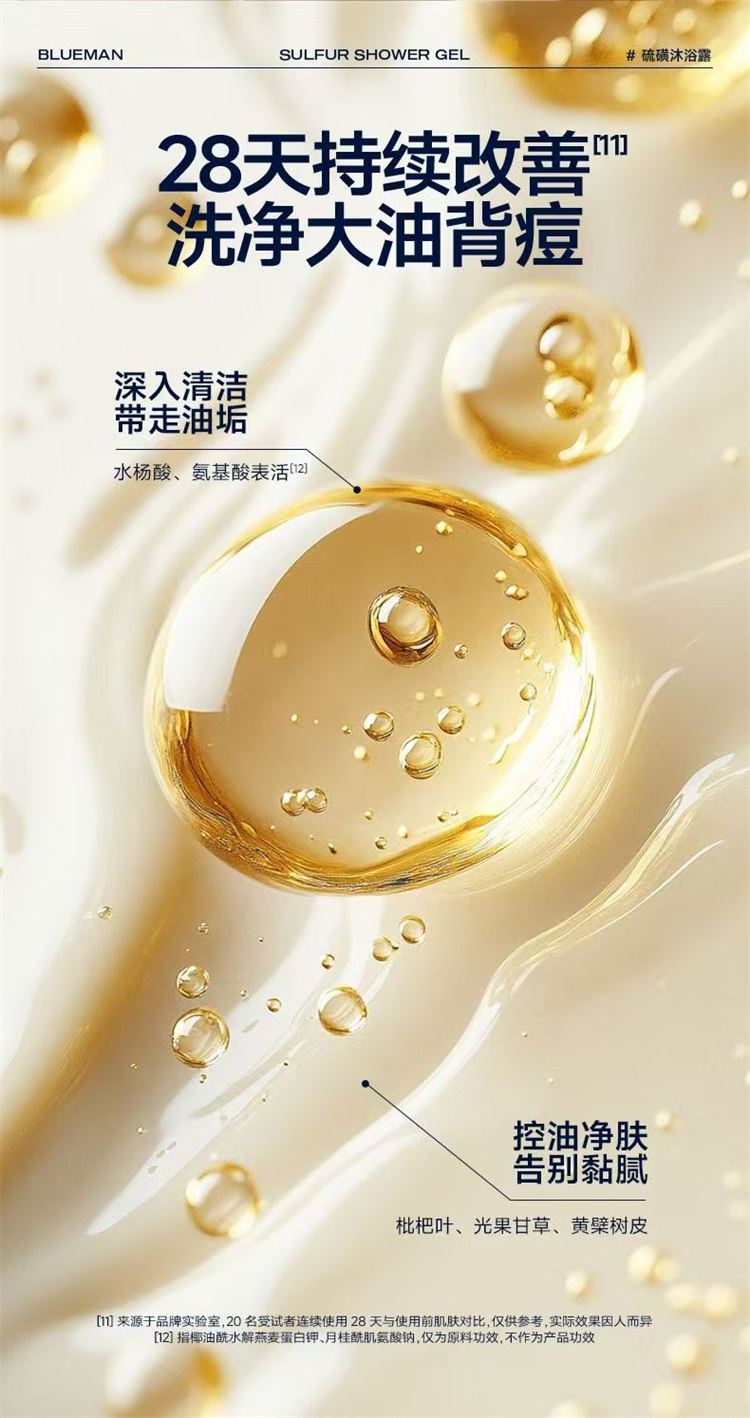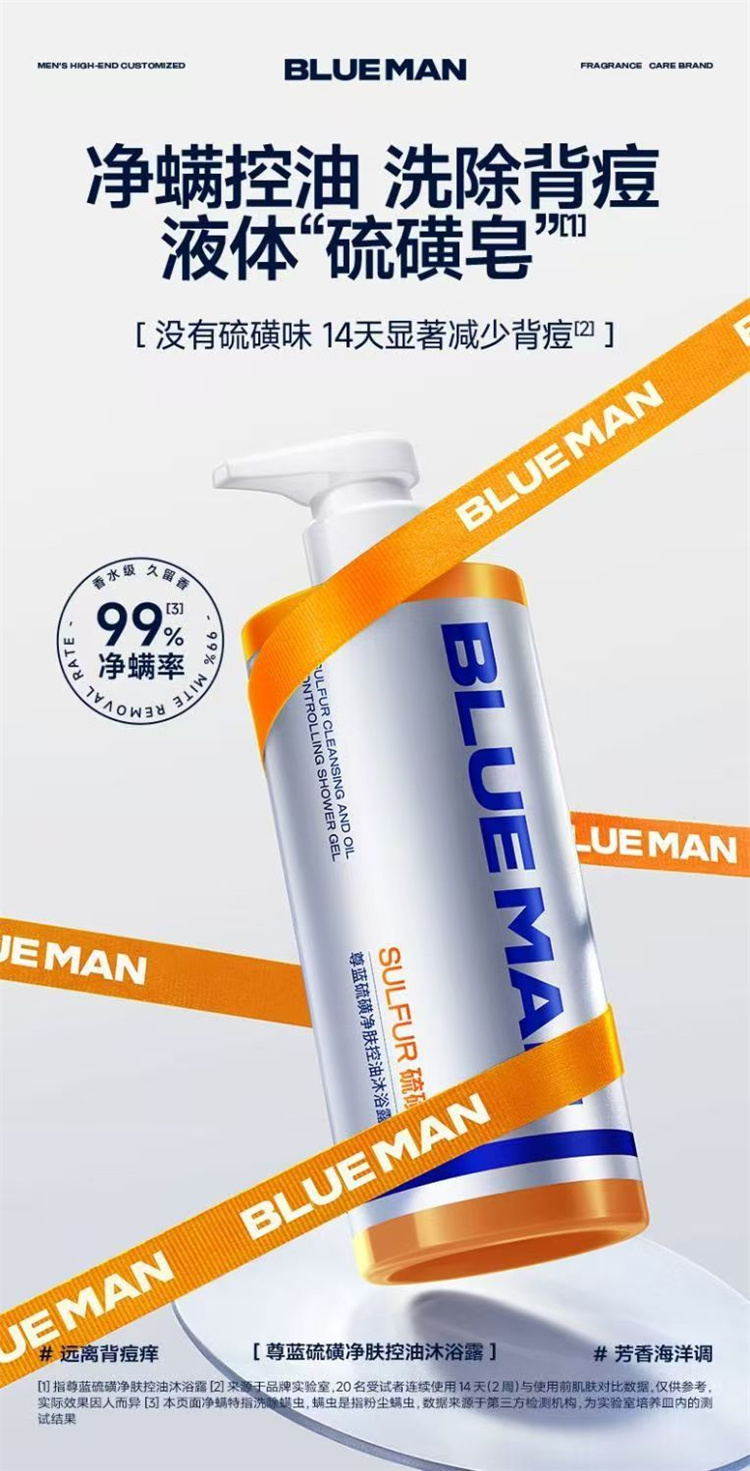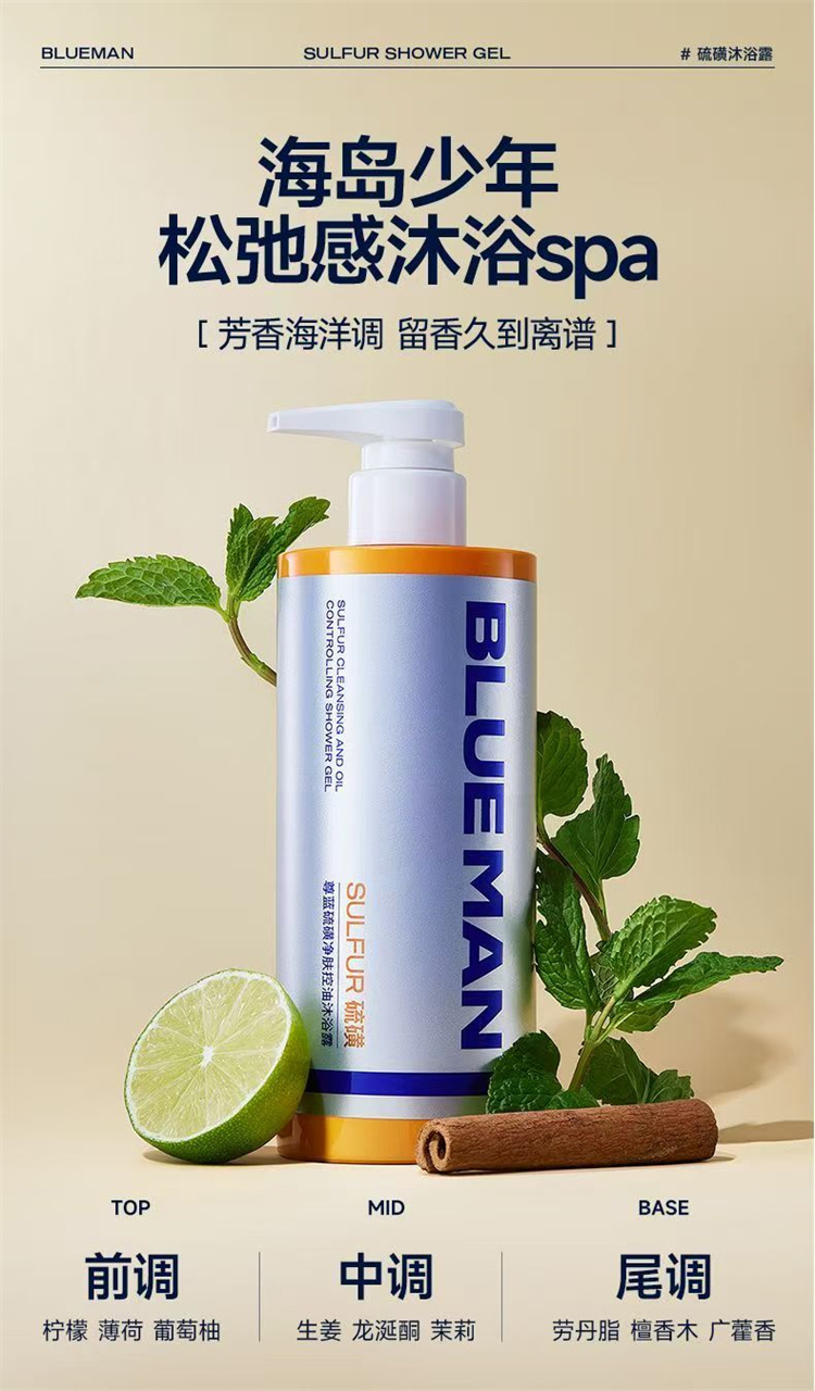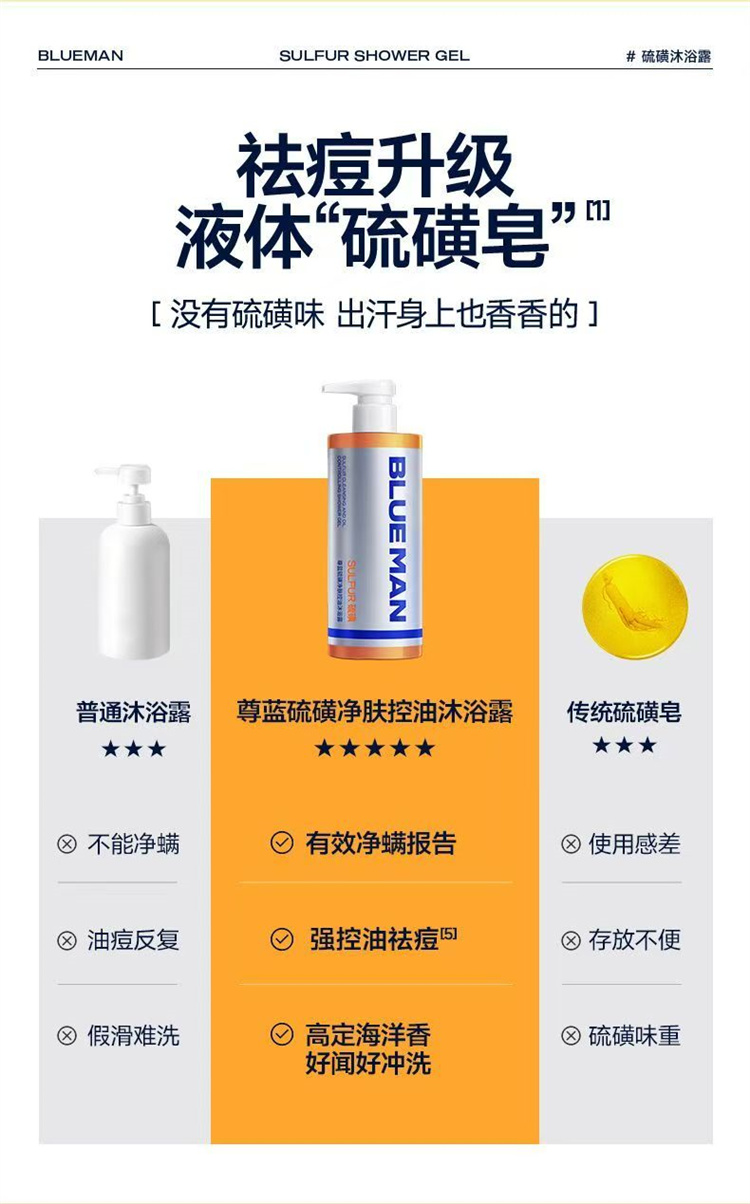 【自营】尊蓝硫磺控油沐浴露 500g除螨净痘止痒清洁持久留香沐浴液